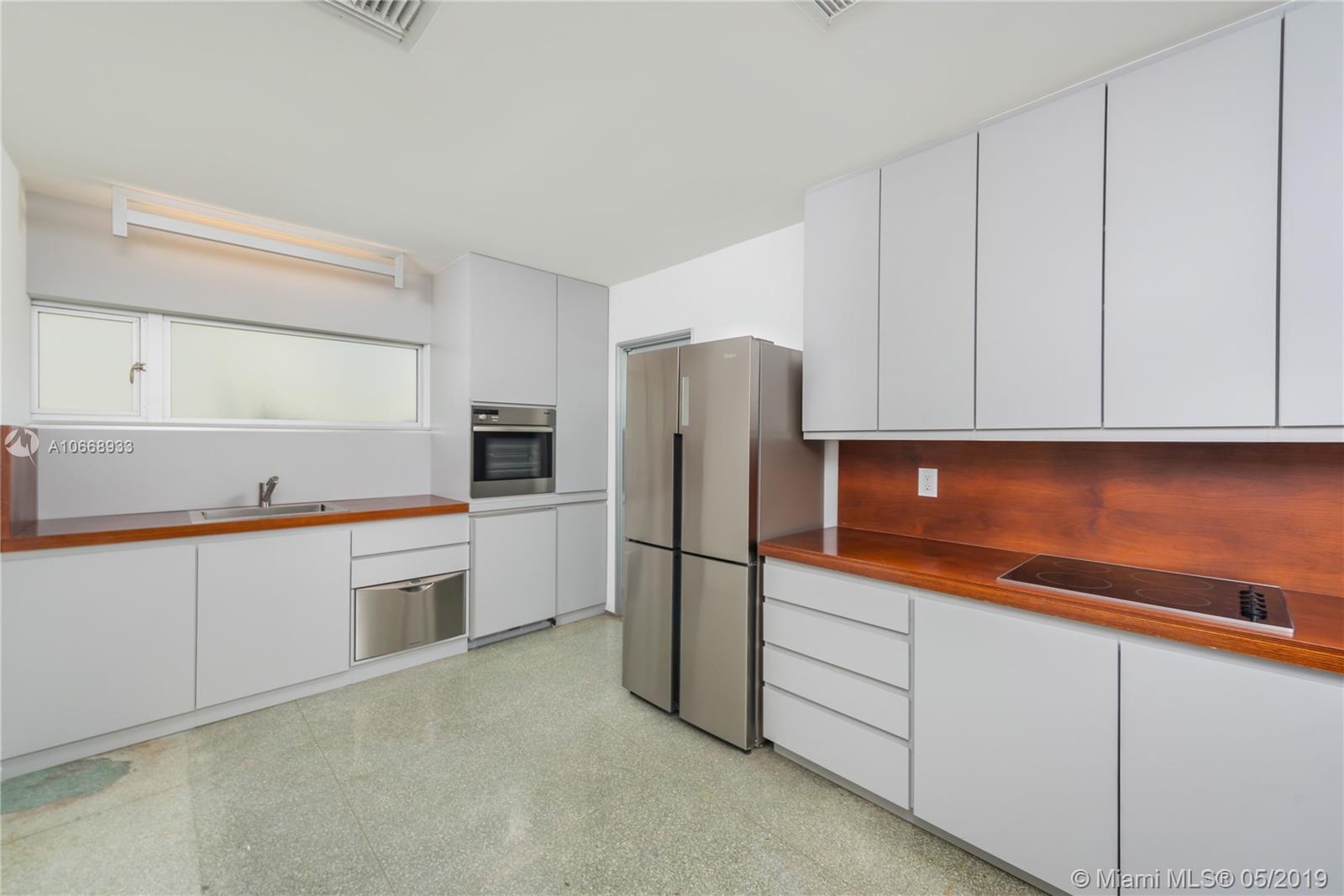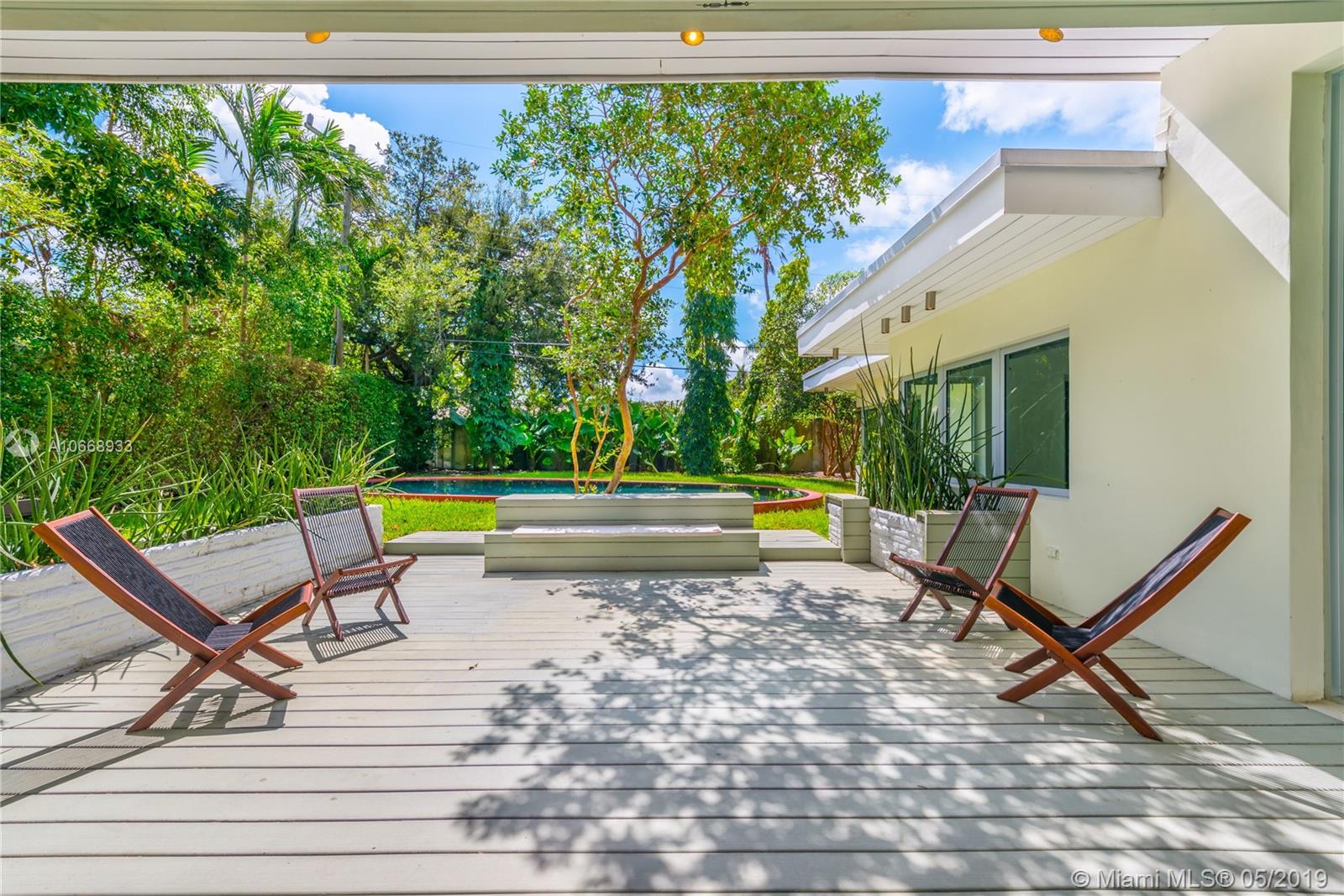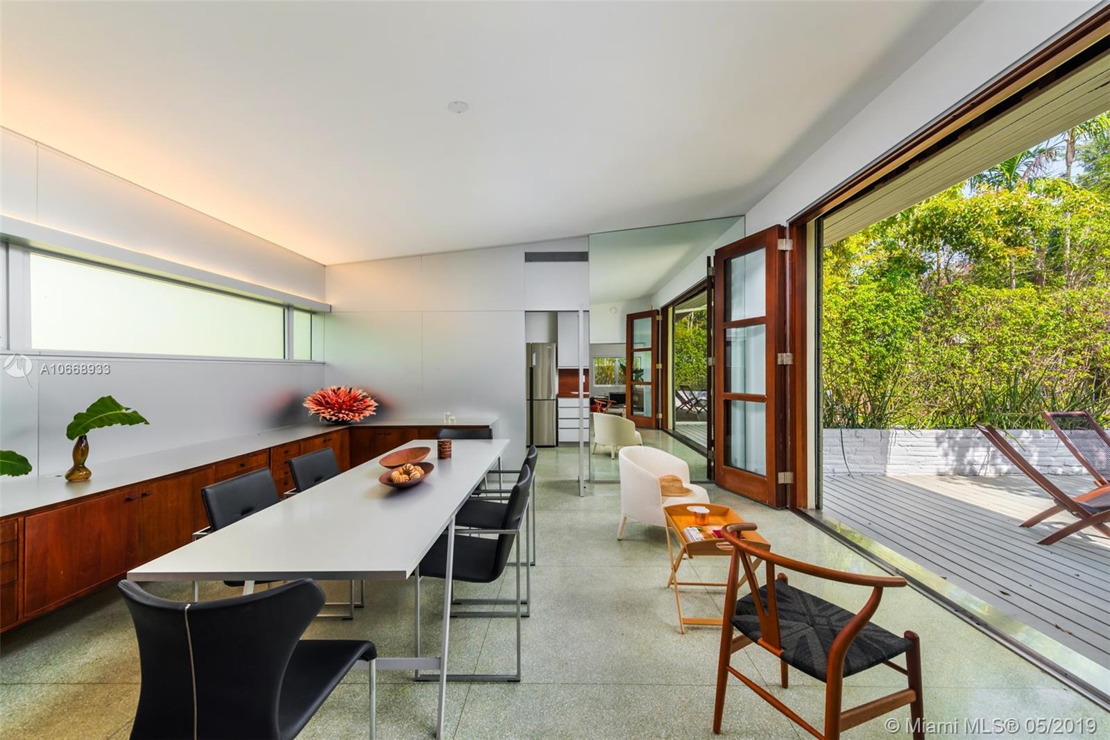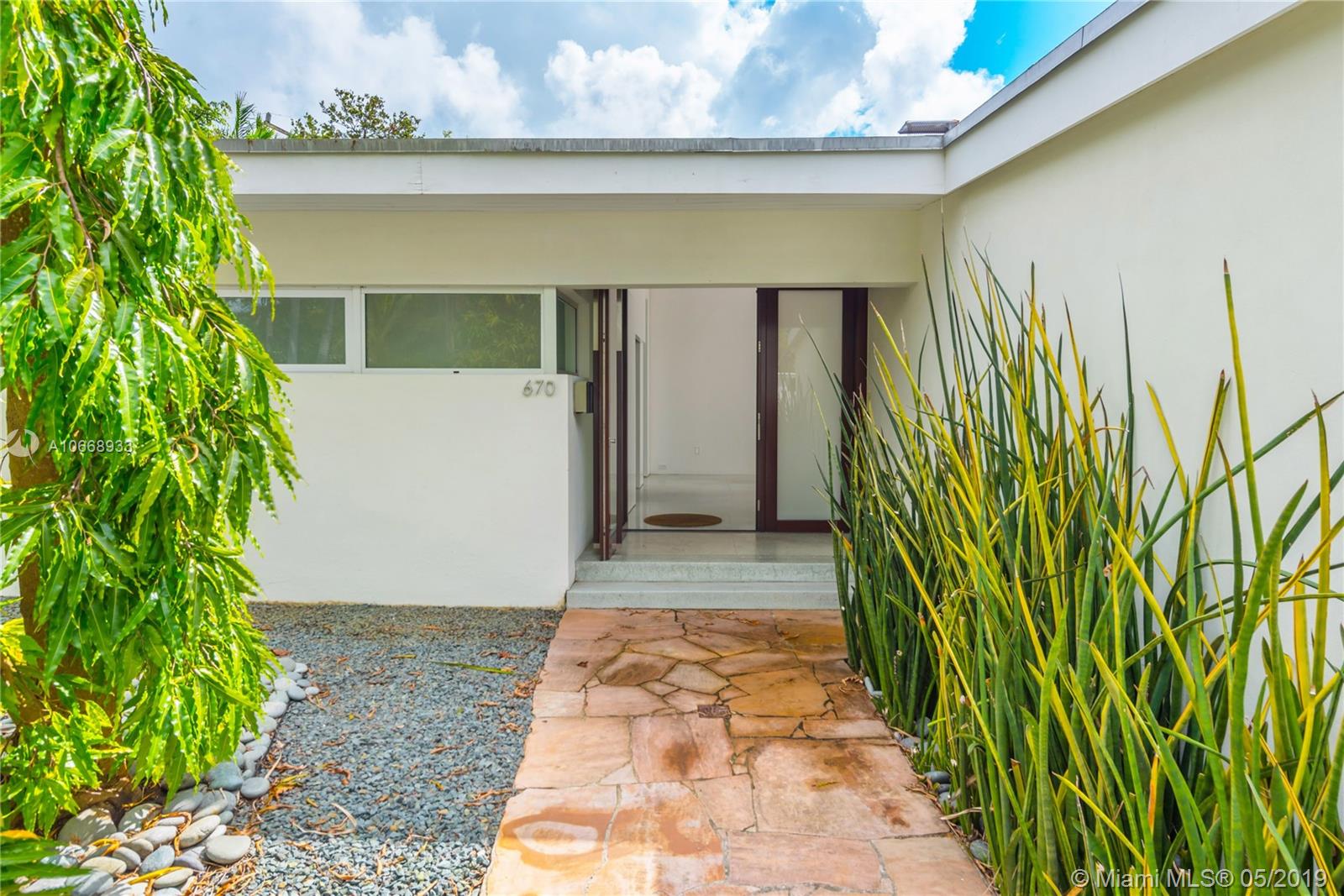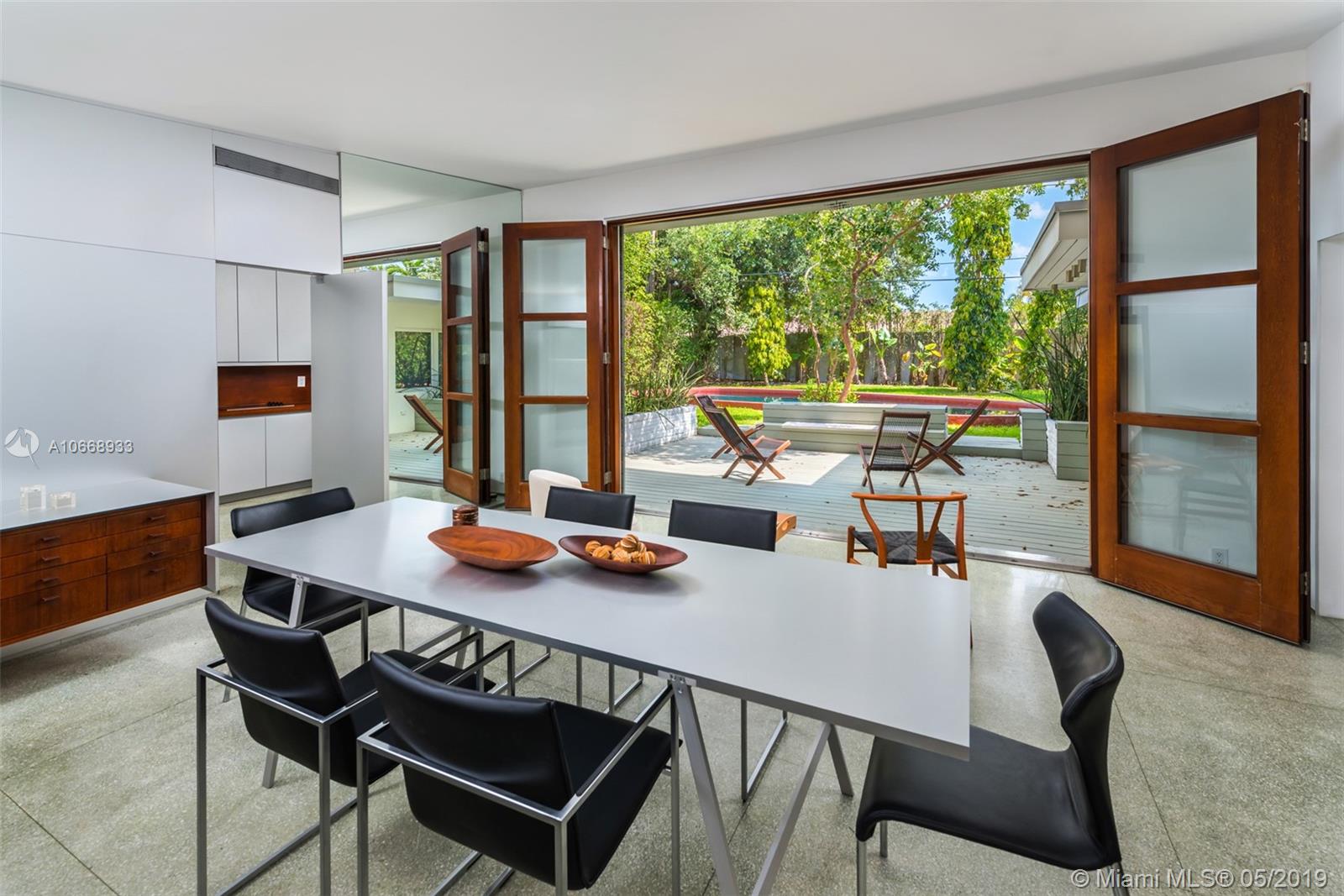 This is a truly one-of-a-kind residence in highly sought-after Morningside. This mid-century modern gem was renovated by Rene Gonzalez, one of Miami's most acclaimed architects with the highest-quality materials and finishes. The renovation includes new impact windows, AC, electrical, bathrooms, kitchen, built-ins, millwork, and wall coverings. High-end features include Peetz mahogany front door, restored original walnut cabinets from the Palm Bay Club. Bisazza's white-gold glass tile covers the bathrooms with Boffi, Agape, Vallve and Duravit fixtures. The interiors open through elegant French-style double doors to an oversized lot, pool, deck, BBQ area and lush gardens. The home is only steps away from the beautiful Morningside Park.