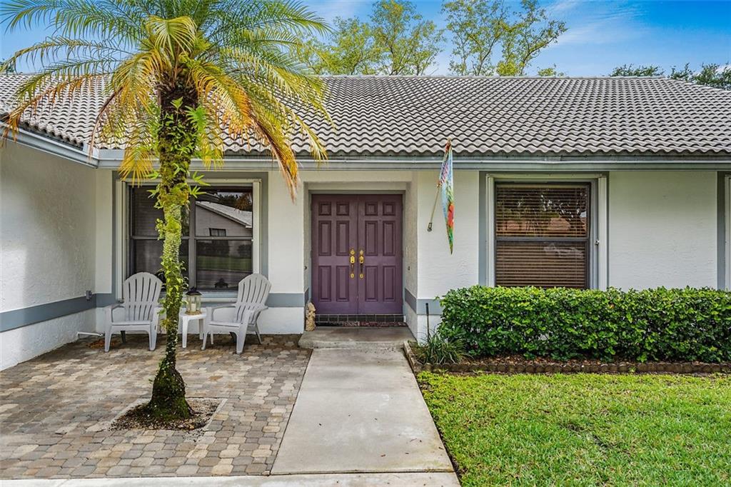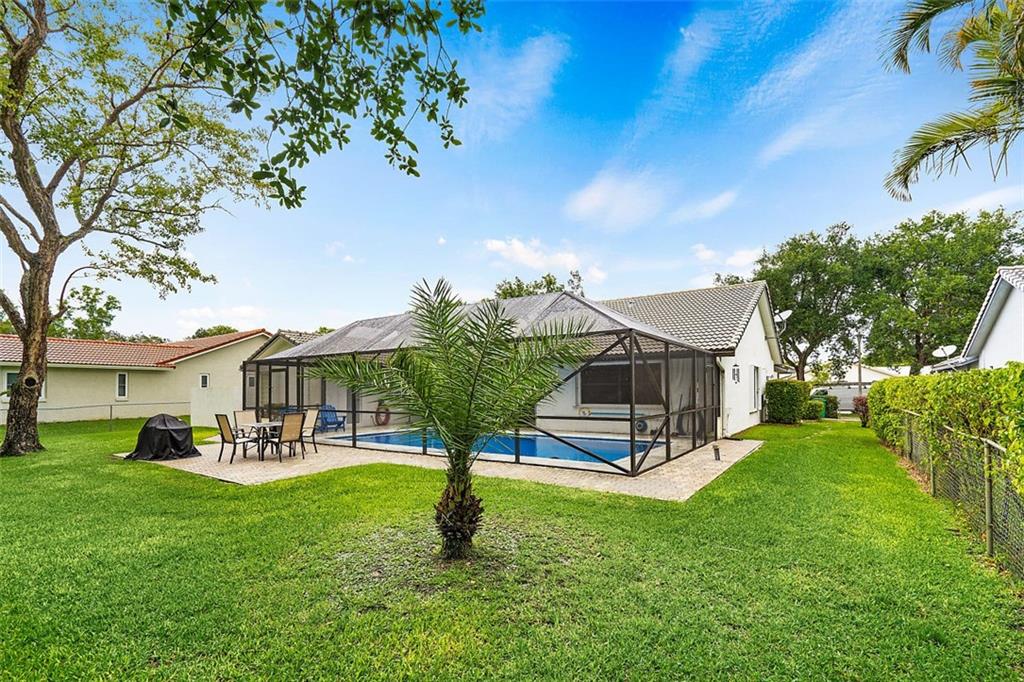 Fabulous home located in one of Coral Springs most desirable communities! Pine Ridge is bordered by 2 highly ranked schools & both schools are just a short walk from the home. A welcoming front porch & manicured landscape create an inviting curb appeal. Inside you will find beautiful marble floors, high ceilings, large windows, glass doors & a crisp white island kitchen. The spacious master suite features his & her closets and an bathroom with a large soaking tub & separate shower with some updates. The large indoor living areas, tropical outdoor spaces and the private sprawling backyard are perfect for Florida's relaxed indoor/outdoor lifestyle! The "straight line" pool & huge screened porch have been recently updated! Accordion hurricane shutters, 5 year old A/C & a great location!
