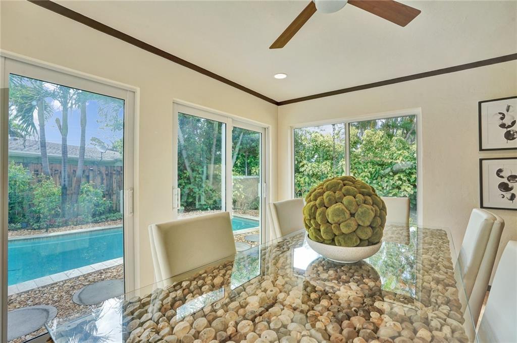 MID CENTURY BEAUTY; W/ CLEAN LINES THRU-OUT HOME. 23 CONCRETE BLOCK COLUMNS W/ CONCRETE WALL FORM THE FRONT "ZEN LIKE" COURTYARD W/ LG RECTANGLE & CIRCLE STEPPING STONES. WALK IN FRONT DOOR & SEE POOL. FLOOR TO CEILING WINDOWS IN LIVING ROOM W/ CUSTOM "BIRD'S EYE" MAPLE CABINETRY W/ STUNNING BLACK & WHITE GRANITE FORM THE FLOATING TV ENTERTAINMENT CENTER & CONTINUES THRU TO STUNNING 30X10 CUSTOM KITCHEN W/ MIELE & KITCHEN AID STAINLESS STEEL APPL. 23 RECESSED LIGHTS IN KITCHEN & LIVING ROOM. FORMAL DINING W/ WALLS OF IMPACT GLASS OVERLOOK POOL. "SPA FEELING" MASTER BATH W/ SOAKING TUB & SEAMLESS GLASS SHOWER DOORS & FLOATING CABINETRY. BAMBOO FLOORS IN MAIN AREAS & 23" GREY STONE TILE IN BEDROOMS. METAL ROOF & 2 CAR GARAGE & FEATURES A BUILT IN CONCRETE & GRANITE POOL BAR.