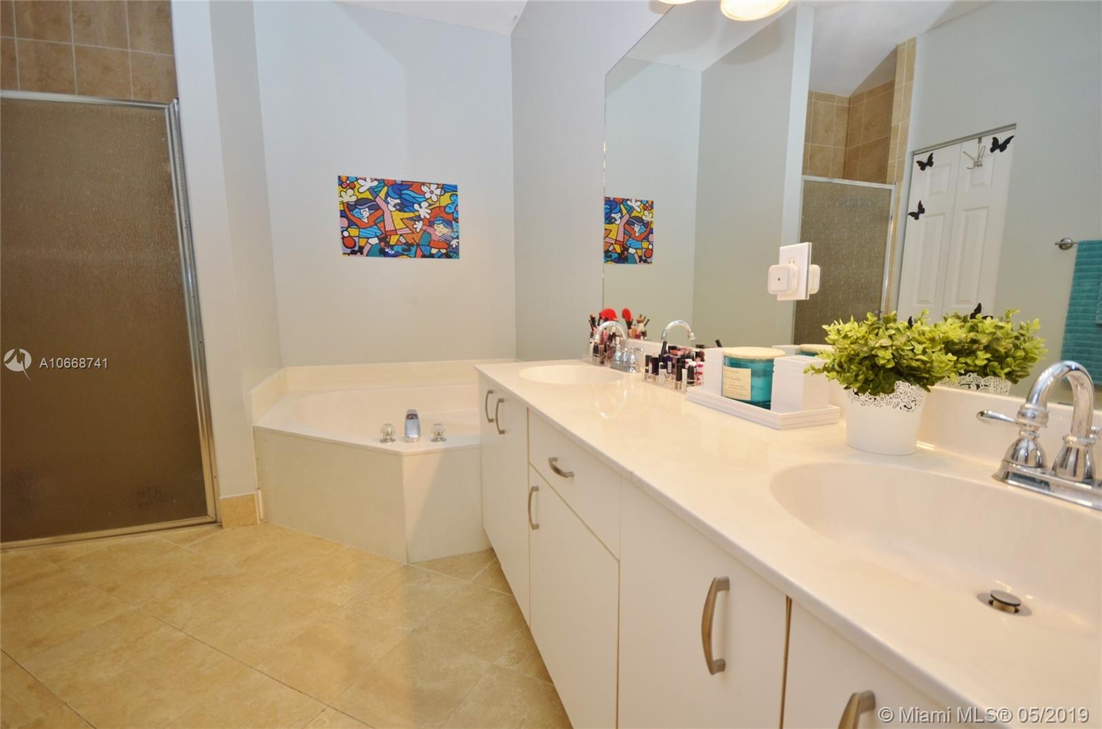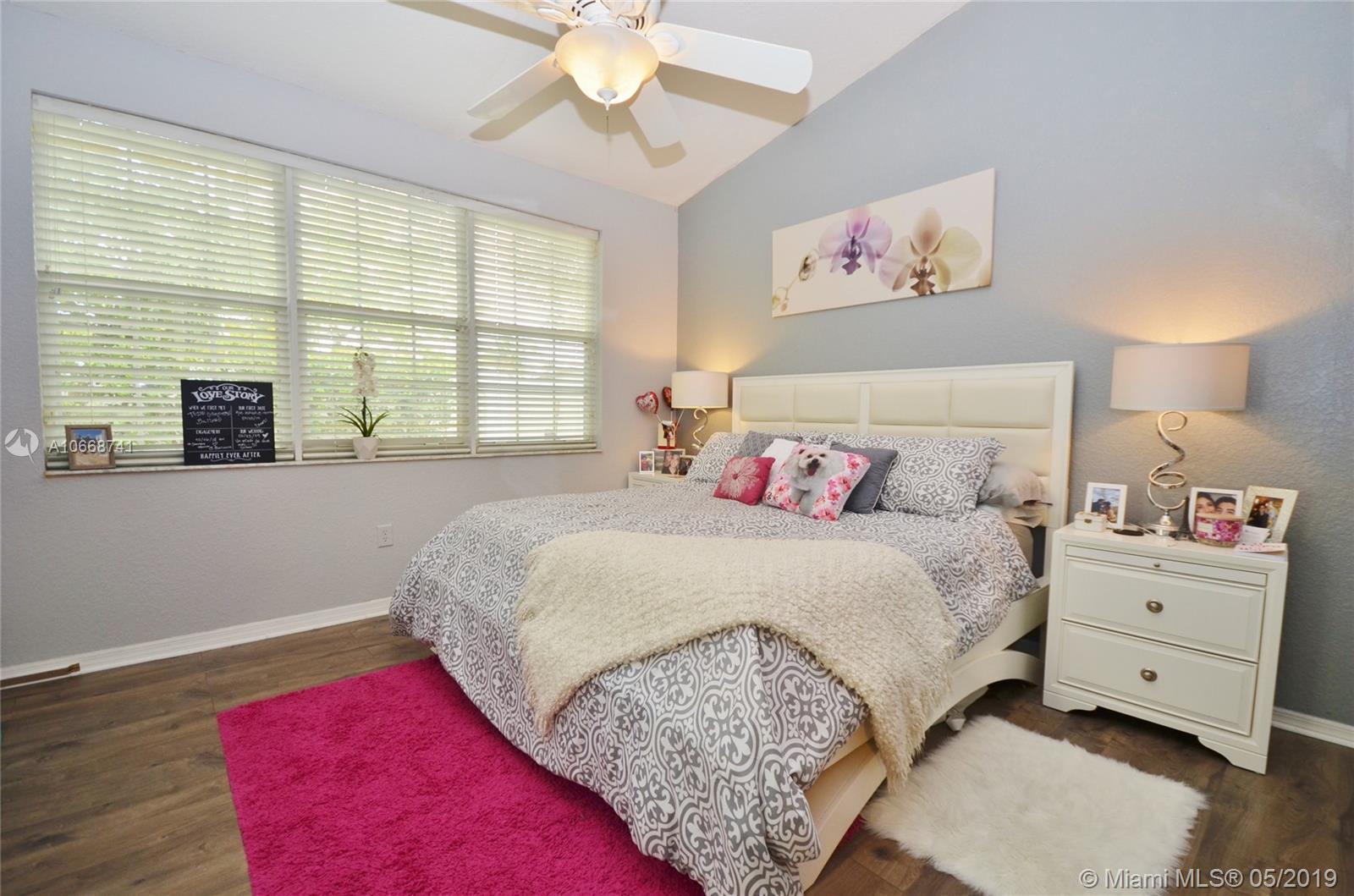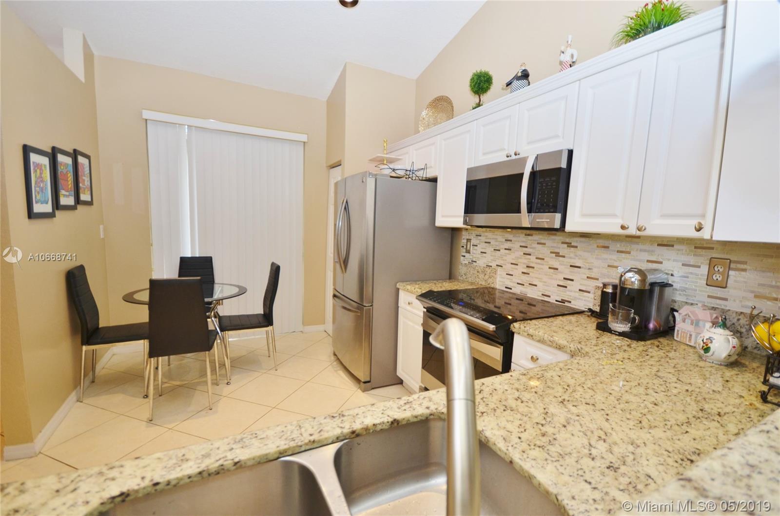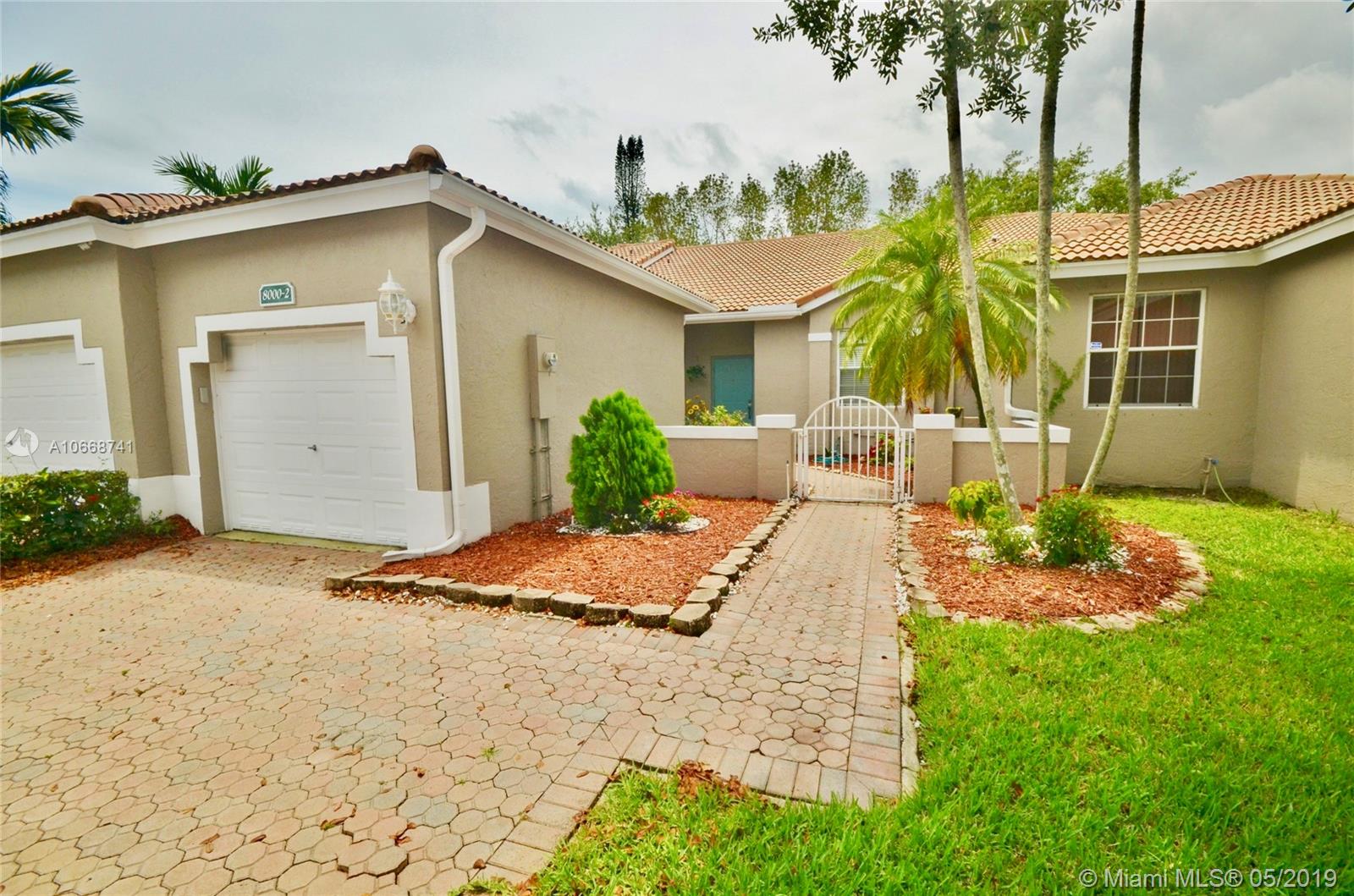 Move-in ready and beautiful 2/2 villa (one story, thank God no stairs) with a detached garage. Open floor plan, tile floors in social areas, vaulted ceilings; updated kitchen with granite countertops, range-e and refrigerator less than two years old, cozy breakfast nook. Huge master suite with enormous walking closet, laminated floors and a master bathroom with two sinks and shower and nice roman tub (for self-indulgence). Lots and lots of storage throughout the house. Screened patio. Gated community with 2 pools, jacuzzi, gym a tennis court.