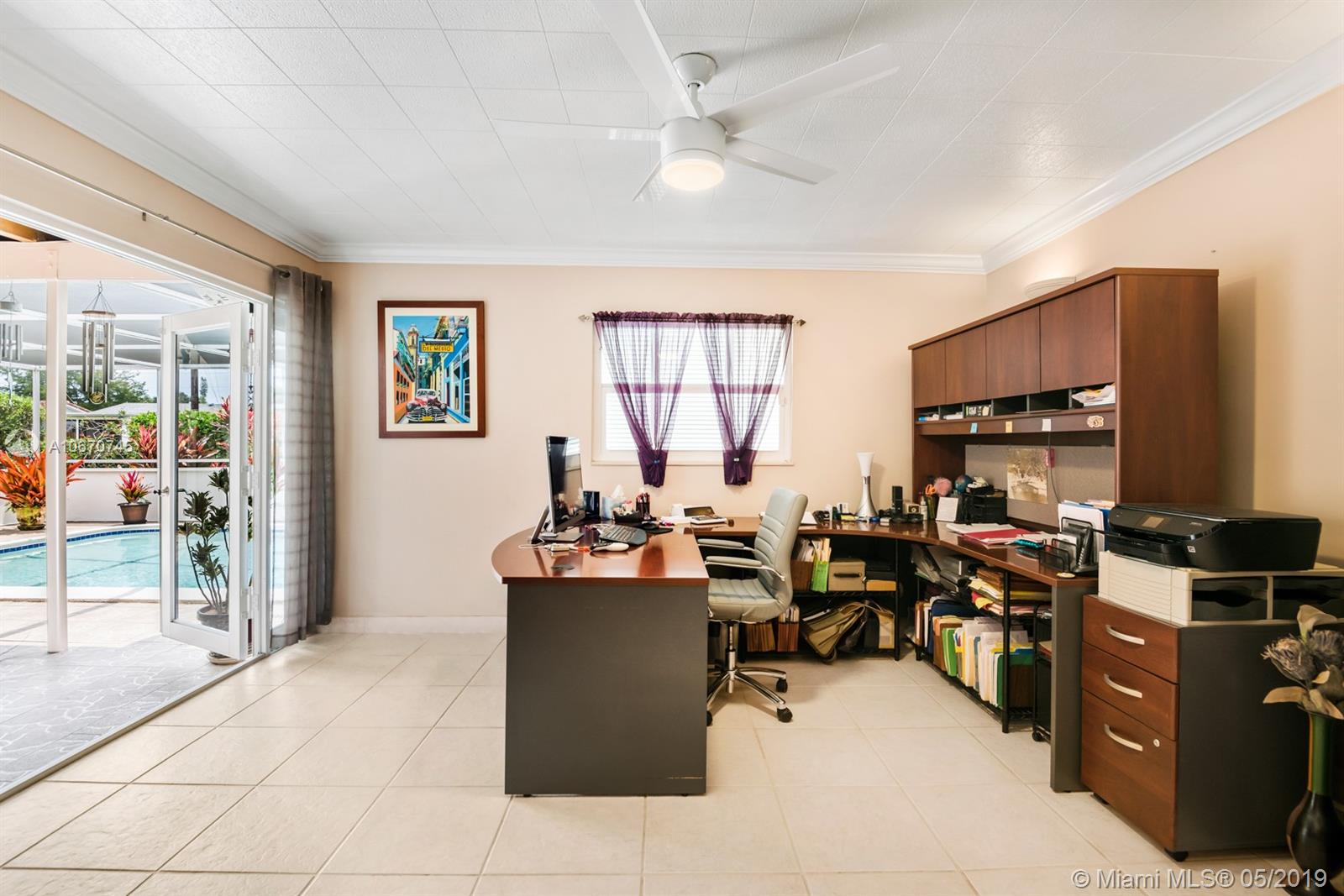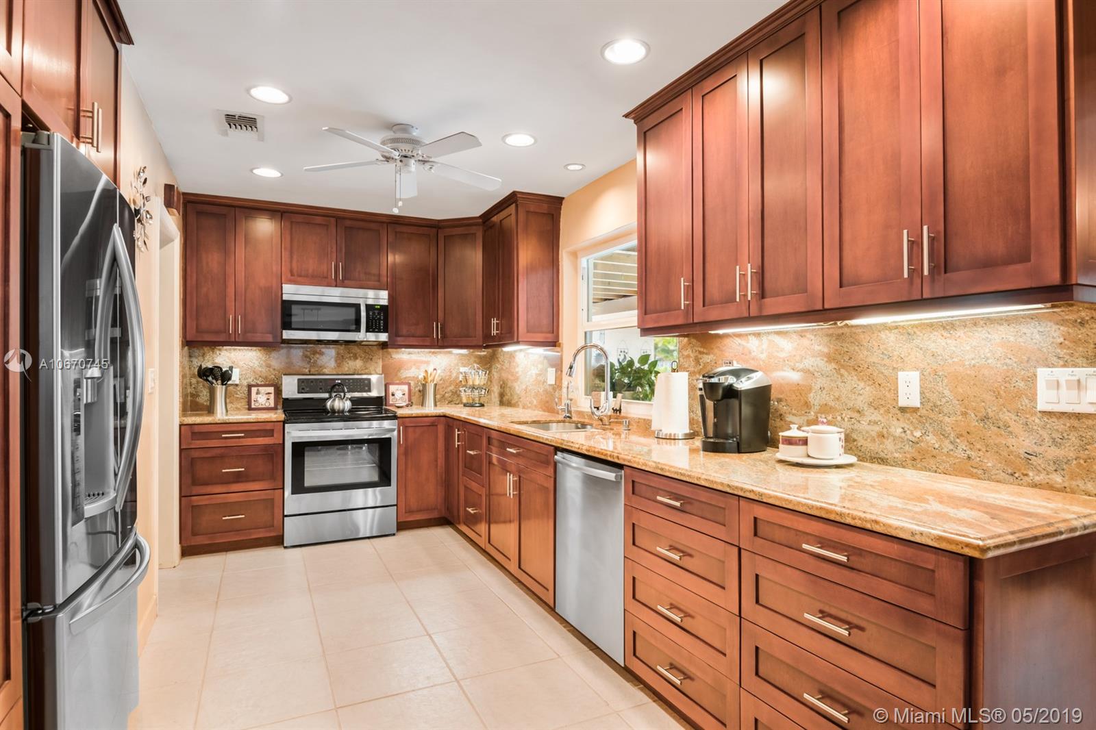 Stunning, fully updated, 3BR/2BA w/den Hollywood Hills pool home! This home has a beautifully updated kitchen with custom cabinets offering an abundance of storage space and a bar area with moving island. There are impact windows and doors throughout, bahama shutters covering all windows, hurricane panels to enclose covered patio, A/C is from 2015, gas dryer and tankless water heater, ADT alarm system for all windows and doors, and super gutter along patio enclosure. Doors from family room and den/office lead to deep covered patio with beautiful exposed wood ceiling. Backyard has pool with unique lighting, deck, and screen enclosure and additional green space with privacy hedges. Master closet built out for efficient storage. Great location near I-95, airport, schools, beach, and more!