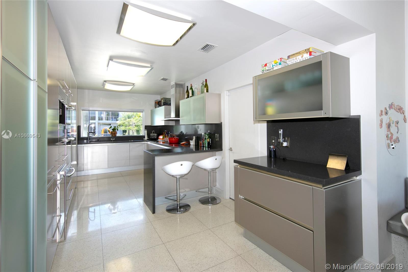 Impeccably renovated, this stunning residence sits on one of the most desirable streets on the south side of coveted Bay Harbor Islands. Open & spacious floorplan, 36x36 porcelain floors thru-out living, dining, & huge family room overlooking pool/patio & lushly landscaped garden. True chef's kitchen w Gaggenau & Miele appliances, cabinetry by Snaidero & charming built-in banquet. Gracious master w wood flooring boasts large master bath, & huge walk-in closet. All bedrooms filled w lots of natural light, impact windows/doors thru-out, 1 car garage w a/c. Large covered dining area perfect for enjoying the outdoors. Bay Harbor Islands is one of South Florida's hidden treasures & an incredible community to call home. A+ schools, walk to beaches, renowned shops, & restaurants.