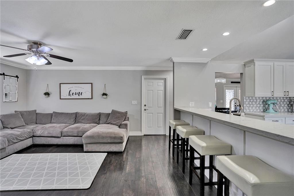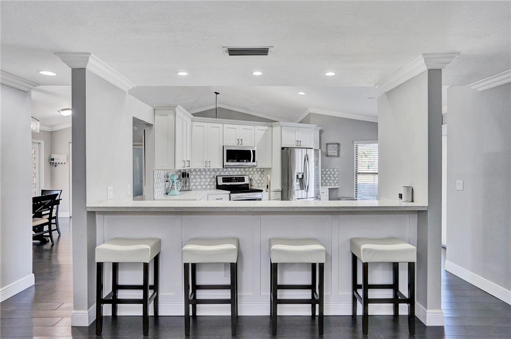 MUST SEE 4/2 home on water in Shenandoah. Home has been fully remodeled including a breathtaking white kitchen with quartz counters and stainless appliances. Throughout the house you can enjoy crown molding, laminate floors, frosted interior doors and fully remodeled guest bathroom. Renovations outside include custom impact front door, paver driveway, a travertine deck with infinity edge to the newly resurfaced saltwater pool. Don’t miss out on your chance to live in this highly desired neighborhood featuring a huge park with new shaded playground, a splash pad, soccer fields, walking trails and even work out equipment. Some extra upgrades include new water heater, new impact garage door and opener, new variable speed AC system, pool pump, custom built shed, fenced in yard and more.