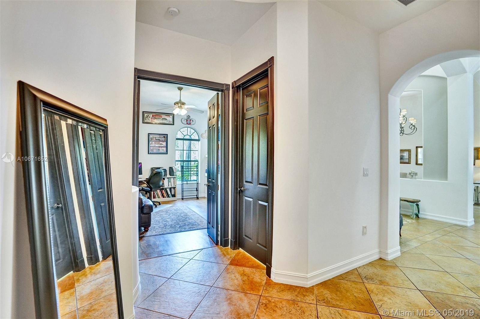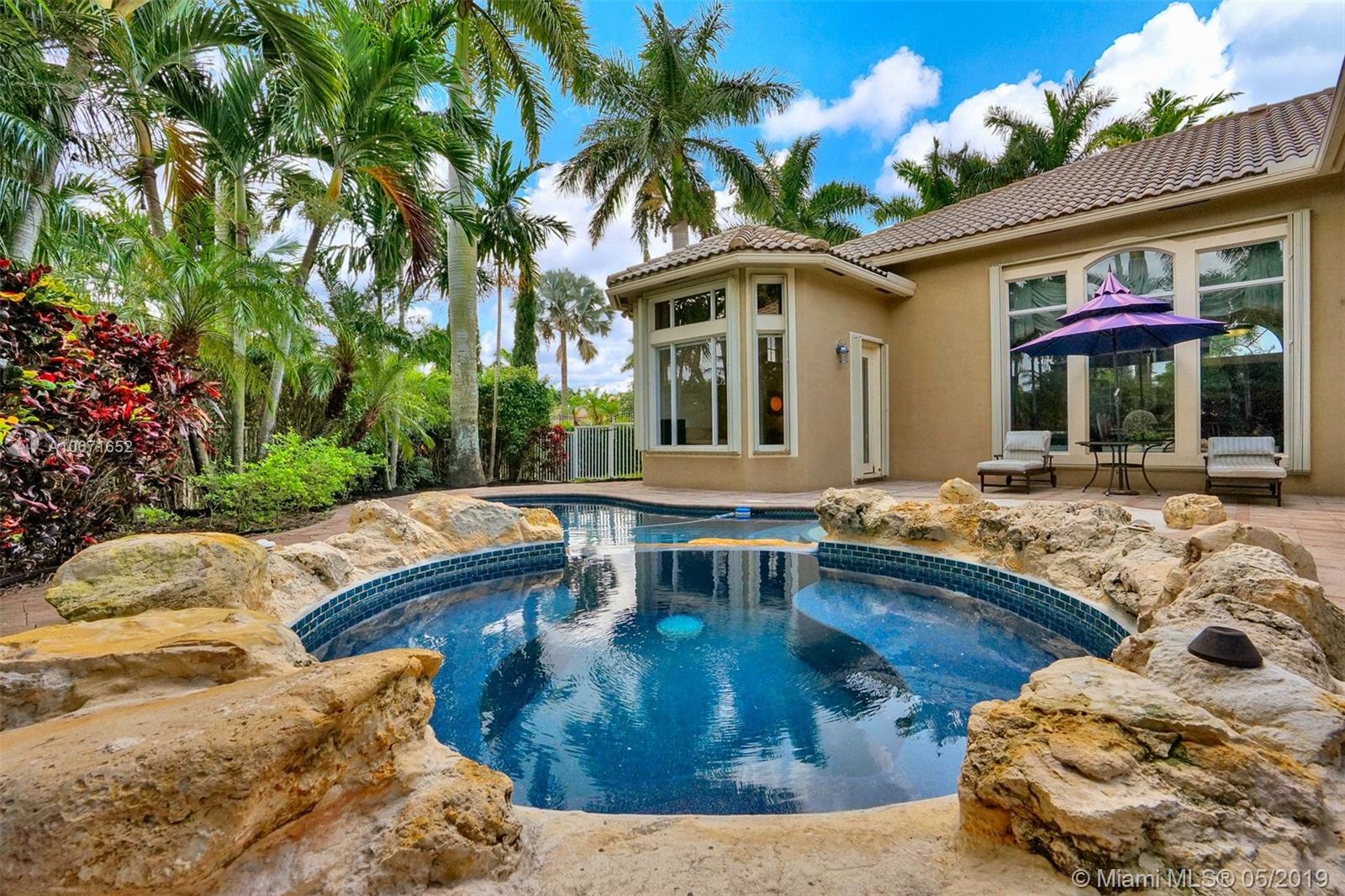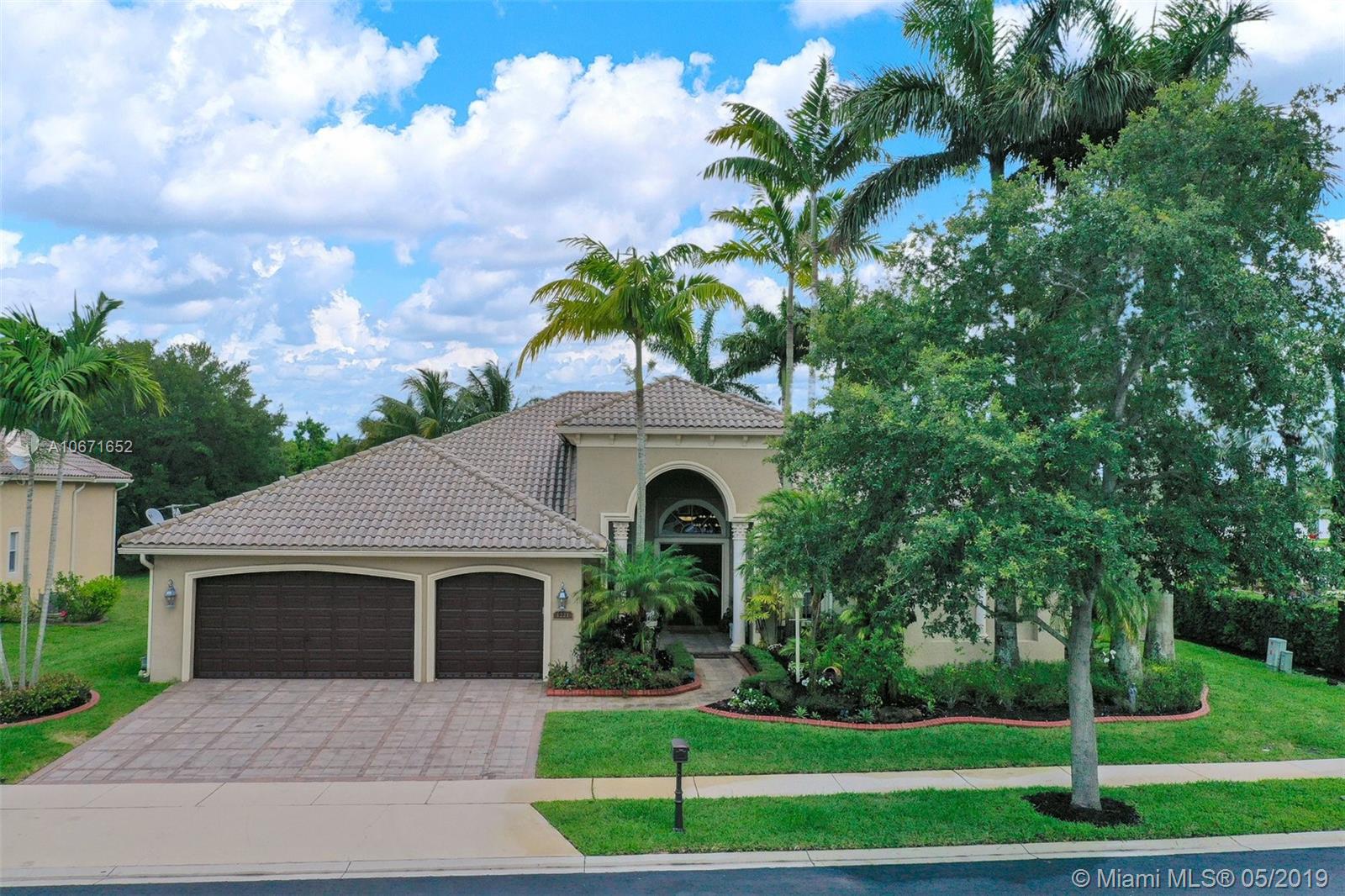 Pembroke Falls Stirling model set behind the Gates of The Sanctuary, corner lot, largest single story 5/3.5 or 4/3.5 plus Den optional floor plan layout, spacious open plan, formal foyer, dining & living room, upgraded kitchen and bathrooms, gourmet island, wooden cabinets, granite tops, combination of tile & wooden floors, crown molding, french doors, chandeliers, central vac, coffer ceilings, accordion shutters protection, outdoors entertainment features amazing customized pool w/rock formation edges, hot tub, covered patio, fenced yard, lush landscaping & more! Community clubhouse offers huge pool, hot tub, gym, tennis, ball room, basketball & more. Bring offers now.