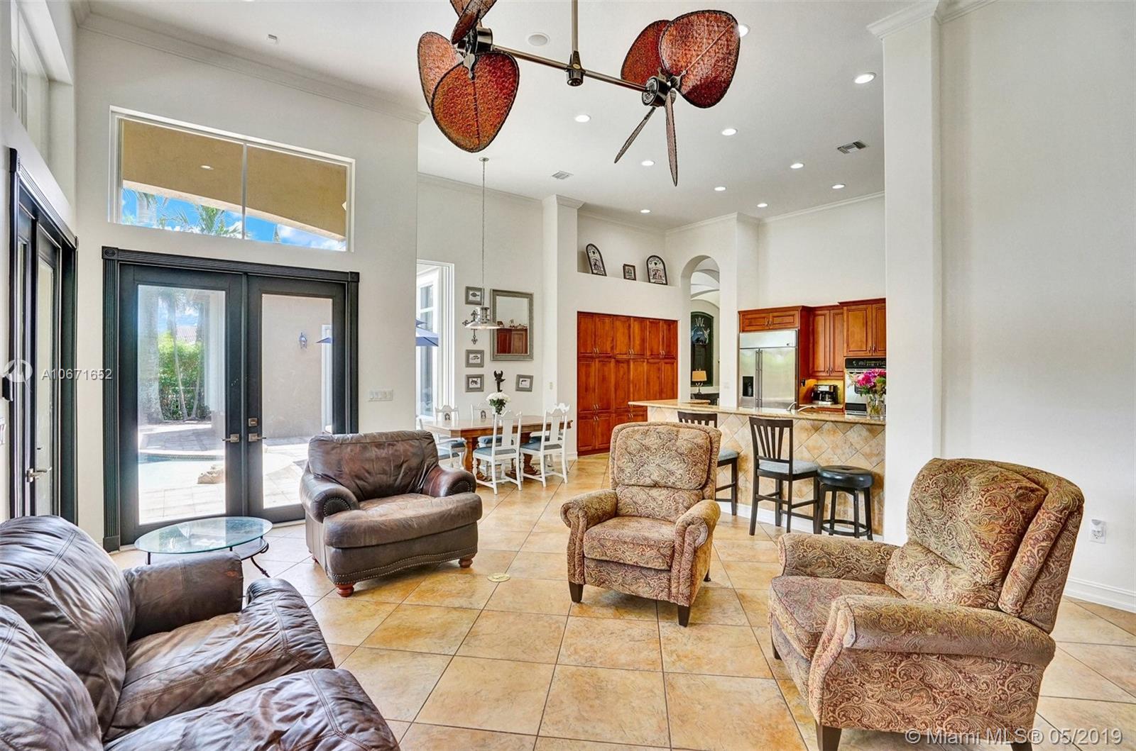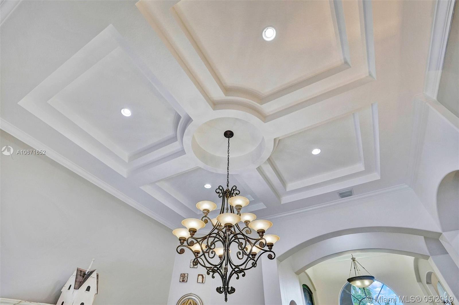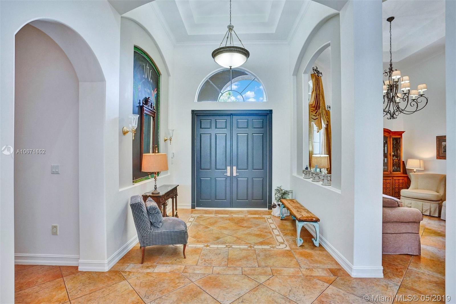 Pembroke Falls Stirling model set behind the Gates of The Sanctuary, corner lot, largest single story 5/3.5 or 4/3.5 plus Den optional floor plan layout, spacious open plan, formal foyer, dining & living room, upgraded kitchen and bathrooms, gourmet island, wooden cabinets, granite tops, combination of tile & wooden floors, crown molding, french doors, chandeliers, central vac, coffer ceilings, accordion shutters protection, outdoors entertainment features amazing customized pool w/rock formation edges, hot tub, covered patio, fenced yard, lush landscaping & more! Community clubhouse offers huge pool, hot tub, gym, tennis, ball room, basketball & more. Bring offers now.
