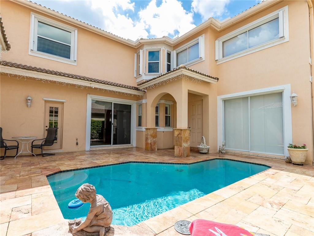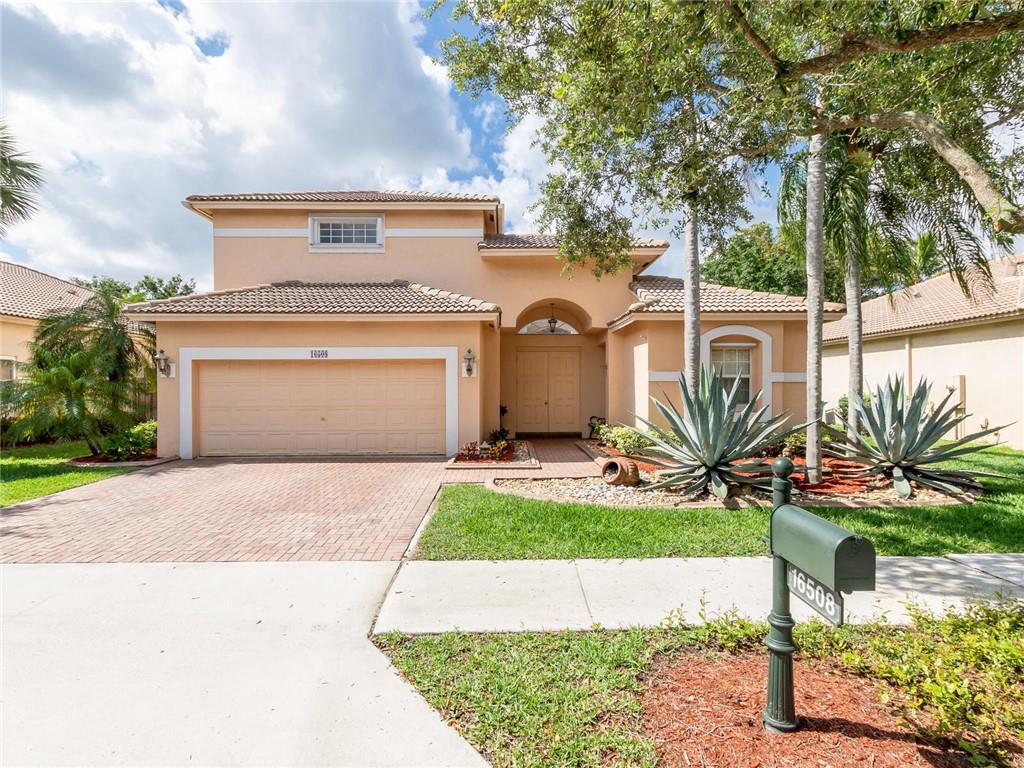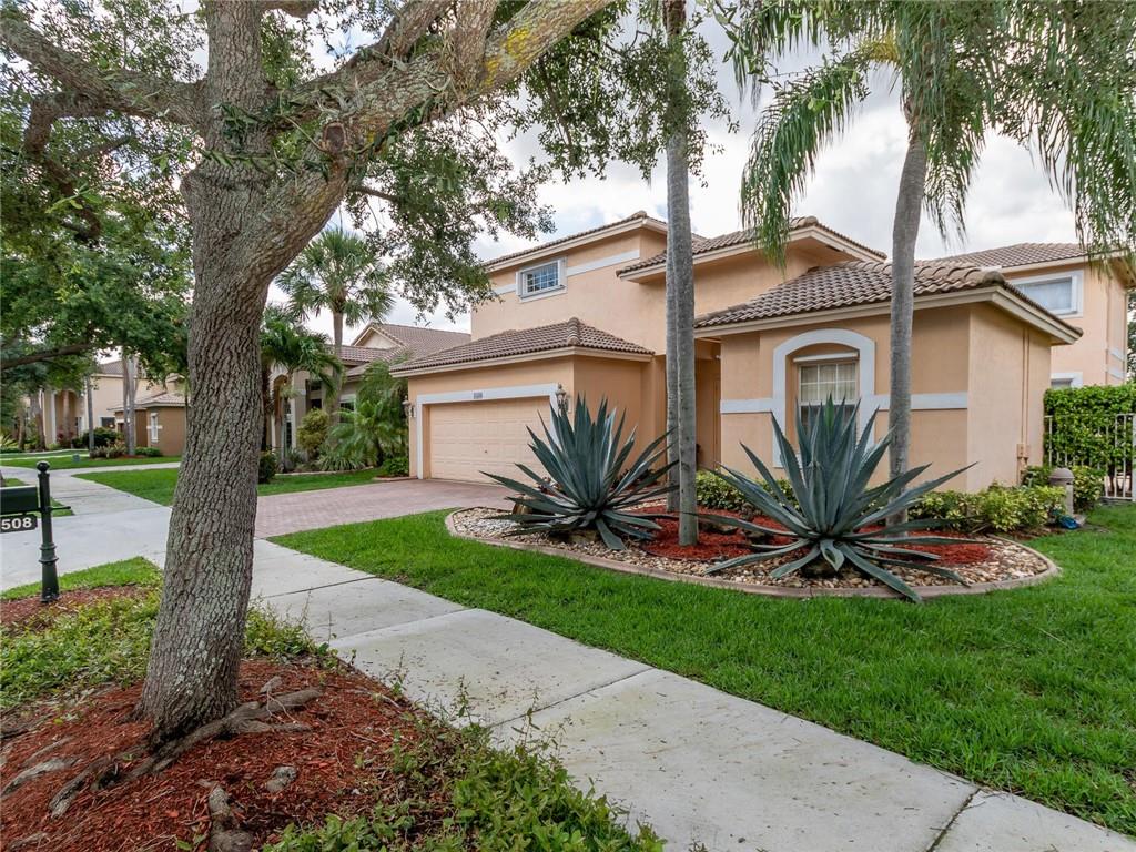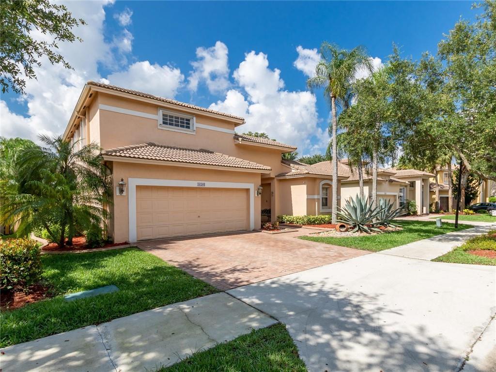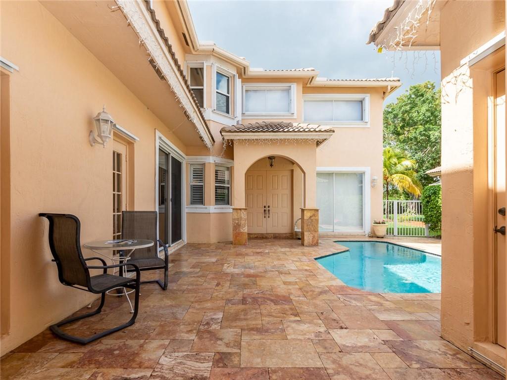 Beautiful 4 bed, 4 full bath courtyard pool home in the prestigious and highly desired gated community of Emerald Estates in Weston. This exquisite home features three bedrooms in the main house and a separate one bedroom with a full bath in-law suite. Dramatic 20' ceilings in the living room. Crown molding throughout. Open concept kitchen with quartz counter tops, brushed nickel appliances, and separate breakfast dining area. Tiled throughout the kitchen, dining, family room, and baths. Huge second floor master bed and bath are beautifully remodeled. Large private backyard. HOA fee includes all front and back lawn maintenance, ADT alarm, cable TV, 1 gig Internet, 24 hr. security, community pool, kid's play area and gym. Weston A+ schools, conveniently located to great shopping & dining.