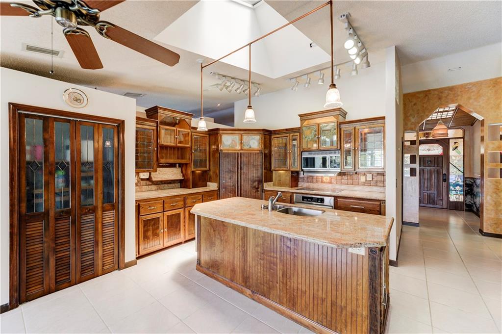 PRICE IMPROVED! SELLER MOTIVATED! This home isn't for the cookie cutter buyer. I have listed hundreds of homes & this by far is the most unique.We needed to explain each room w/a full page of notes inside of the home. As you travel the rooms you enter a new world w/theming complete w/secrets & surprises. You enter into the Asian inspired foyer & can travel through the Old English Den w/wine cellar to the Tuscany style dining rm & entertain in the Irish Pub themed kitchen/family rm. Upstairs is a 30s style theater w/a fireplace & balcony overlooking the 2/3rd acre lot on the tree lined lake. Each bath was also uniquely designed to a theme! Garage freezer stays. There are too many details to fit here.Check out the walking tour video & schedule a visit today. It will be a lifelong memory