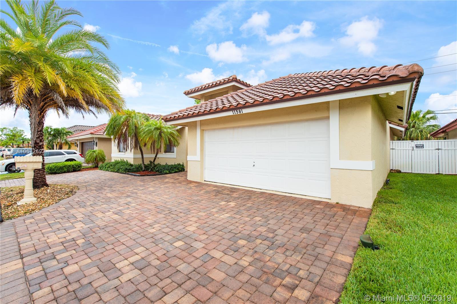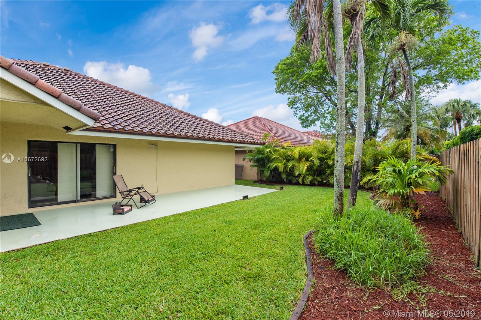 Picture perfect 3/2 with office. This is a unique home with the atrium converted to interior office space for added under air square footage. Loaded with upgrades including beautiful kitchen, highly upgraded baths and gorgeous laminate flooring. Flowing open layout with lots of natural light from the many windows and soaring ceilings. Private fenced yard and large covered patio. Roof 2.5 years old. Quaint Pembroke Pines neighborhood right across street from excellent elementary school. Great location.