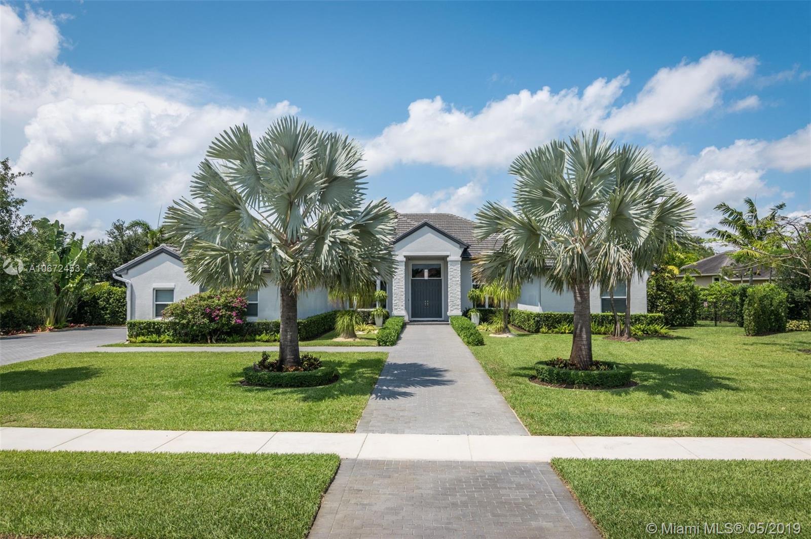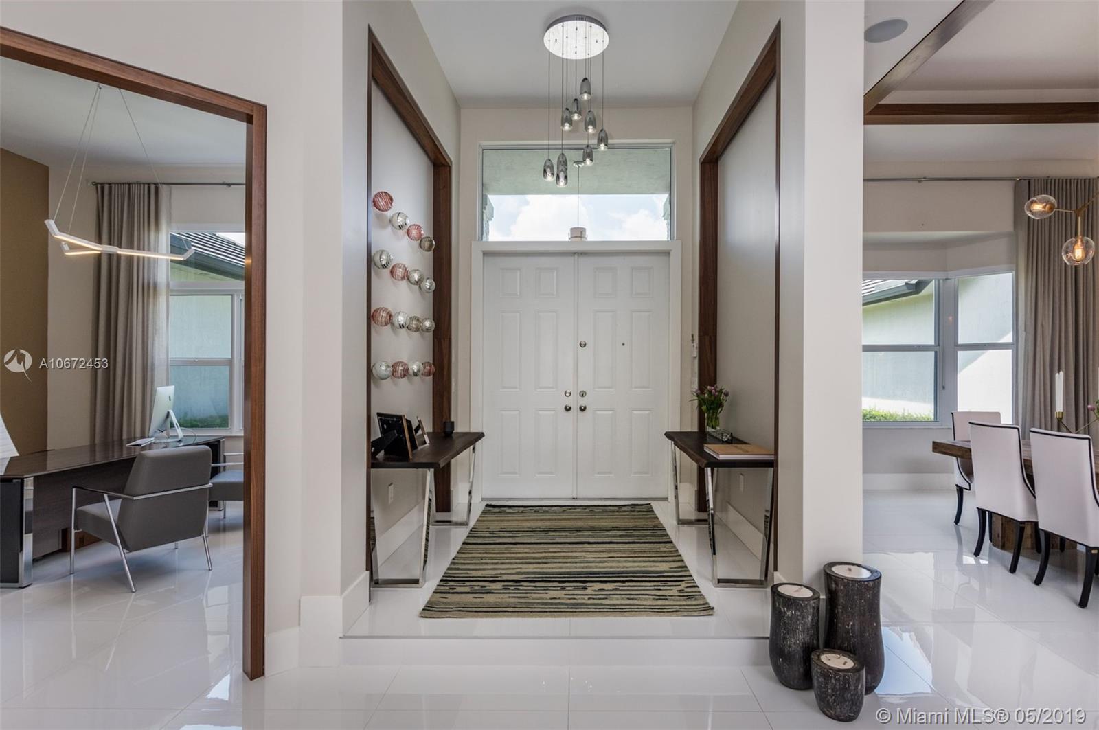 Architectural Digest worthy! Set on a private 35,000sf lot in the exclusive gated community of Woodbridge Ranches, this professionally decorated home features 6 beds/5.5 baths/office/bonus room. With more than 4,700sf under air, this custom-built home offers an open floor plan. Floor-to-ceiling impact glass windows provide an impressive backdrop for any gathering. Well-appointed kitchen w/ stainless-steel appliances including Gas cooktop. Triple-split floor plan w/porcelain white glass as well as wood flooring throughout. Generous master suite w/ spa-like master bath. Designer lighting & millwork throughout. Expansive outdoor living area w/ modern resort-style heated pool, covered patio w/ custom Rolling Shield electric screen, Platinum mosquito system & plenty of room for the kids to play