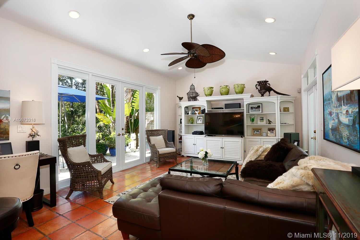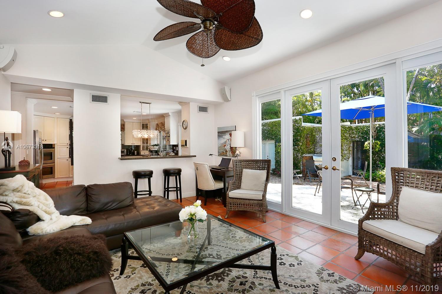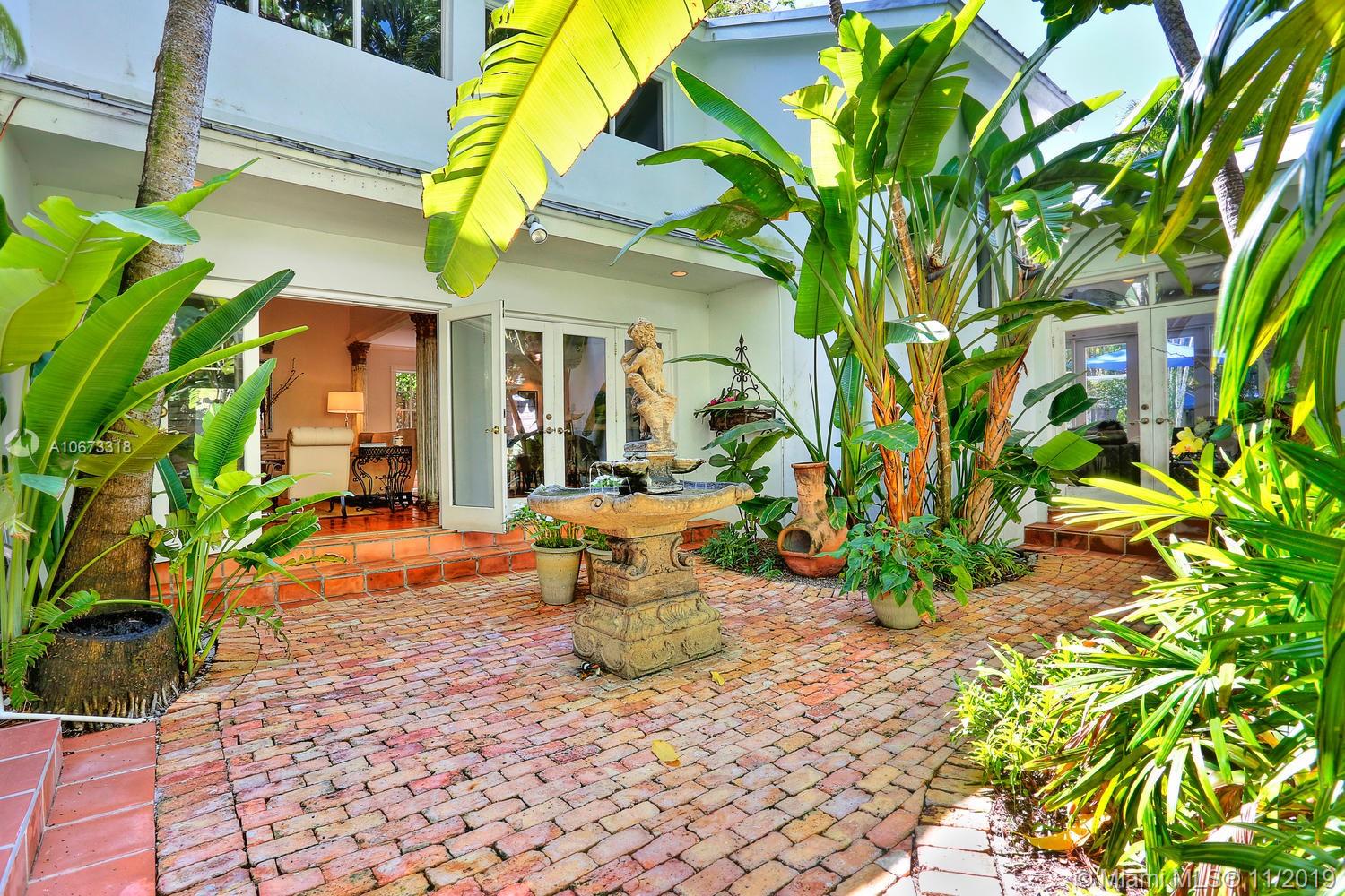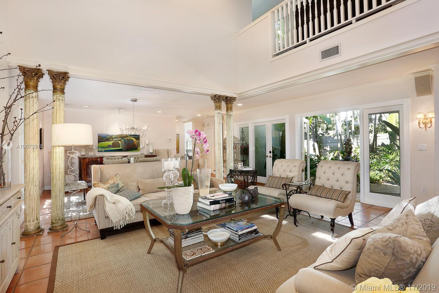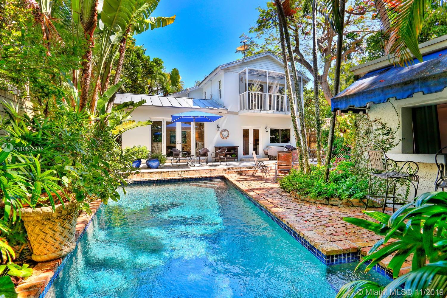 Lovely Key West style home on a coveted & quiet cul-de-sac street in prestigious South Coconut Grove. “Irvington” is a small & neighborly community with it’s own private park nestled among towering oaks & a magical, verdant landscape. Entry foyer opens to light-filled living spaces featuring double-height ceilings, clerestory windows & French doors throughout that overlook bricked terraces & lush tropical gardens. Custom kitchen w/ white cabinetry, granite countertops & breakfast area; opens to expansive family room. Enjoy outdoor living & entertaining around the ultra-private pool in a tranquil setting. Detached 1BR/1BA guest cottage. Minutes to excellent schools; including Ransom, Carrollton & St.Hugh’s. Walk or bike to the Grove village center’s boutiques, cafes and bayfront parks.