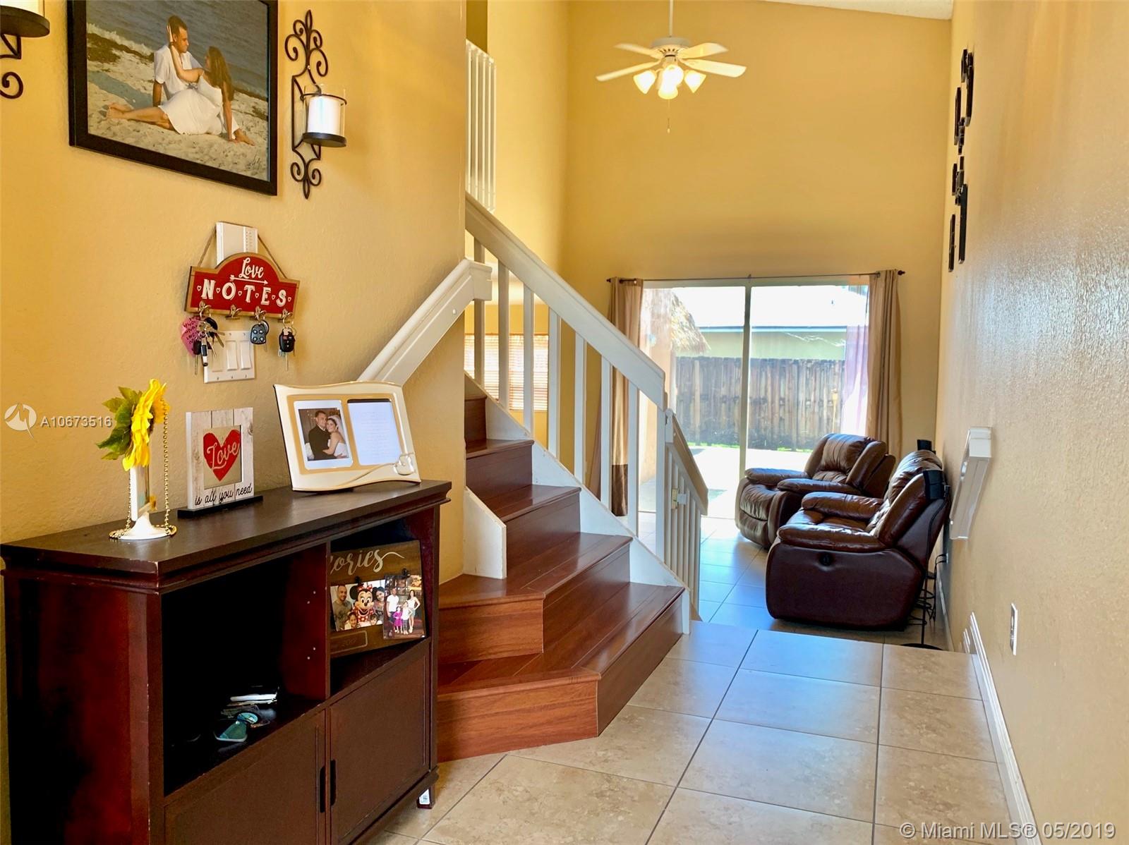 Gorgeous elegant home Located just minutes from Miami Lakes, enjoy the spacious well maintained two storied single family home in the Spanish Lakes community. This beautiful home is perfect for entertaining, spacious first floor layout with open kitchen and formal dining area. Two car garage, washer and dryer and a remodeled back yard. Association fee include Alarm, and basic cable as well.