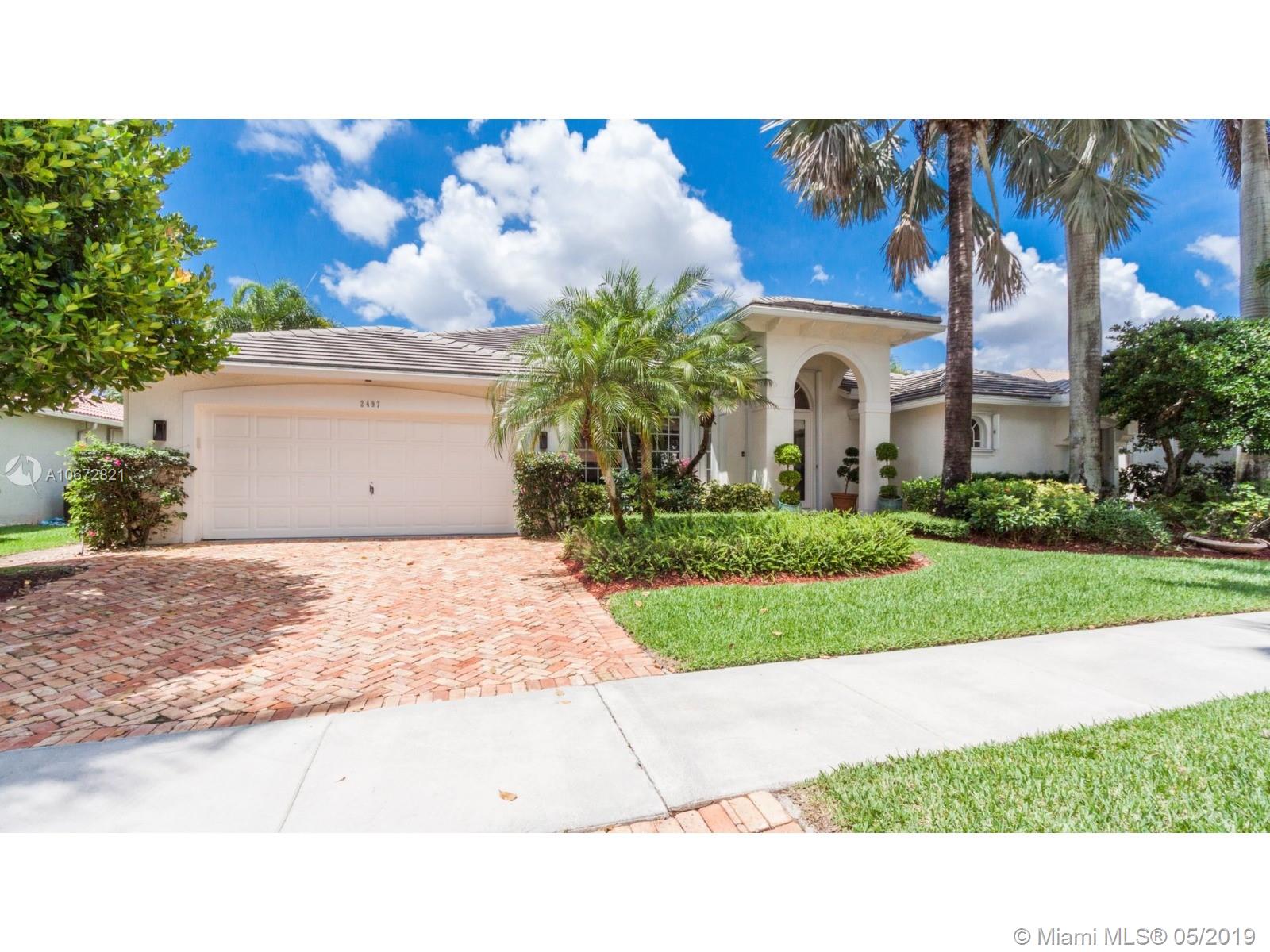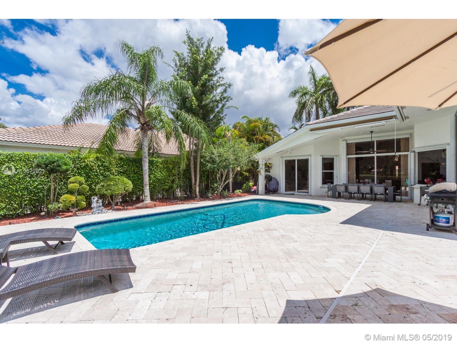 Captivating Luxury One-Story Single Family Home at Eagle Watch, Weston Hills Country Club. 4 bed 3 baths. Upon entering the house, enjoy the large spacious layout open concept with lots of natural light and high ceilings. Breathtaking views of Weston Hills golf course hole #2 and your private pool as it can be seen from almost anywhere in the home. Kitchen has large quartz counter-top and a little niche perfect for a breakfast table, with open windows to enjoy the view. Driveway entrance paved with brightening rustic Chicago brick. Hardwood floors and LED lights across the whole house. Renovated bathrooms. Recently replaced A/C units. Prestigious 3M Sun Control films on windows allow for utmost luminosity but trap heat for a cooler home. Remote control window shades in Family and Kitchen.