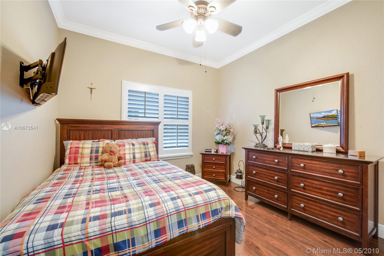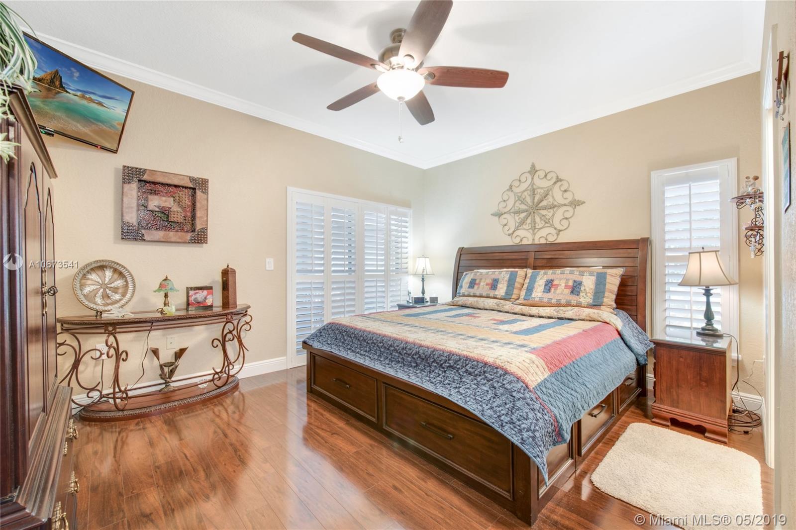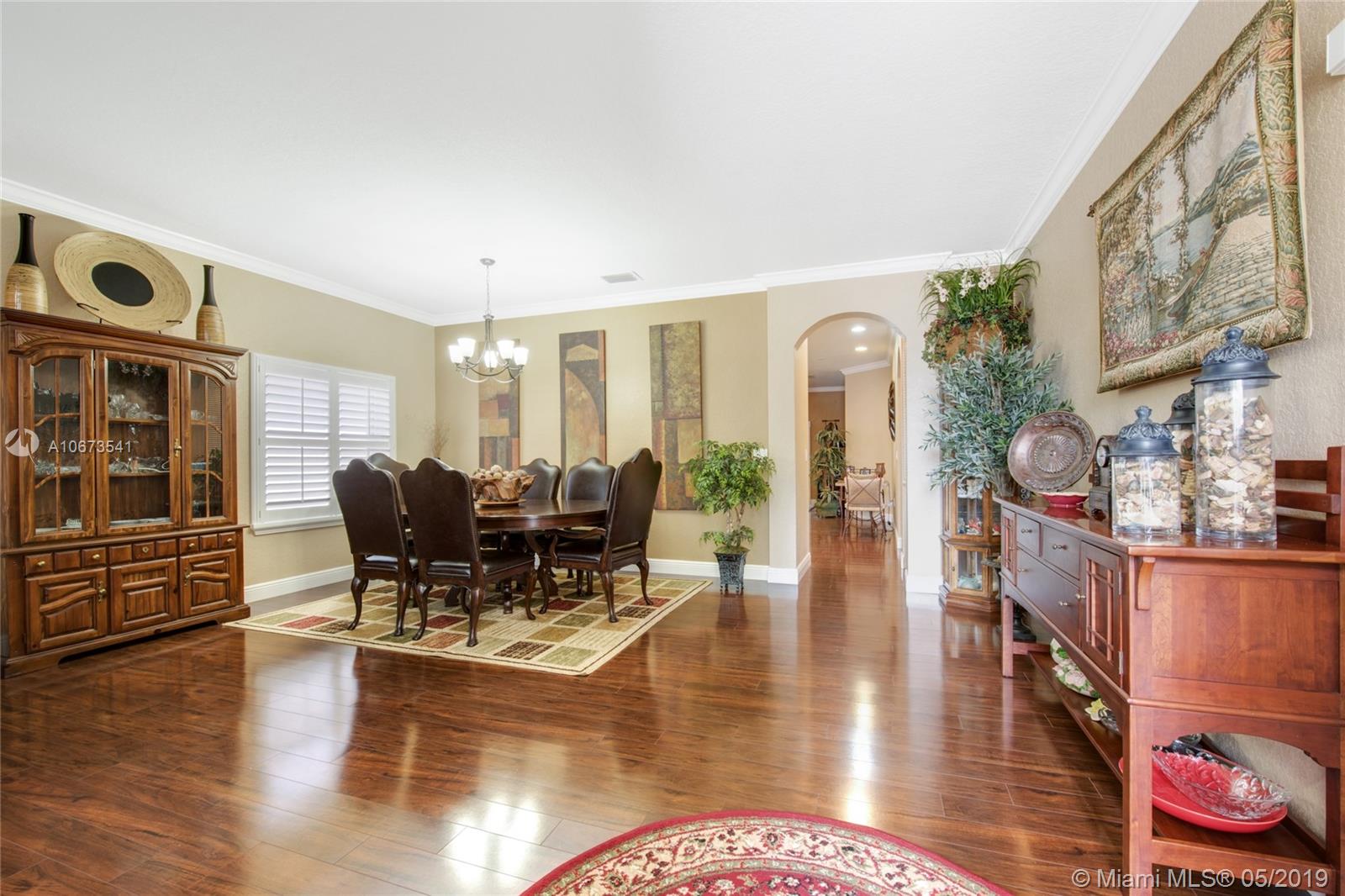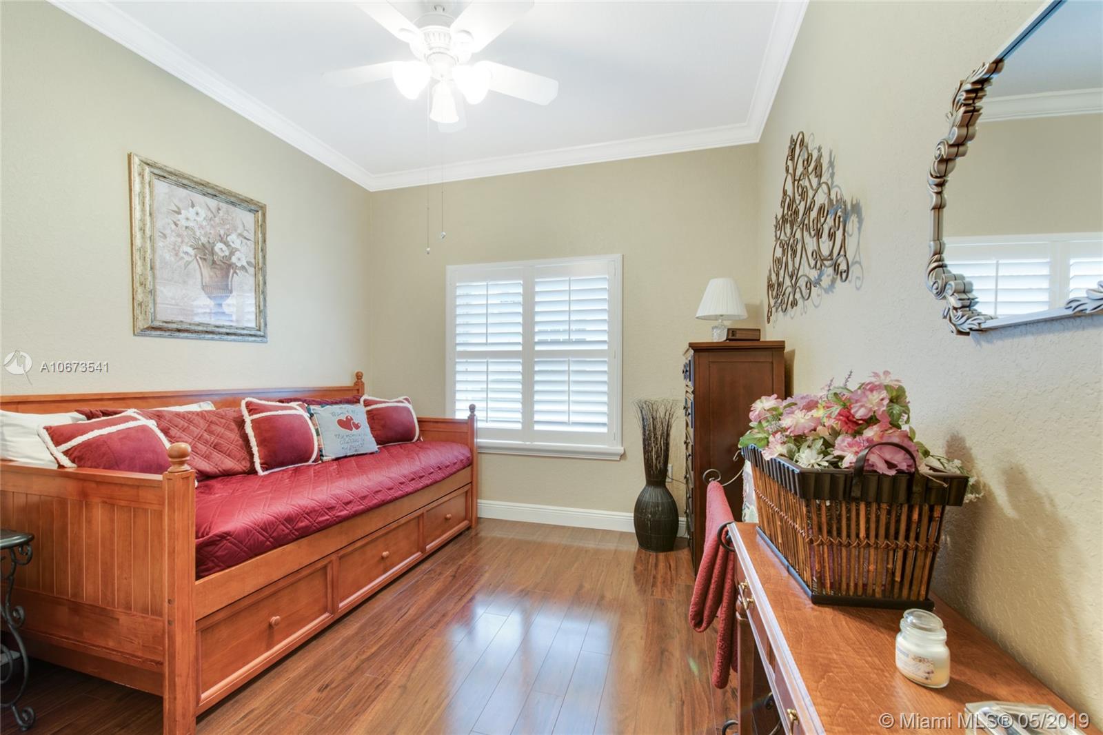Pack your bags and get ready to move because we have got just the house you've been looking for! Former 4 bedroom, 2 bathroom house- now a 3 bedroom that can be easily converted back if you wish! This home has a tasteful transitional design where modern and traditional meet and offers elegant wood flooring throughout, modern lighting and accents, large kitchen with stainless steel appliances, cooking island and snack bar, large living room, formal dining, laundry room, over-sized two car garage, spacious bedrooms, huge master suite with sitting/office space, and luxurious master bath with frame-less glass shower. Charming backyard with exquisite landscaping and covered patio - perfect for entertaining! Community amenities include children's playground, state-of-the-art gym, pool, and more!