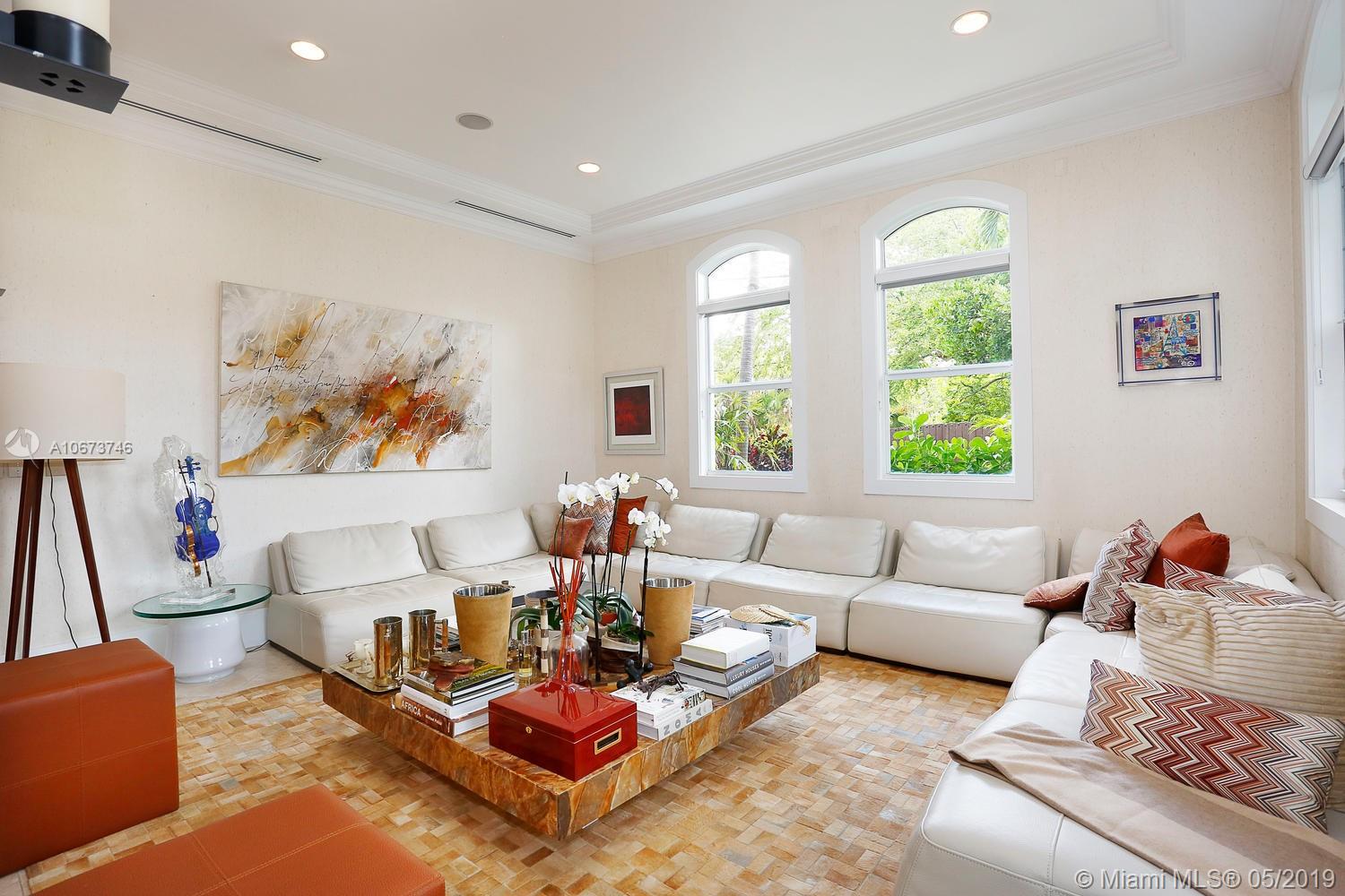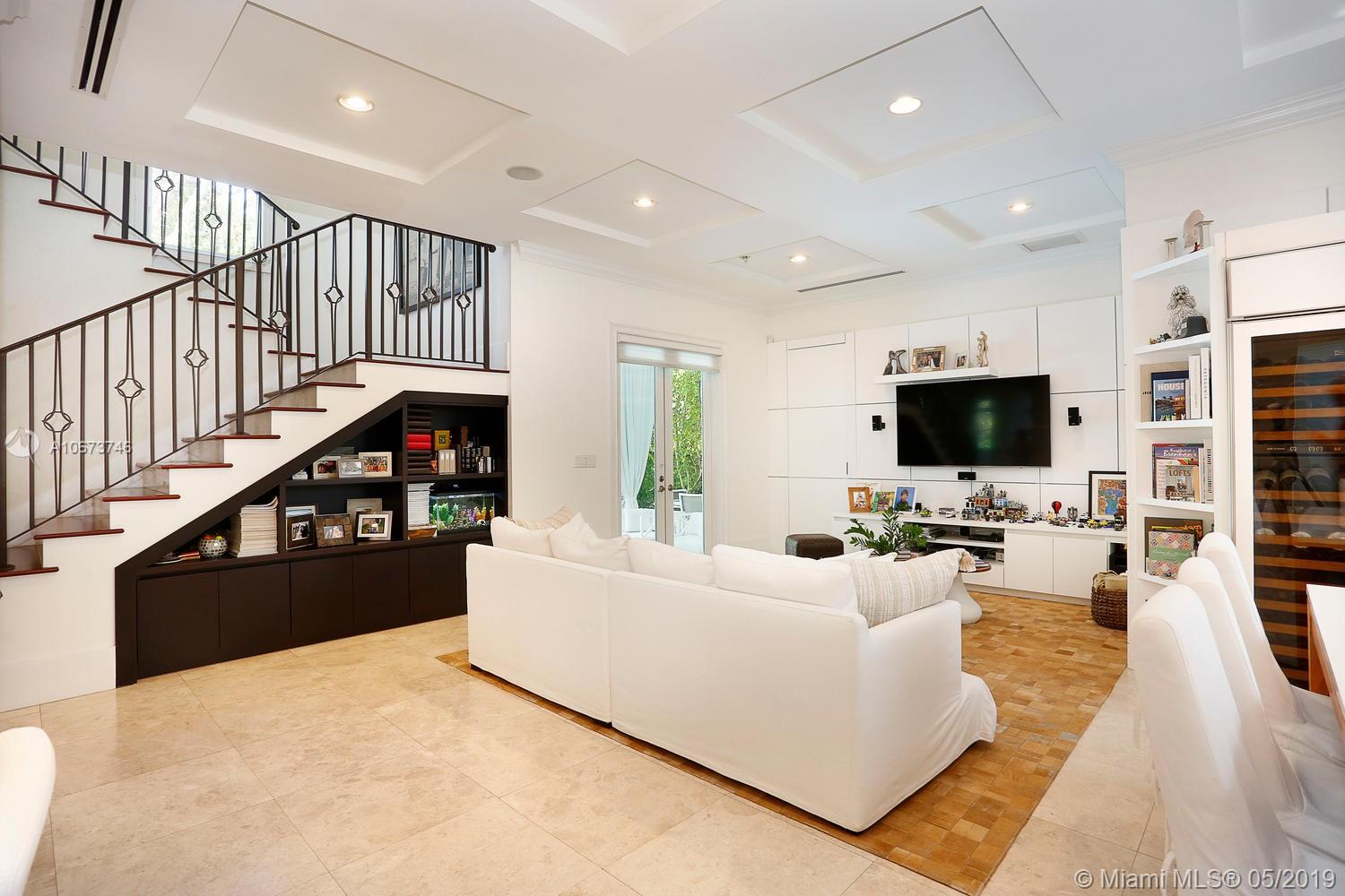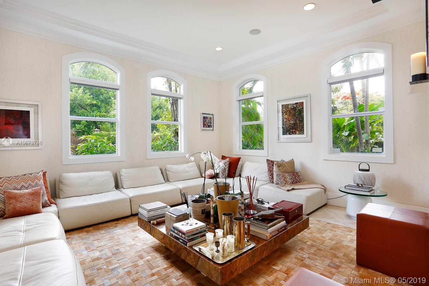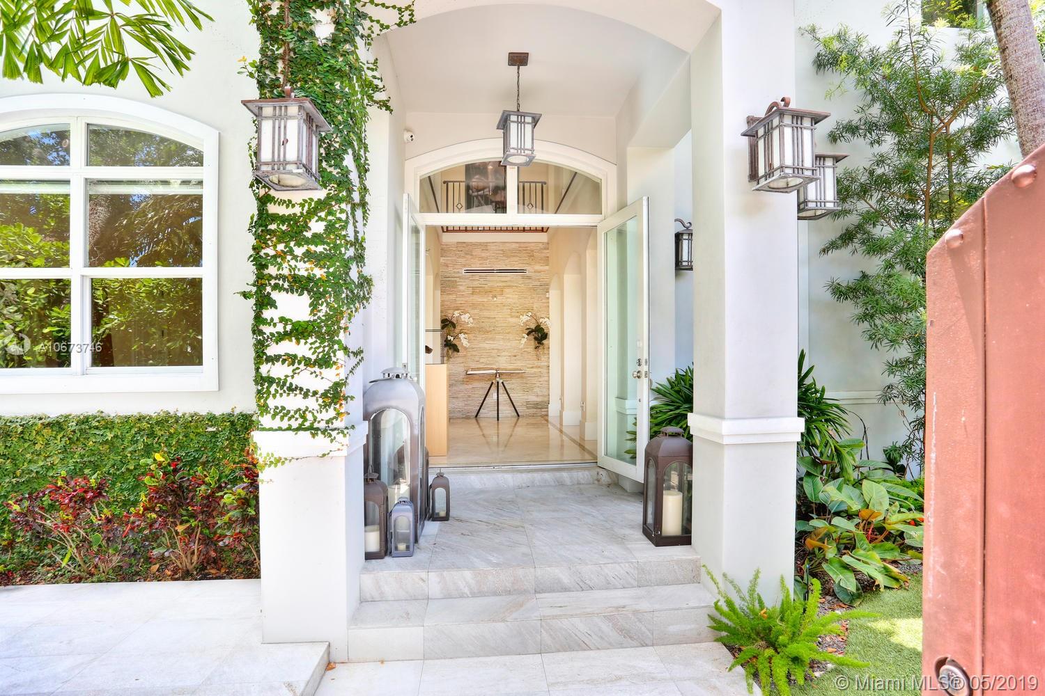 Stunning, magazine quality home in prestigious North Coconut Grove. Walk to bayfront parks & marinas, yet located at one of the highest sea-level elevations in South Florida. Totally walled & gated for ultra-privacy. Light-filled living spaces offer double-height ceilings and a blending of classic architectural details with a modern vibe. Expansive formal living & dining rooms for entertaining. Family room with custom built-ins, opens to the spectacular high-end kitchen w/white-lacquered cabinetry, walk-in pantry, professional gas range & adjacent breakfast area. Incredible master suite features his/hers walk-in closets (hers: 12’ X 19’), luxurious bath w/soaking tub & private terrace overlooking the garden & tranquil pool. Minutes to the Grove village center, MIA, downtown & the Beaches.