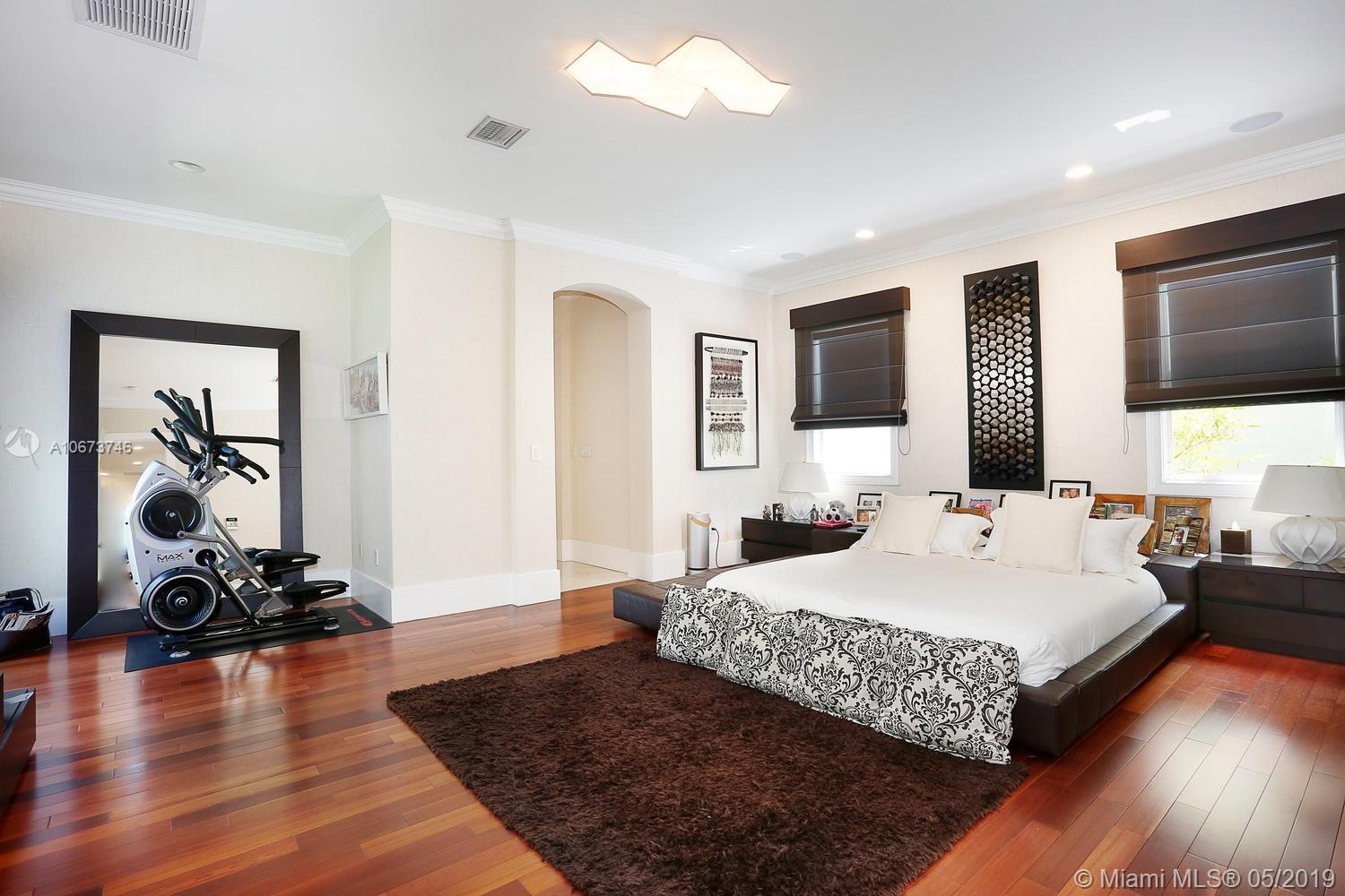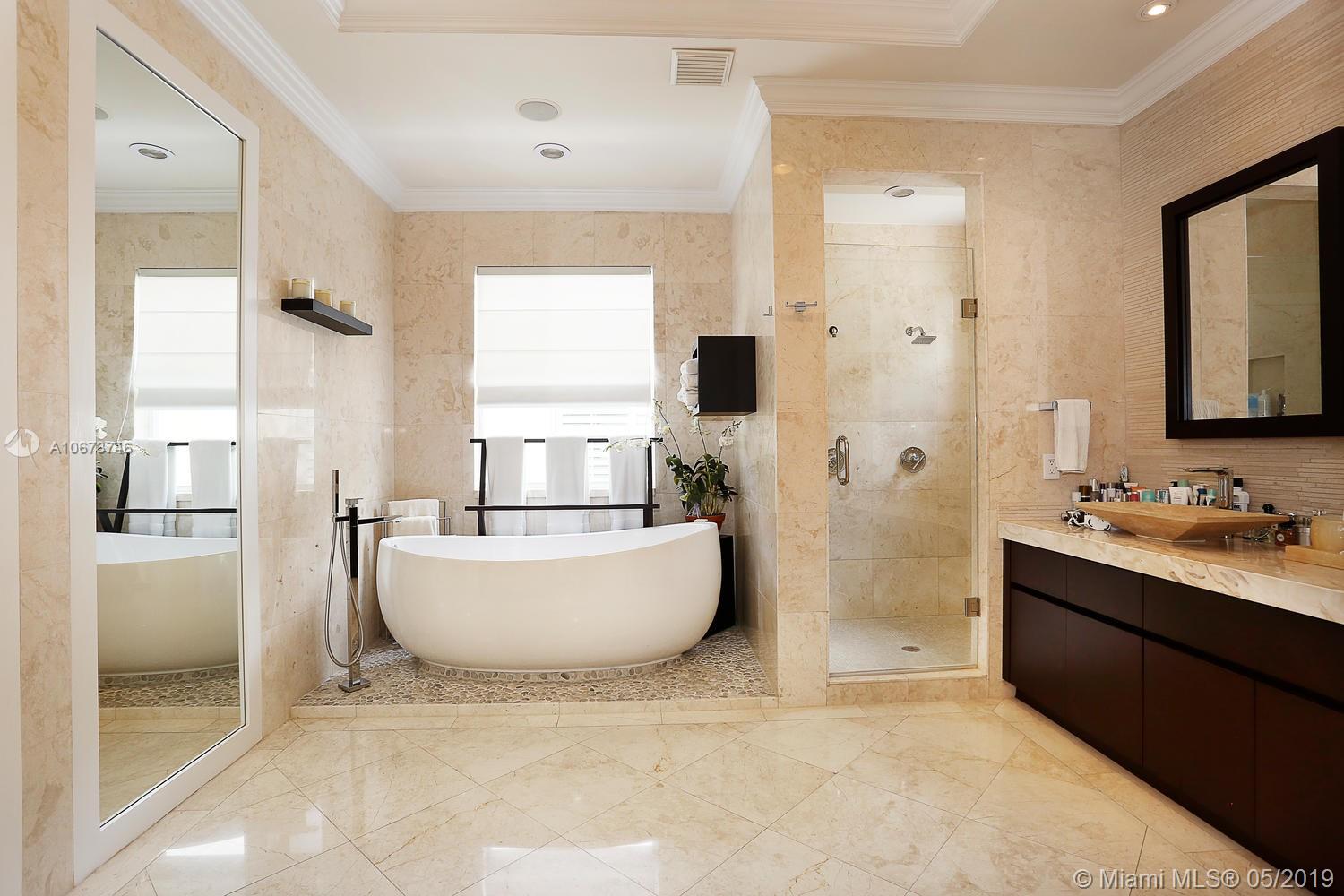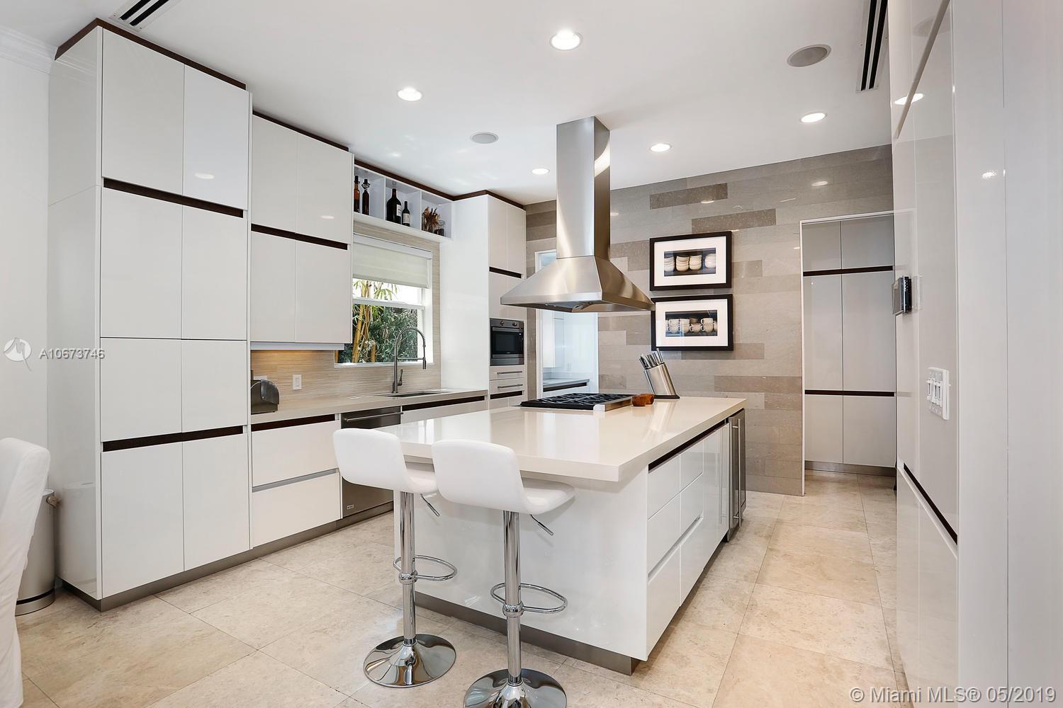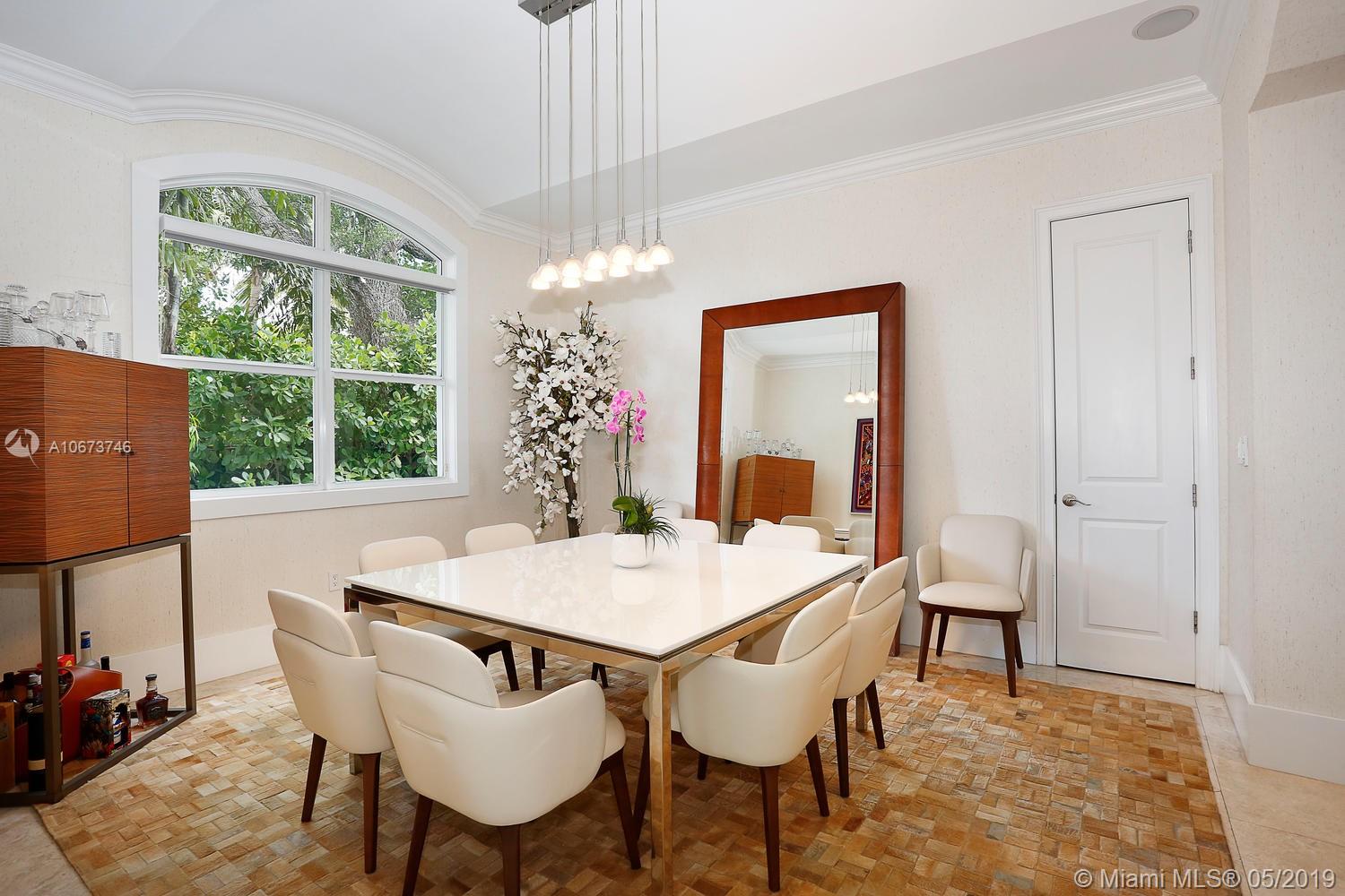 Stunning, magazine quality home in prestigious North Coconut Grove. Walk to bayfront parks & marinas, yet located at one of the highest sea-level elevations in South Florida. Totally walled & gated for ultra-privacy. Light-filled living spaces offer double-height ceilings and a blending of classic architectural details with a modern vibe. Expansive formal living & dining rooms for entertaining. Family room with custom built-ins, opens to the spectacular high-end kitchen w/white-lacquered cabinetry, walk-in pantry, professional gas range & adjacent breakfast area. Incredible master suite features his/hers walk-in closets (hers: 12’ X 19’), luxurious bath w/soaking tub & private terrace overlooking the garden & tranquil pool. Minutes to the Grove village center, MIA, downtown & the Beaches.