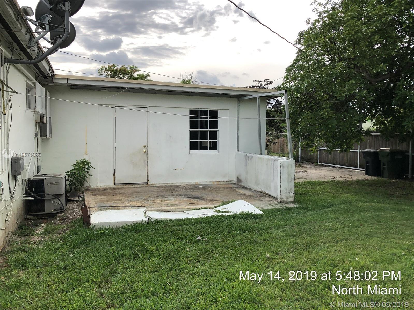 Investor' dreal- this is the one you have been looking for. Large bright, living room, tons of natural light. Dining area is open to kitchen leading to large garage accessed from rear. Beautiful yards, front porch, fully fenced. Fabulous location, quiet street, currently a 3 bed 2 bath and needs roof, AC, electrical, WDO treatment - cash buyers only due to condition. Sold AS-IS, buyer will be responsible for open permits and must obtain a Conditional Certificate of Re-Use from the City of North Miami. Call the city to learn the process before presenting offers. Offers considered after 5/23/19. IF THE PROPERTY IS ACTIVE IN THE MLS, IT IS ACTIVE. READ ATTACHMENTS AND BROKER REMARKS