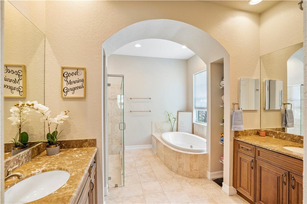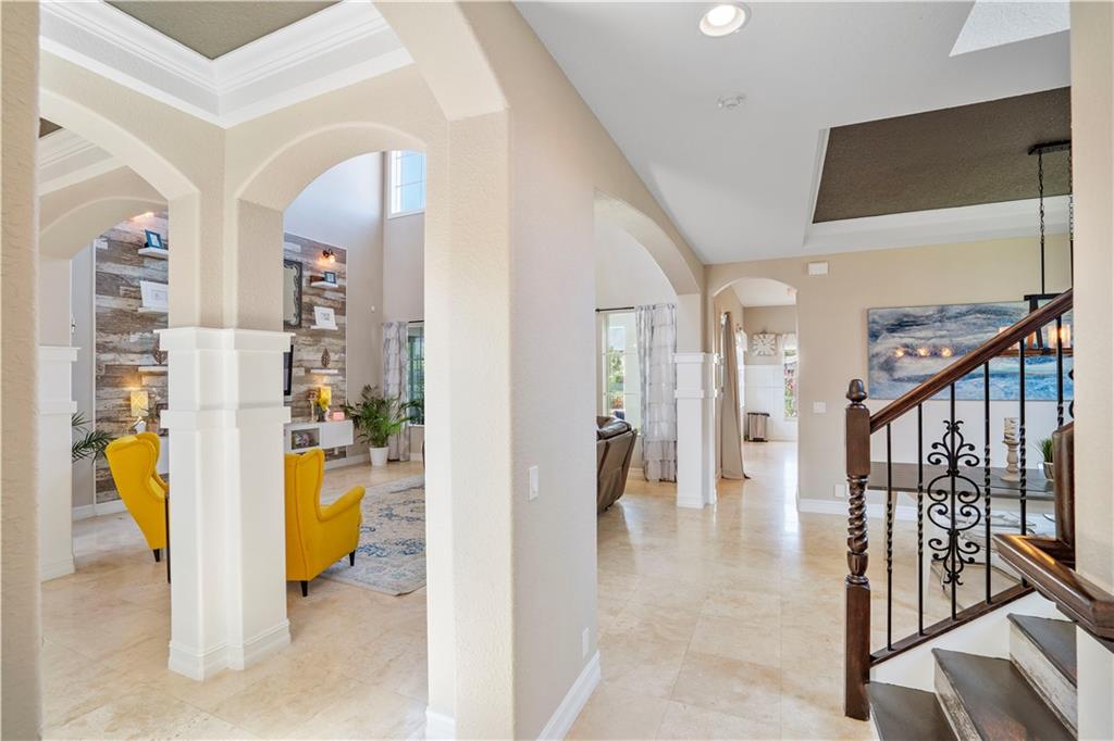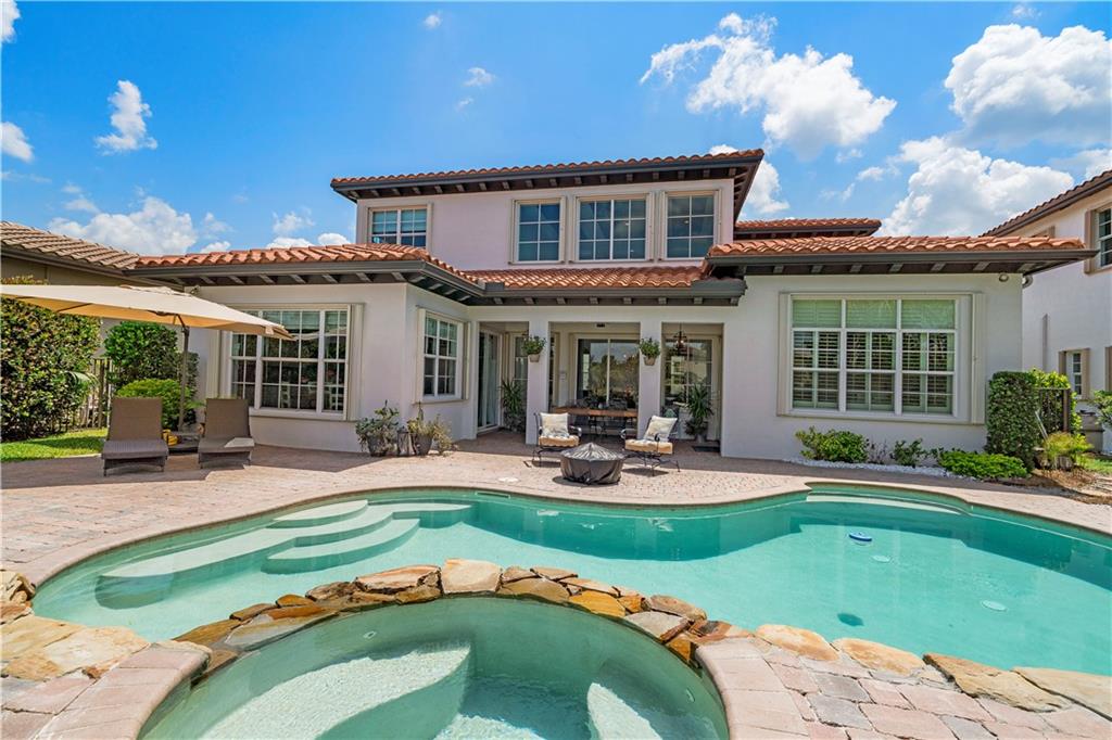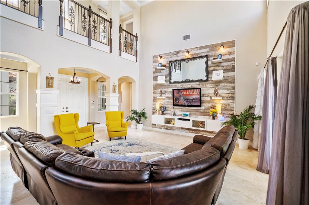 Step into this modern coastal style oasis 5 bed, 4 bath, plus office home. Upgraded w/ trim work & built-ins. Master bedroom suite, 1 guest bed, 1 full bath, & office downstairs. 3 beds, 2 full baths, & laundry room upstairs. Updated kitchen with double oven, walk-in pantry, large island, & stainless steel appliances. Marble floors & new washer and dryer. Gorgeous accented stairway & custom floating wall unit in the family room, painted molded tray ceilings, recently painted interior and exterior, & new landscaping. Heron Bay has 2 clubhouses, 2 gyms, 2 resort style pools, and splash park. Tennis, basketball, volleyball, racquetball, A+ schools. Beach is 25-30 minutes away. Come see this gorgeous move-in ready home!