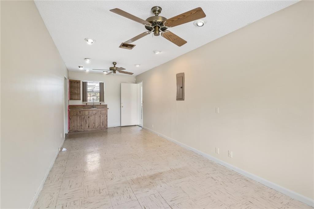 Great potential! 3 bedroom, 2 bathroom single family home. New roof, Bonus room could be 4th Bedroom, Waterfront, pool, screened in Lanai. Attached garage and spacious driveway to park. This home has stacked bedrooms and a huge living area which has a view of the pool outside. Spacious bedrooms private to each other. Neighborhood is quiet and near schools, shopping, dining and main roads. MUST SEE!