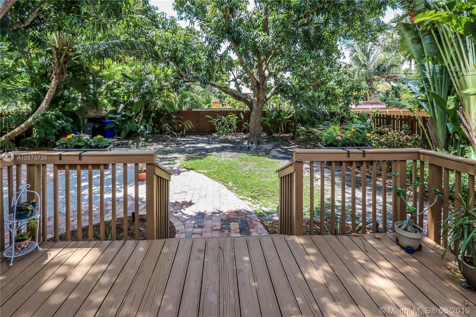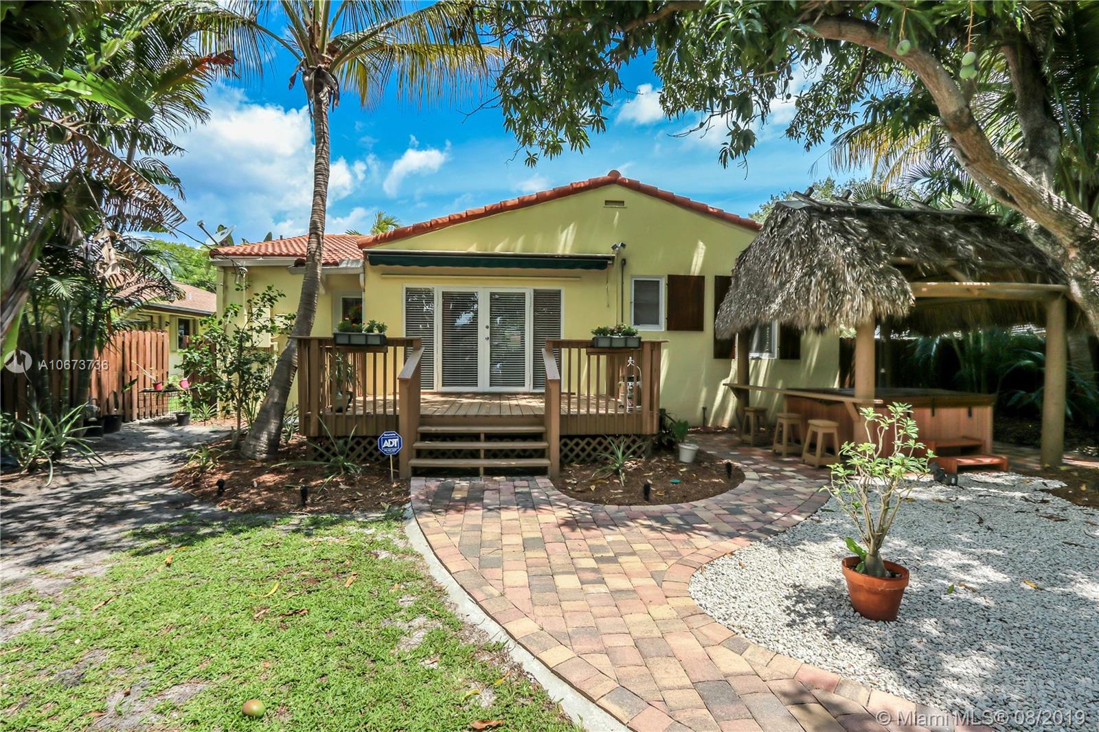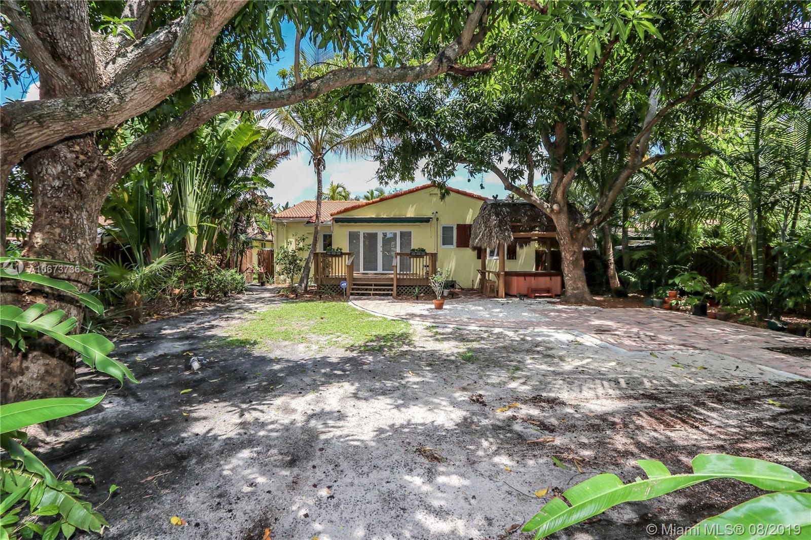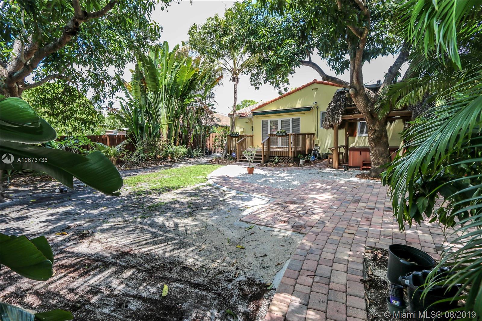 Charming 3 bed/2 bath/1 car garage in East Hollywood. Original refinished Oak Wood floors & Dade County Pine Wood floors in kitchen. LG stainless steel appliances: double door fridge, gas stove, electric oven & microwave. Laundry room, wide open over-sized living room & formal dining room w/Chicago brick flooring. Two built-in shelves in living room. Master bedroom: Lrg bathroom w/pantry & walk-in closet. Blinds on all windows. Outside-perfect for entertaining incl: wood deck, Gazebo & Jacuzzi tub (newer pump). Great size fenced in backyard. Room for a pool. Beautiful tropical foliage;1 banana, 2 mango & many pineapple plants. Front covered pavered patio. Termite service maintenance. Tankless gas water heater. New a/c installed 5/19. Minutes to Downtown Hollywood, Young Cir & beach.