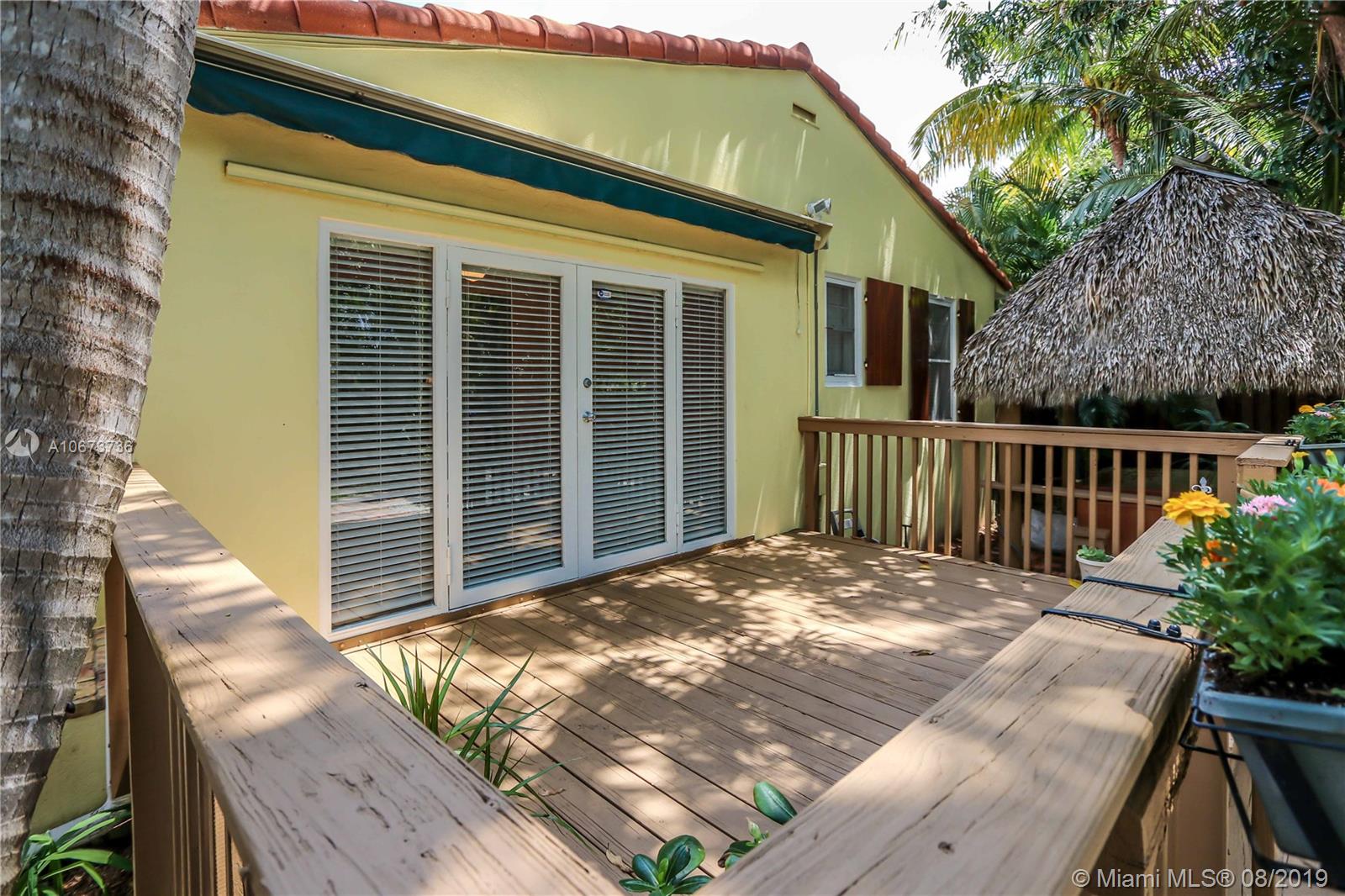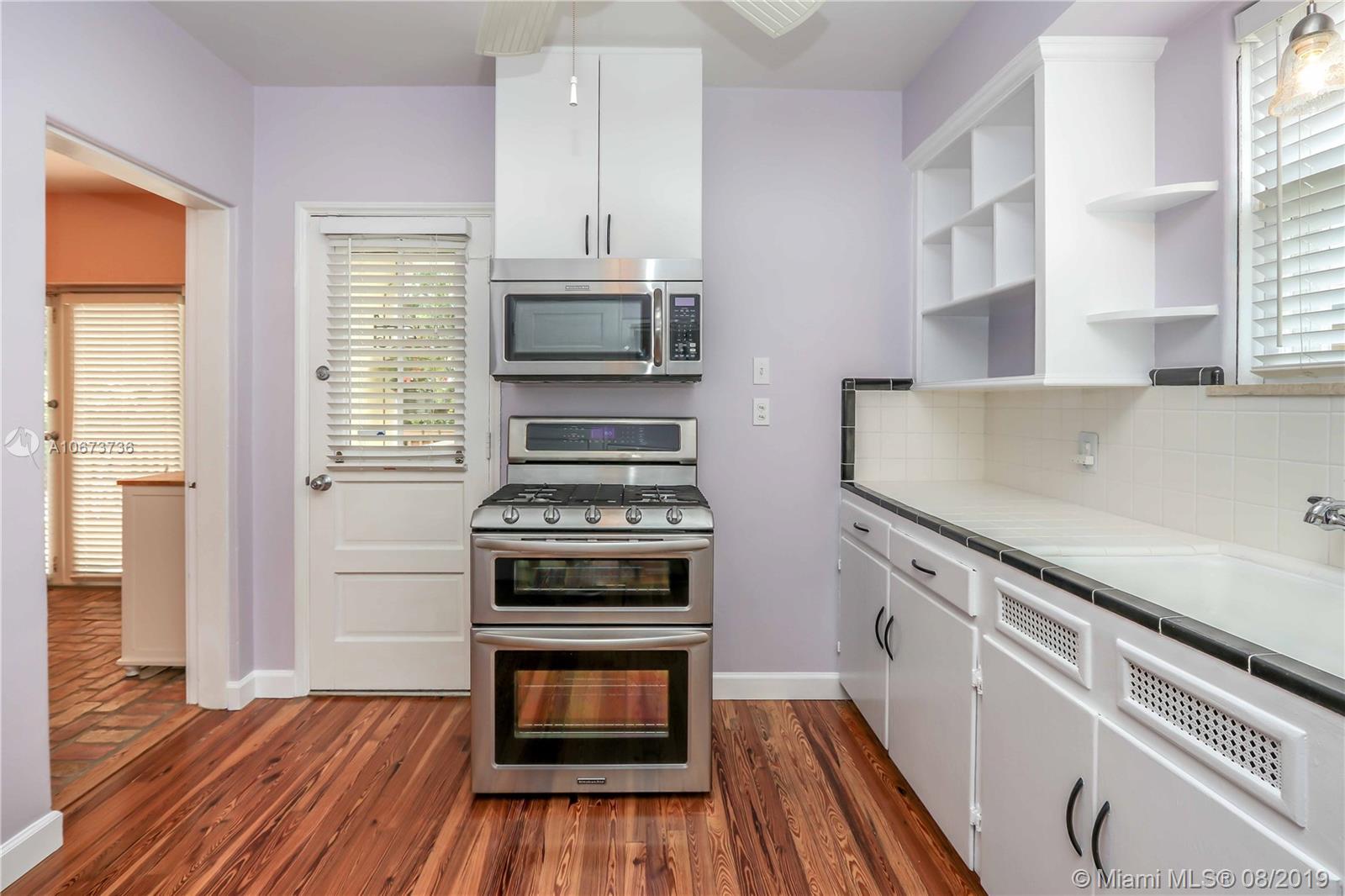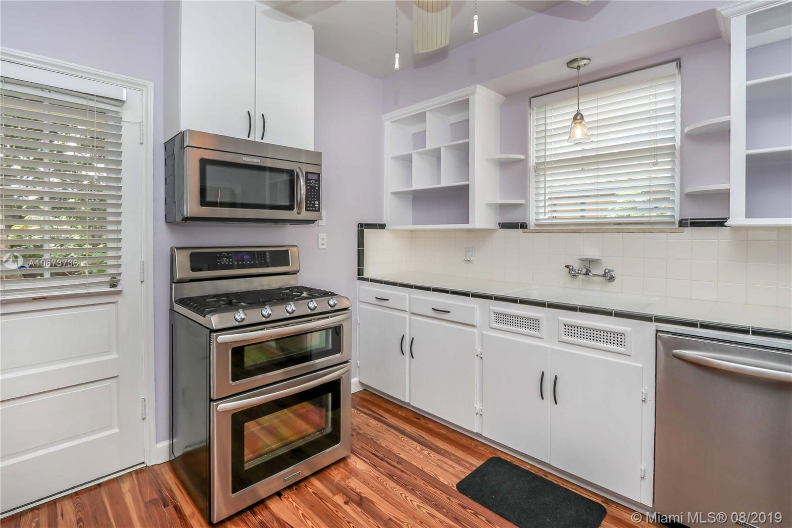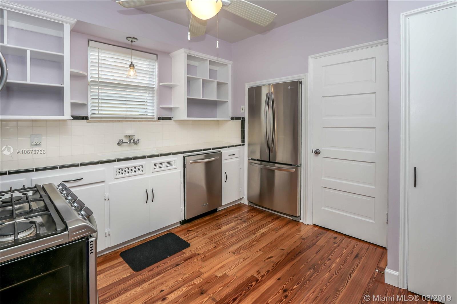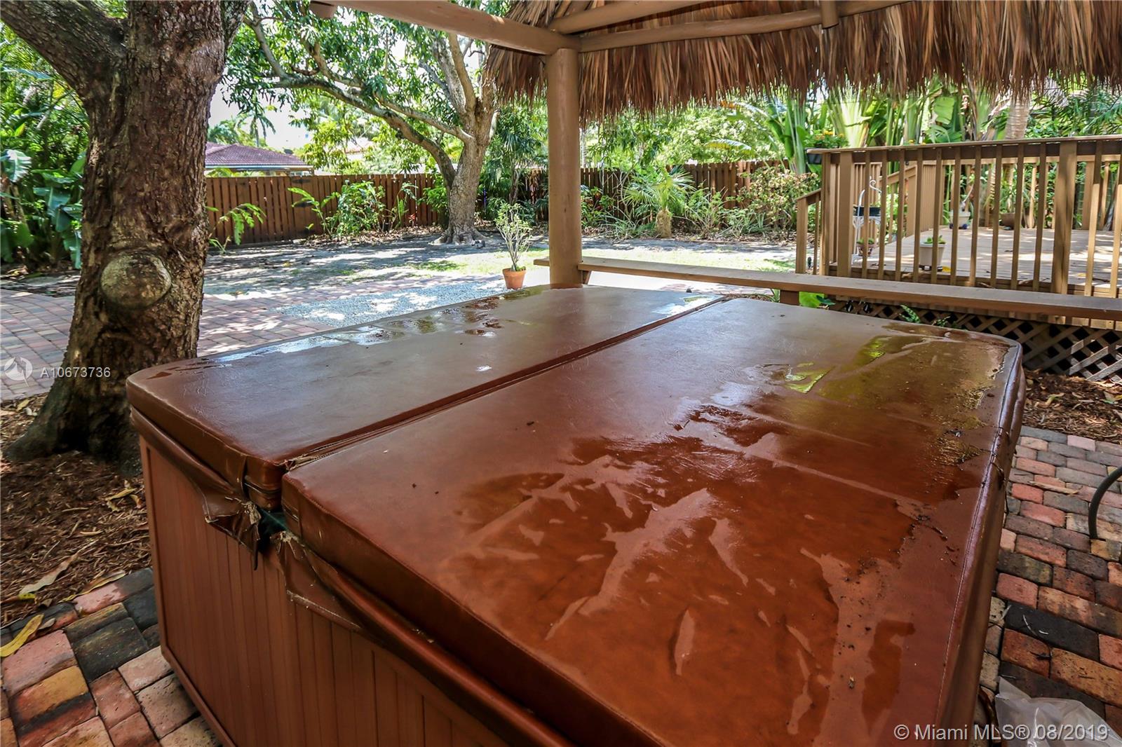 Charming 3 bed/2 bath/1 car garage in East Hollywood. Original refinished Oak Wood floors & Dade County Pine Wood floors in kitchen. LG stainless steel appliances: double door fridge, gas stove, electric oven & microwave. Laundry room, wide open over-sized living room & formal dining room w/Chicago brick flooring. Two built-in shelves in living room. Master bedroom: Lrg bathroom w/pantry & walk-in closet. Blinds on all windows. Outside-perfect for entertaining incl: wood deck, Gazebo & Jacuzzi tub (newer pump). Great size fenced in backyard. Room for a pool. Beautiful tropical foliage;1 banana, 2 mango & many pineapple plants. Front covered pavered patio. Termite service maintenance. Tankless gas water heater. New a/c installed 5/19. Minutes to Downtown Hollywood, Young Cir & beach.
