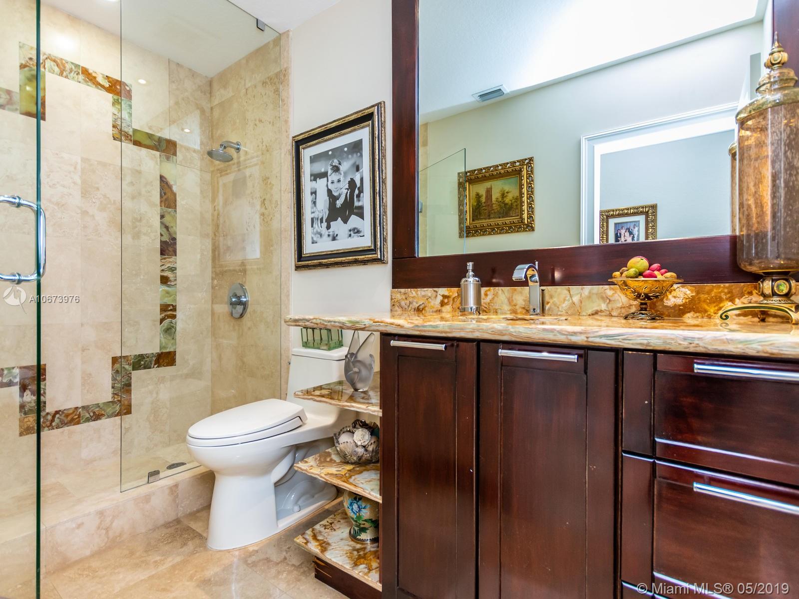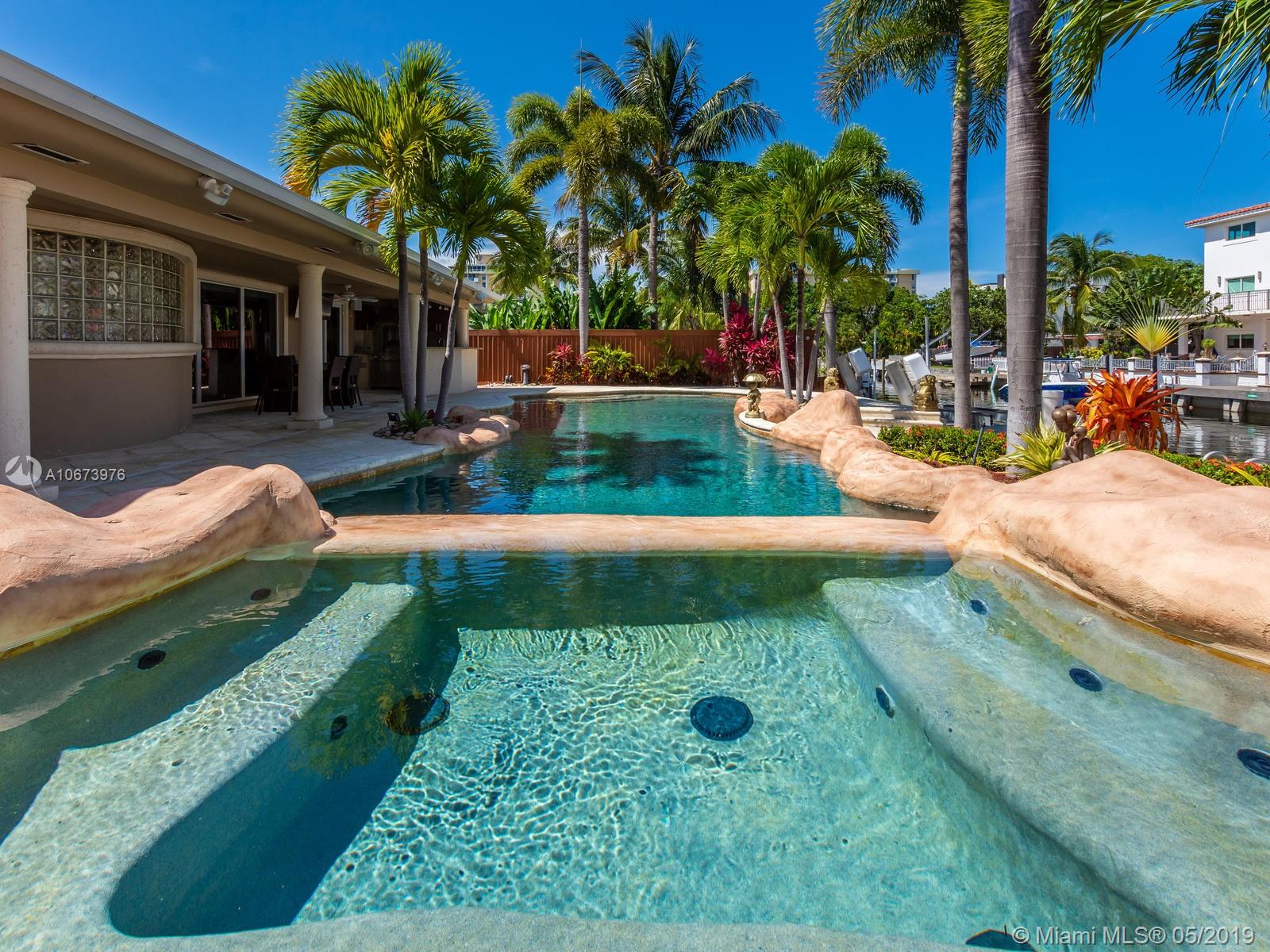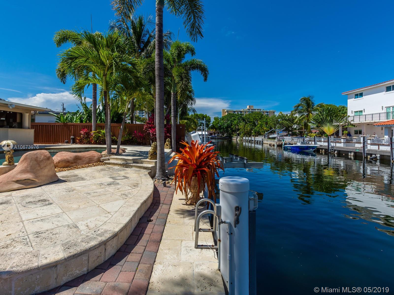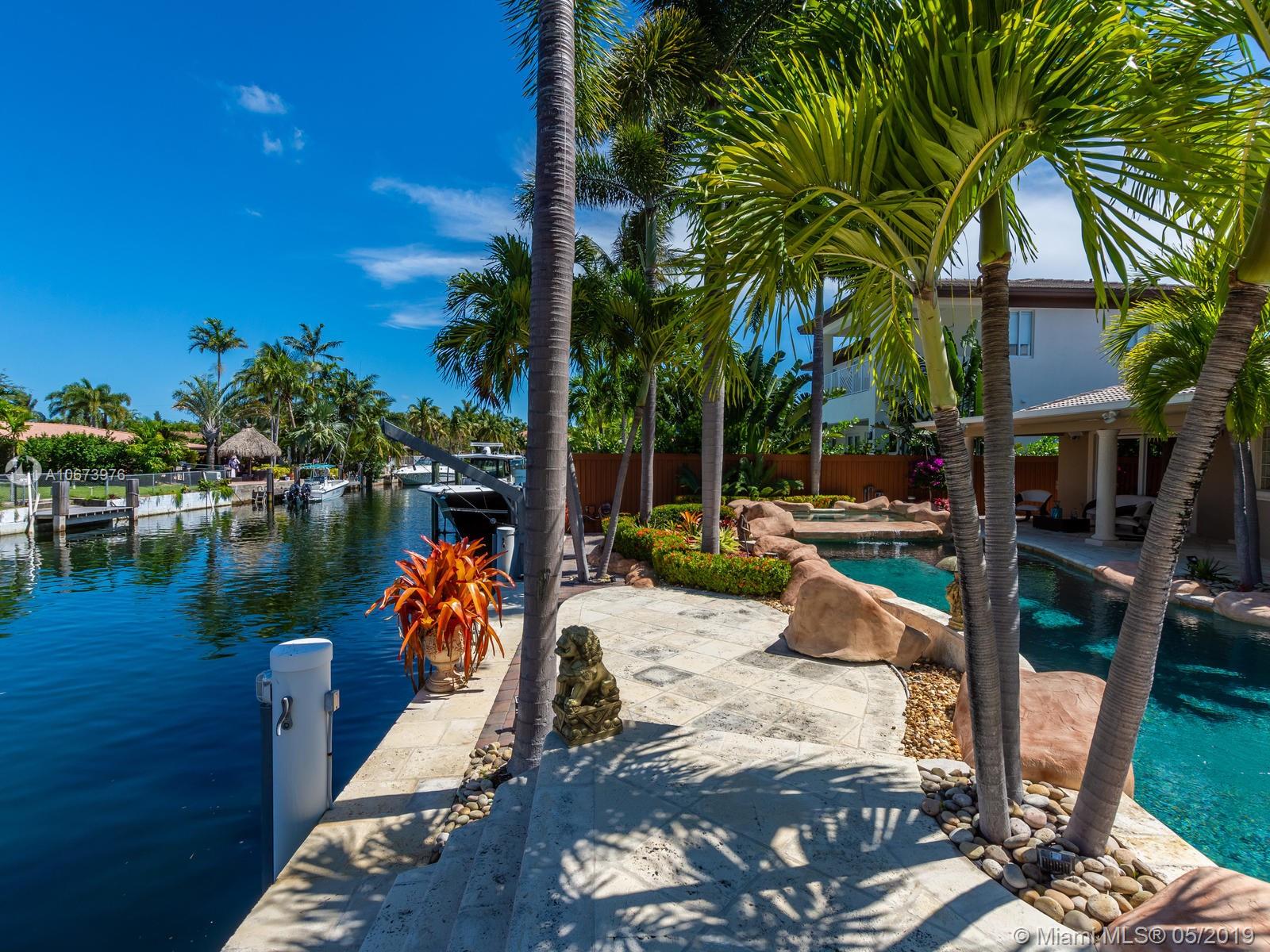 Stunning waterfront home located on a quiet cul-de-sac in the exclusive 24 hour guarded Keystone Point. This beautiful 3 bed/2.5 bath + den home features impact windows/sliding doors to provide maximum light with views of pool and waterways throughout. Inside you will find an open gourmet kitchen with plenty of counter space featuring Sub-Zero and Wolf brand appliances. Home also includes HD camera system, air conditioned 2-car garage, newly installed purified water softener system and california closets. Step outside and enjoy the large covered patio overlooking a one of a kind oversized custom pool. This boater’s dream home offers 75 ft of dock space and includes a boat lift on an ocean access canal with no bridges to the bay. Close to Bal Harbour, beaches and much more.