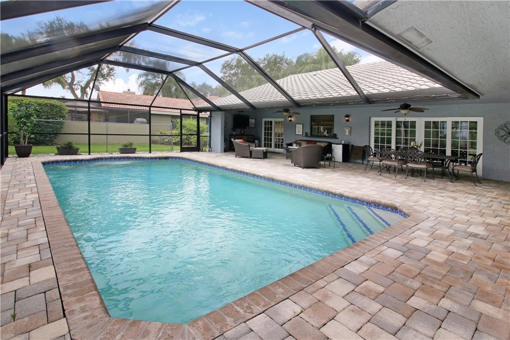 Lovingly cared for 4 bed 2.5 bath Pine Ridge Home with same owner for 30 years. Located on a quiet street, this waterfront home with a screened- in pool is walking distance to the Park. The home has been fully upgraded with granite counter tops, 2 new AC systems, hurricane shutters and hurricane grade windows. The open concept kitchen is perfect for entertaining. Patio complete with a pool, all of which is screened in. The hedges allowing for privacy and provides sunny mornings and cooler afternoons. Vaulted ceilings throughout the home allow for great amounts of natural light. The master features two walk-in closets and two separate sink areas in the bathroom. The master bath also has a walk in shower and separate soaking tub.