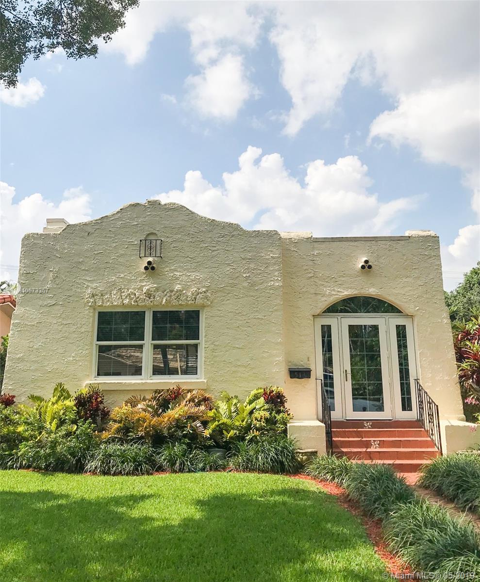 New Listing. Well-priced two bedrooms one bath home with office. Enter large enclosed front porch that has French doors to the living room. The LR has a fireplace and built-in bookshelves. Formal Dining Room, Beautiful newer kitchen with stainless steel appliances, and lots of cabinets and counter space. Sunporch or a den off the back bedroom could easily become a second bath. Laundry room. Impact windows.One-car garage now with half bath now used as an artist studio. Patio for outdoor dining. 1,587 adjusted square feet on a 5650' lot. Walk to Miracle Mile. Built-in 1924 and one of Merrick's original "model" properties when Coral Gables was under construction. FIRM PRICE.