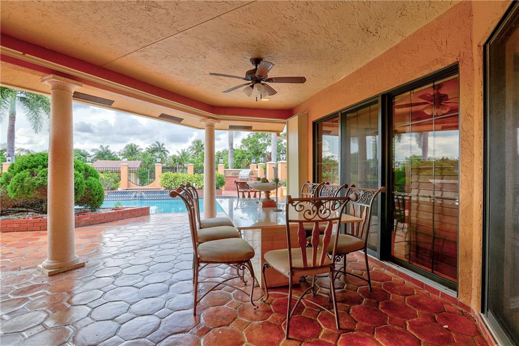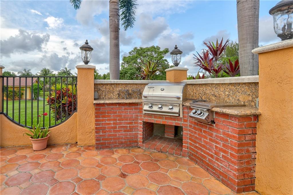 Fantastic 5 bedroom 4 bathroom home located on a deep 1 Acre lot in desirable Central Plantation Acres! Impact glass windows! Roof replaced in 2010. Spanish-style home with triple split floor plan & wood burning fireplace. Marble & wood flooring. Kitchen features wood cabinetry, granite counter tops, stainless steel appliances, 5-burner gas stove & double oven. 3 impact rated garage doors with new LiftMaster openers. Two large terraces off the master bedroom. Two walk in closets. Patio area features pool/spa, wet bar & built in BBQ. Functional bedroom layout, providing privacy for large families, guests or in-laws. Plantation window shutters on interior. Home is a must see! Ho HOA!