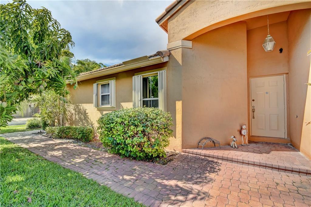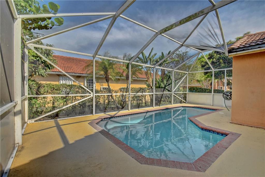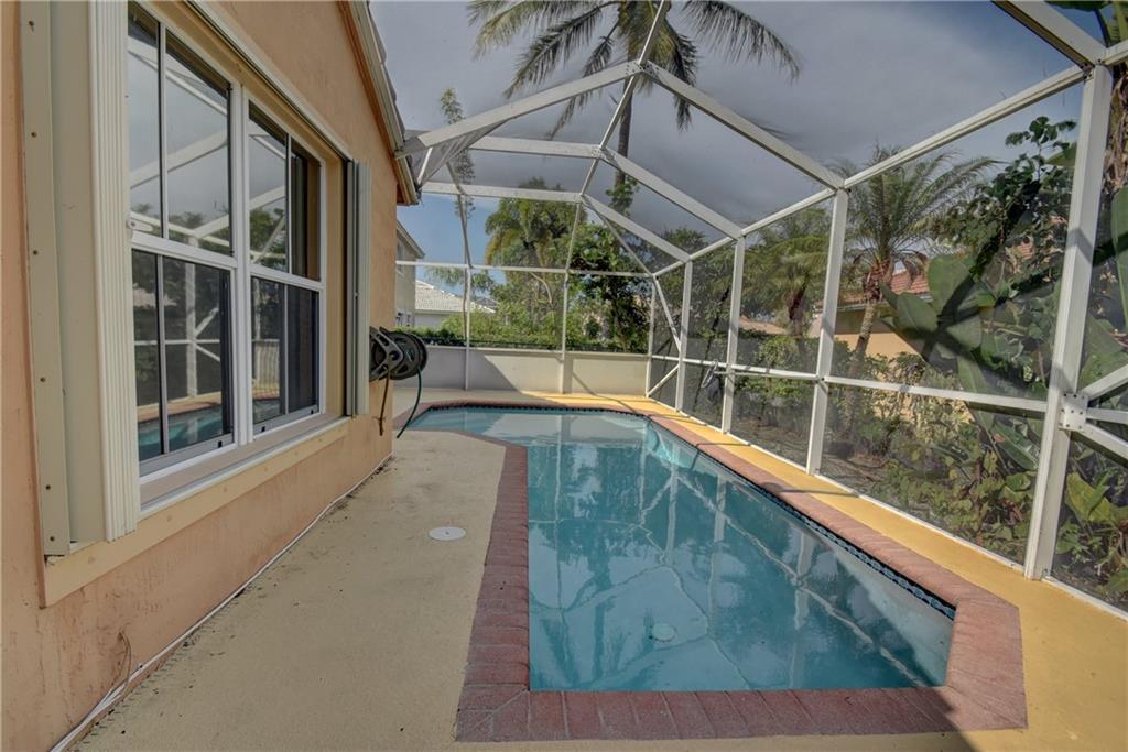 REDUCED!! Located on a corner lot, this 4/2 pool home features: foyer entry, pantry, tile floors in living areas, laminate in master bedroom, vaulted ceilings, accordion hurricane shutters, fenced yard and screened-in pool/patio! 4th room is a den, can easily be converted to bedroom. Low HOA fee includes common area and gate. Close to top rated schools, shopping, dining and Sawgrass Expressway. Master bedroom light, dining room light and back bedroom light do not convey.
