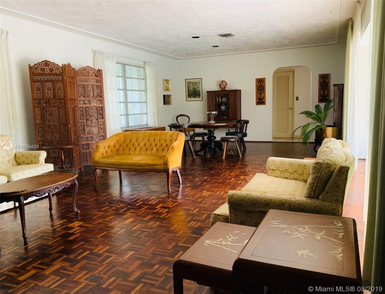 Spacious home in a rarely available oversized lot of 21,277 square feet with over 4,100 square feet of living space, in the Italian Village area of Coral Gables. A high value location with oversized lot and spacious yet warm and inviting living areas; an impeccably maintained home, ready to move in. The home features first and second floor dual master bedrooms, with two additional bedrooms in the first floor. The family/media room provides ample space for family activities. Large living and dining rooms face a screened pool area with additional entertainment outdoor space. A spacious eat–in-kitchen has a working fireplace. The one-car enclosed garage is attached to the house through a breezeway that accommodates two additional cars under roof.
