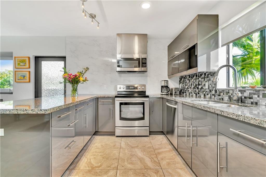 Contemporary Victoria Park Townhome (2016), 38' private lap pool, no HOA fees, downtown and beach skyline views!!! All for under $700k!! What are you waiting for? This home has many features for your enjoyment:contemporary design,large open spaces,lots of natural light,hurricane protection on all openings, Rooftop terraces include water and electric, perfect for adding a Rooftop Kitchen!.There are 3 levels looking over treetops of neighborhood,not to mention sunset views! Open concept kitchen with all amenities and granite countertops. Each level has an outdoor terrace bringing the outside in. Each bedroom en suite to bathroom, plus 1/2 bath for guests. Consistent large neutral tile throughout home. Oversized two car garage plus driveway for more parking,lots more! Call now.