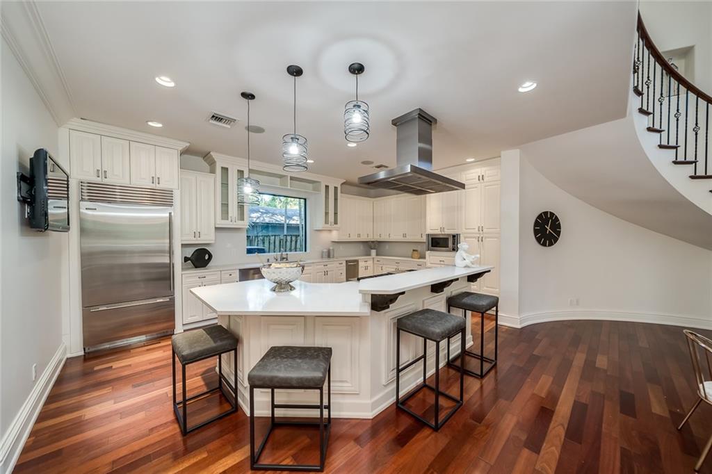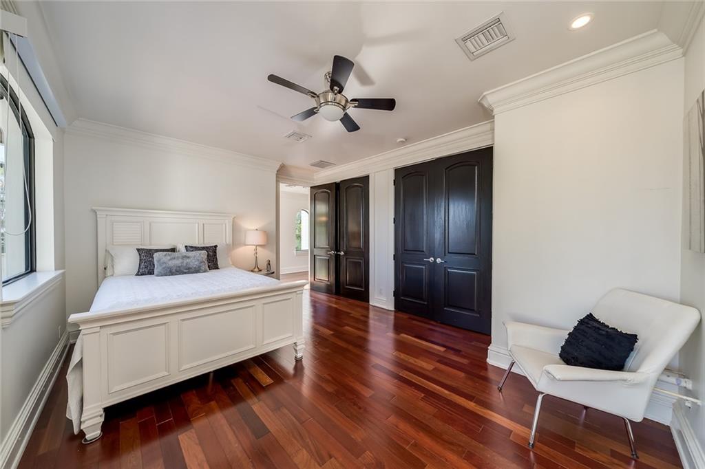 BAYVIEW school district & award winning developer's private residence! Gated & lush landscaping designed by George Keen offer ultimate security & privacy. This ideal floorplan features additional 1st floor office, 2nd floor bonus room, & even a master bedroom's private 3rd floor private cove. Modern & beautiful with new kitchen, the main living area is open & perfect for entertaining with separate club room area & bar - surround sound throughout. Enjoy expansive wide bay views in your salt water pool flowing from the fountain jacuzzi or the NEW extended 50' dock. Master & guest suite terraces seamlessly bridge the luxurious lifestyle from inside to out with views of the water & neighborhood. All 4 bedrooms are upstairs & have baths ensuite. Oversized 2 car garage offers plenty of storage.