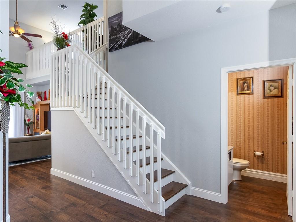 WATCH THE SLIDESHOW. Contemporary Model perfect waterfront home in a prestigious gated community. Spectacular water views, screened & tiled patio, fenced yard, upgraded landscaping and accordion shutters. Big open floorplan, gorgeous wood flooring on the entire 1st floor, vaulted ceilings, great room, designer kitchen w/snack bar, breakfast area, custom cabinetry, granite, LED lighting, SS appliances include a double convection range. 1st floor master suite w/sitting area, his & her walk-in’s, all bathrooms remodeled. Master bath features floor to ceiling frameless glass shower enclosure w/rain head, body jets & hand sprayer. 4th bedrm currently a large loft, but can easily be converted back if buyer so desires. The 5 TON 16 SEER AC replaced in 13, garage door opener new, the list goes on.
