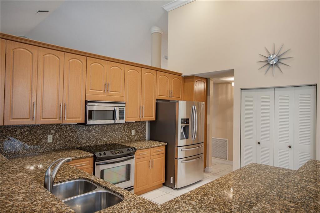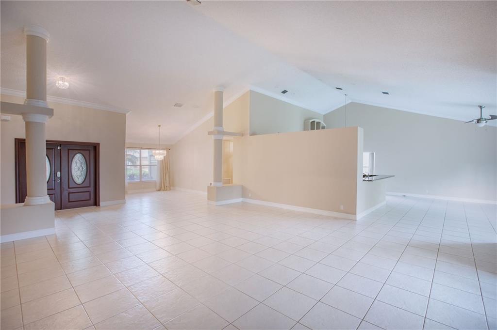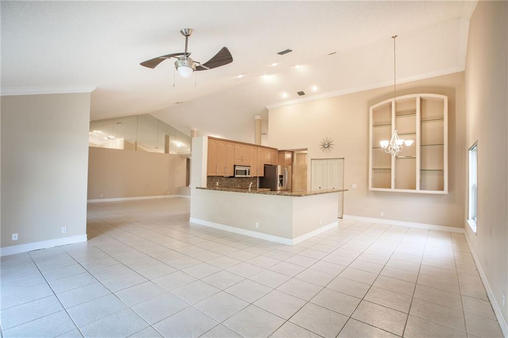 Brand new complete re-roof and gutters installed in 2018 with transferable warranty! This home shows pride of ownership. Everything has been done for you. Just bring your toothbrush and welcome home. Large clean open concept with high vaulted ceilings throughout main living area. Four bedrooms with new flooring. Both bathrooms have also been completely remodeled. Retreat to your personal private spa in the luxurious master suite. AC and water heater replaced in 2015. Accordion shutters cover all openings. Corner lot with long lake view.