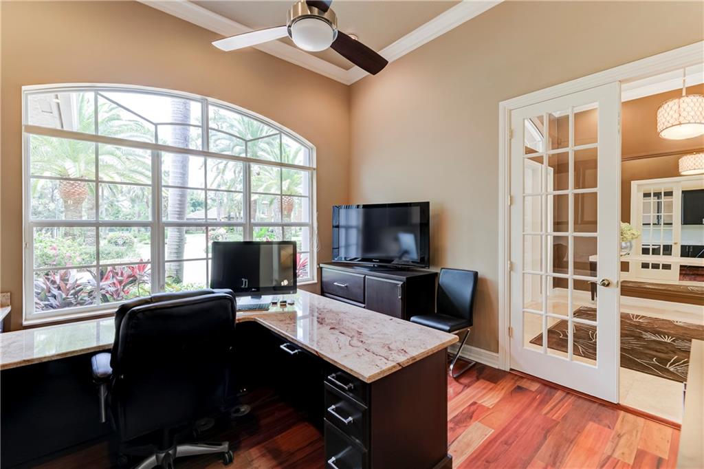 Stunning Custom Built Estate Home In The Prestigious Guard Gated Community of Tall Pines w/Over $113,000 In Upgrades! Tri-Split 4 Beds + Office, 5 Baths Pool Home On Over 1 Acre Corner Lot. Travertine Floors Throughout, Mostly Impact Windows, Wood Floors In Beds & Office, All Beds Have Own Bath Suites. Large Living Room w/Built-In Wet Bar, Huge Kitchen w/Granite Counters, Stainless Steel Appliances, Stove on Center Cooking Island, Double Ovens. Private Master Bedroom w/Sitting Area, Built-In Closets, Large Master Bath. Custom Outdoor Kitchen w/Built-In Grill & 2 Refrigerators Perfect For Entertaining! Home Exterior Just Painted, Lush Landscaping w/Many Palm Trees, Custom Built-In Office, Extra Storage Unit On Side Of Home, A-Rated Schools, Close To Major Highways, Restaurants, & Shopping.