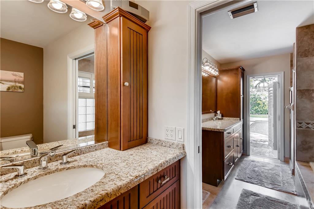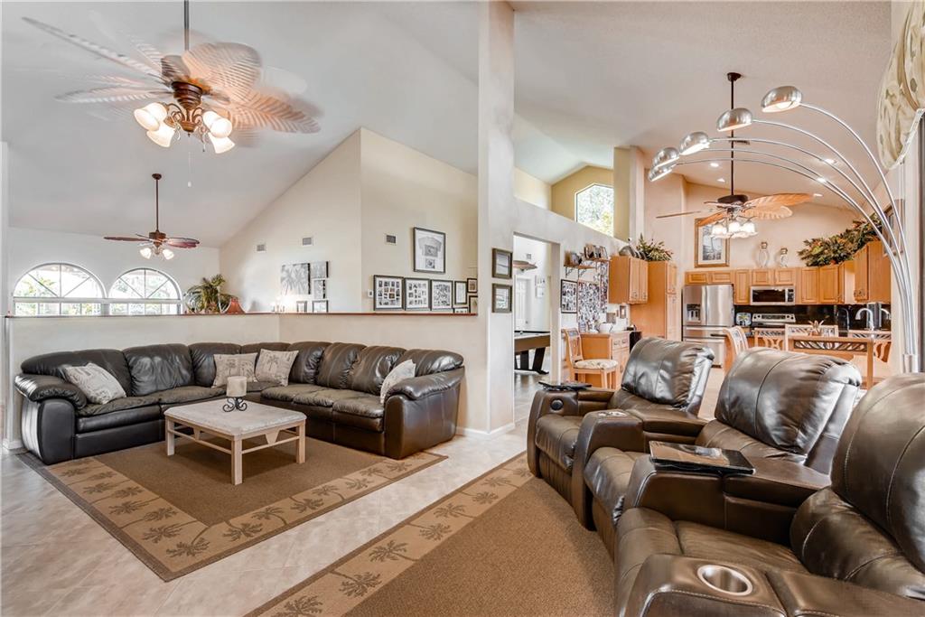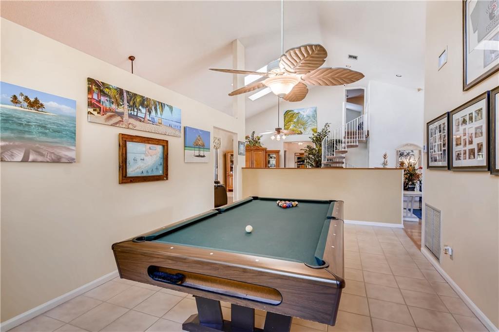 Exclusive Jacaranda Cay Community. Waterfront with concrete capped seawall. two small ponds on property, backyard has aluminum fence enclosed. Spacious home with great room effect and vaulted ceilings, hurricane impact windows on front, accordion shutters in back, large bedroom or office upstairs, 4 bedrooms down stairs, spacious master with large master bath, bedroom off master has two doors with access from Master Bedroom, great for a nursery of office. Laundry room. Pool recently redone with travertine tile on deck. This house is in amazing condition and is great for large families and entertaining. Priced reduced to sell quickly do not delay call owner/broker today to show! Easy to show on lockbox.