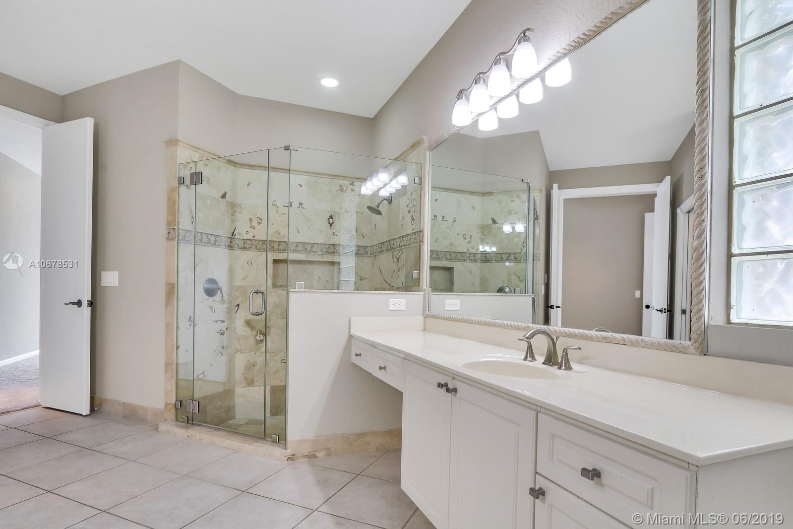 Check out this home in the gated community The Shores at Boca Raton. 3 bed 3.5 bath home with beautiful lake view. Den/office has full bath. Brand new AC units. Pool resurfaced with new equipment. New stainless oven, cook top, microwave and dishwasher. Fresh interior paint and new carpet in the bedrooms. Don't miss out on this one. To help visualize this home’s floorplan and to highlight its potential, virtual furnishings may have been added to photos found in this listing