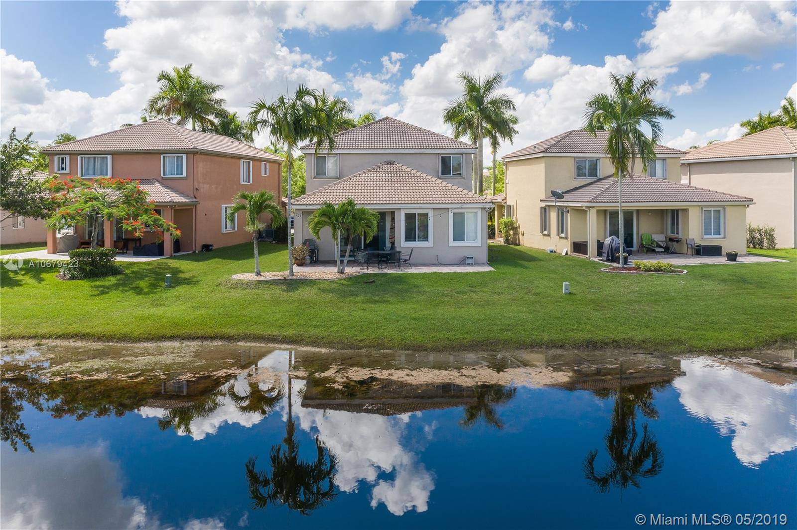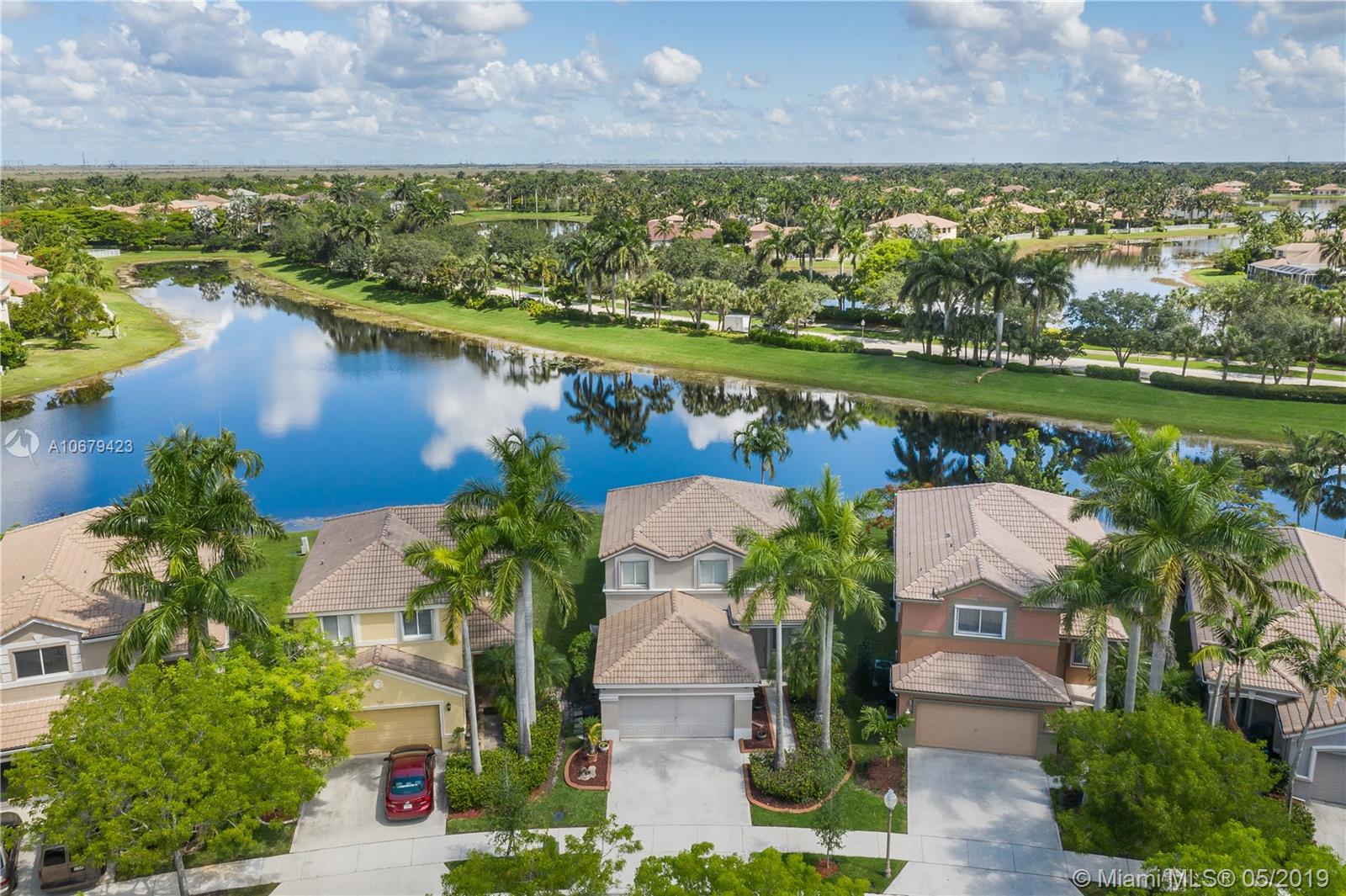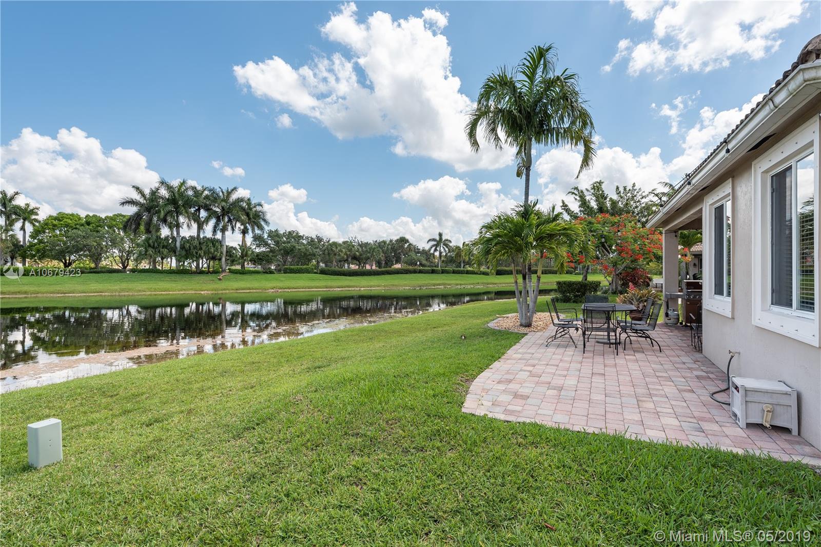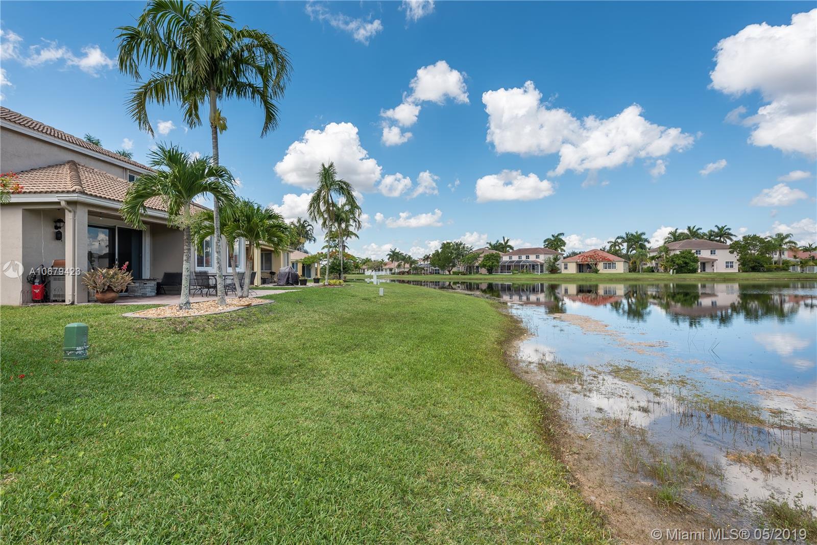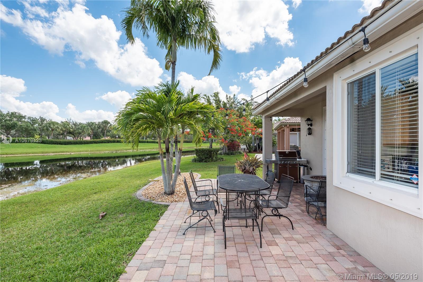 Beautiful home! 4 bedrooms, 2.5 bathrooms with the master bedroom located on the first floor with living room, dining room and family room. Room for a pool. Spectacular lake view for you to enjoy amazing sunrises and sunsets. 2 car garage and yes also 2008 roof, A/C unit 3 years old, accordion shutters second floor. The kitchen has all stainless steel appliances, gated community "Savanna" with resort-style amenities, heated Olympic lap pool, family and kids pools and water slide, BBQ area, mini golf, playground and more. Low maintenance fee $128 monthly. Nearby Weston Regional Park, Publix, restaurants, stores...Excellent schools Manatee Elementary, Falcon Cove Middle and Cypress Bay High School.