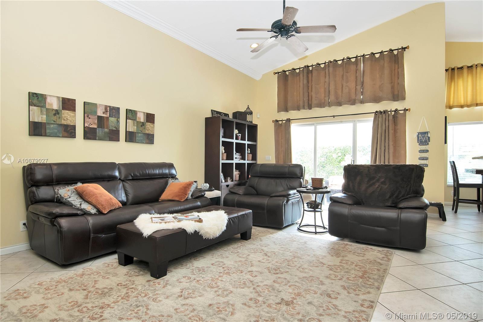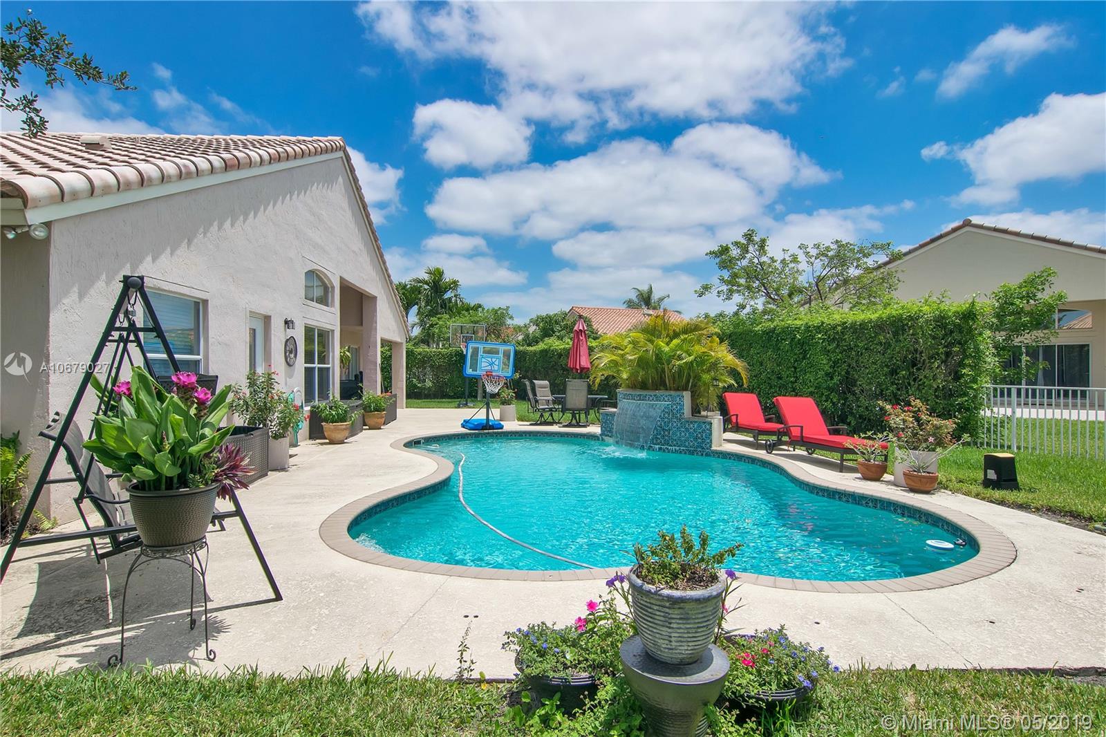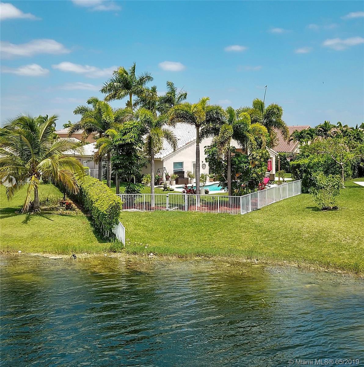 Superb tropical paradise. 5 BR, 3 bath, waterfront pool home. Spacious Embassy model on oversized, fenced, private, pie-shaped lot. Resort-level, manned gated Encantada community with two of the top schools in the state (City of Pembroke Pines West Elementary and Middle Schools) right outside the gate. Other top schools, parks, hospital, shopping and dining nearby. Upgraded kitchen w/ granite counters and breakfast bar, pantry. Double set of sliding glass doors open to covered patio, pool, gorgeous fenced, hedged yard on lake with no neighbors on other side. 2012 A/C. Community amenities incl big pool, clubhouse, tennis, tot lot, more. 5th Bedroom currently configured as huge den/office with french doors. Diagonal tile and wood laminate flooring, no carpeting.