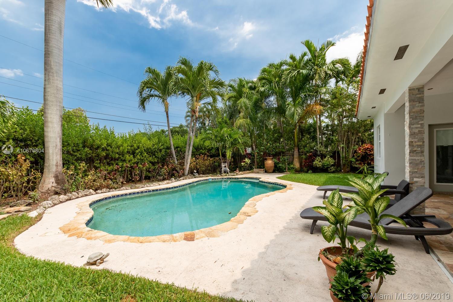 This pool home has it all! Large addition provides large living spaces of 2423 sq.ft. (approx based on Miami Dade public records building sketch) overlooking a beautiful pool area with covered patio for outdoor dining and great for entertaining! Landscaped for privacy. Cabana room also makes a great home office or Nanny's room! Oversized new updated kitchen with bar! Porcelain tile floors add a casual and elegant touch. Both bathrooms are updated too!Roof is new since 2012!