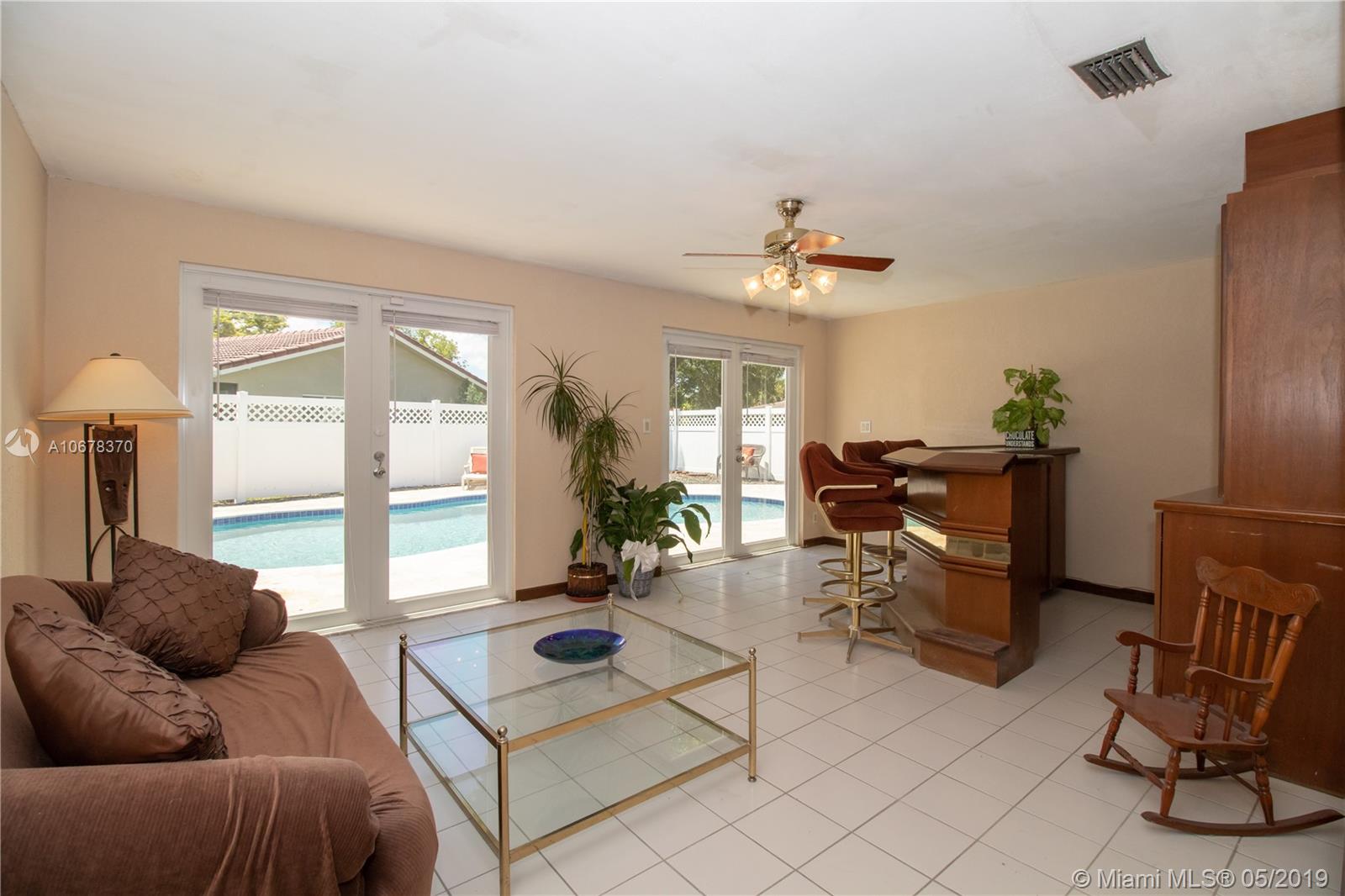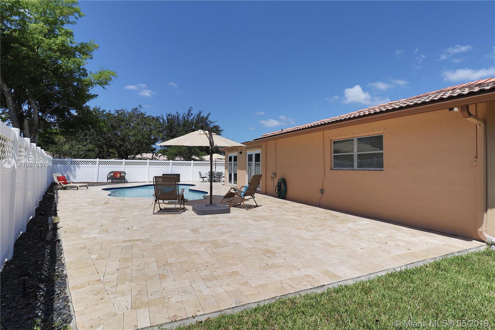 Located in the heart of Coral Springs. 4 bedroom / 2 bath with a corner lot of over 12,000 sq ft. Eat in kitchen area. Spacious bedrooms. Remodeled master bathroom. Tons of storage. Neutral tile throughout. NO POPCORN on ceilings. Water heater 5 years old. Air conditioner approx 7 years old. Home has gutters. Florida room has 2 sets of hurricane impact doors. This home is walking distance to shopping, recreation, and more! Excellent schools. Walking distance from elementary school. A backyard that is simply amazing and is entirely beautifully fenced. No HOA. Easy access to pool area from kitchen and Florida/family room. Home is well maintained with a great layout. Call today for more details. SELLER MOTIVATED! QUICK CLOSE!