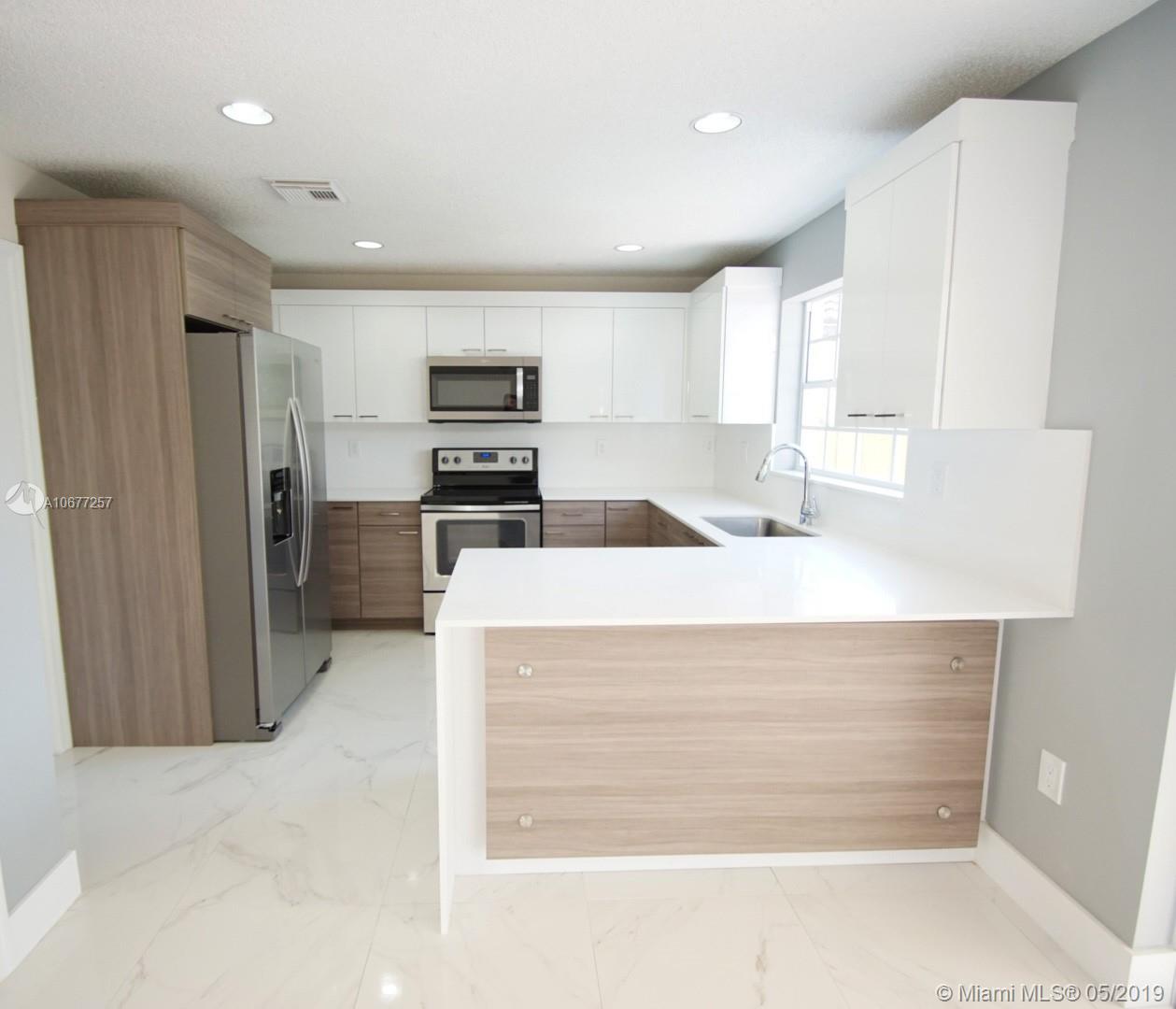 This home features 4 Bedrooms 2 1/2 Baths One of a kind fully renovated home with a 1 car garage. Professionally decorated w/ Tiles & Laminate Floors. Modern kitchen w/ Quartz counter tops and NEW stainless steel appliances. All bedrooms upstairs, NEW fresh Interior/Exterior Paint, terrace. Low HOA maint. fee covers 24/7 security, gated, basic cable and all common areas TURN KEY Ready.