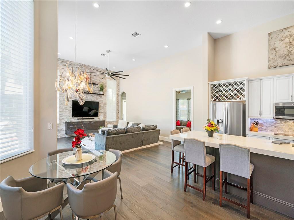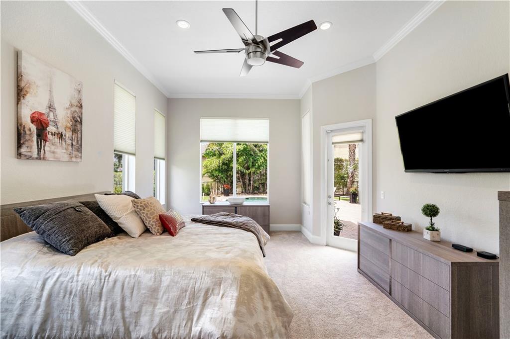 Stunning! Move in Ready. Beautiful Modern pool/lake home on Oversized corner lot with large yard. Spacious 5 Bedroom 3 Bath, 3 Car garage with open concept. Waterfront lot with pool & screened in lanai. Gourmet kitchen, 42" high white cabinets, Quartz counter tops, expanded island, New SS appliances with double oven. Family room with Modern Stone feature wall & High ceilings throughout. Smart technology, new lighting fixtures, Crown molding, coffered ceiling and new wood flooring. New Interior and exterior paint. Master bedroom with high ceilings, his and her walk in closets. Master Bath remodeled with soaker tub & large shower. A Rated schools! Enjoy tennis, fishing, 2 community clubhouse pools & fitness centers along with many other amenities in desirable Heron Bay community.