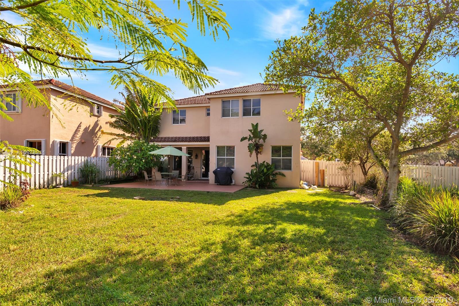 Rare Dartmouth model in The Falls. This 2-story 3/2.5 home sits on an amazing fenced corner lot over 10,000 sq.ft. with tons of room for a pool if so desired. Community pool with basketball and volleyball courts. All bedrooms upstairs with beautiful flowing downstairs living area. Great schools and quiet neighborhood. Stainless appliances. Priced to sell! Property comes with 1 year home warranty to Buyer.