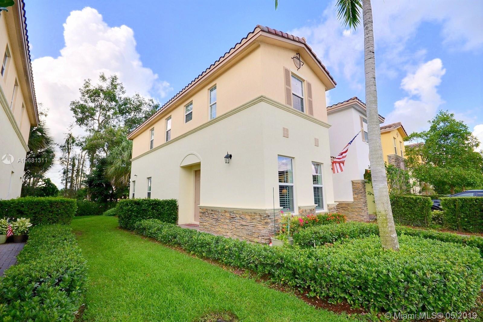 GORGEOUS 4 BED 3 FULL BATH CORNER LOT TOWNHOME IN BELLE TARA BUILT IN 2015 OFFERS A BEAUTIFUL UPDATED KITCHEN WITH ISLAND, STAINLESS STEEL APPLIANCES, STONE BACKSPLASH, DINING NOOK OPEN TO LIVING ROOM. SPACIOUS BEDROOM ON 1ST FLOOR USED AS A DEN, RECESS LIGHTING, PLANTATION SHUTTERS. MASTER SUITE W LARGE WALK-IN CLOSET, SPA-LIKE BATH W DOUBLE VANITIES, SOAKER TUB & STAND ALONE SHOWER. HURRICANE IMPACT WINDOWS ON BOTH LEVELS, LAUNDRY CONVENIENTLY LOCATED ON 2ND FLOOR - LOTS OF CLOSET SPACE. 1 CAR GARAGE + GUEST PARKING NEARBY, DOG FRIENDLY COMMUNITY W POOL & EXERCISE ROOM. PRIME DAVIE LOCATION CLOSE TO SHOPPING, DINING AND W EASY ACCESS TO HIGHWAYS.