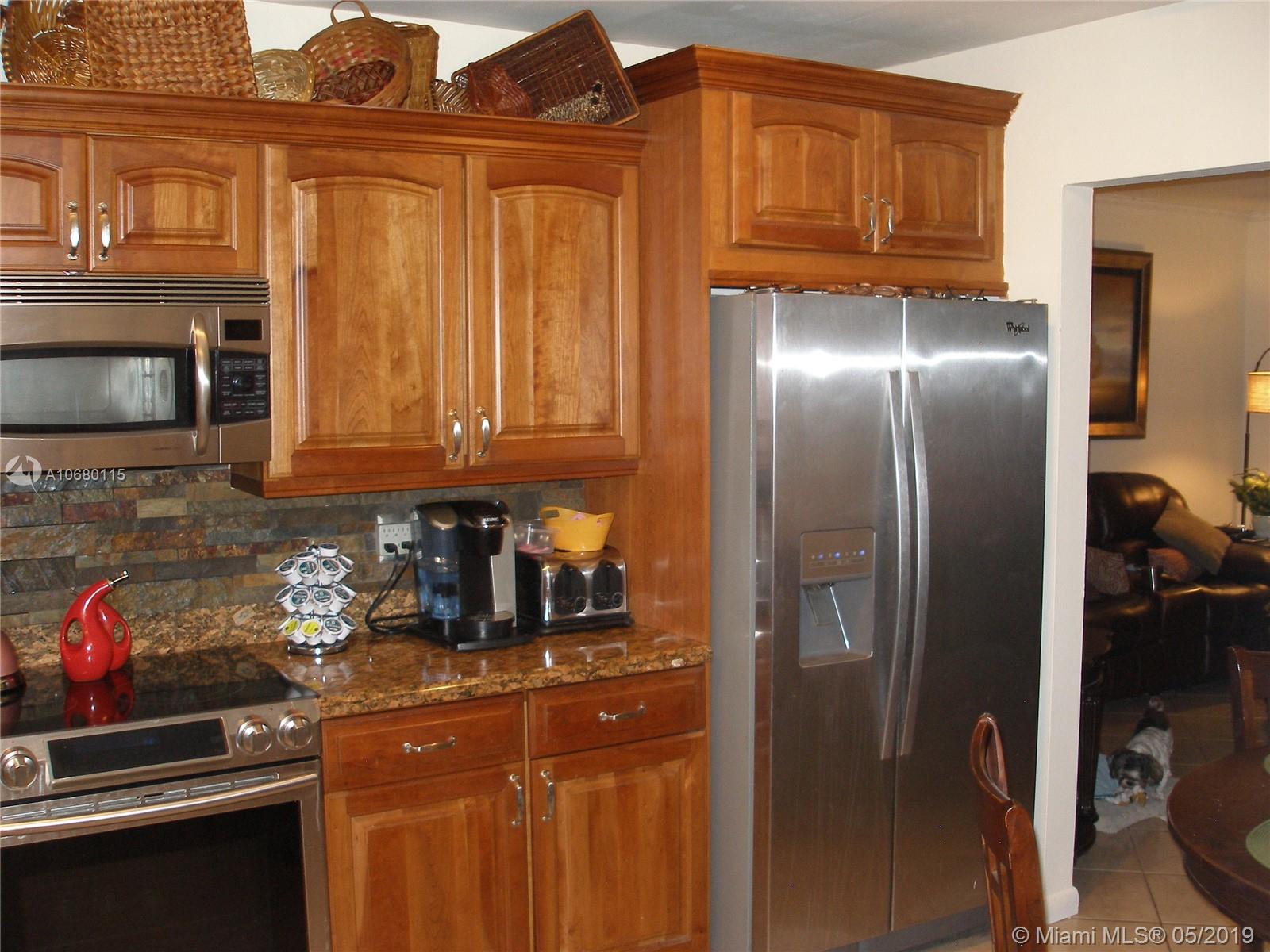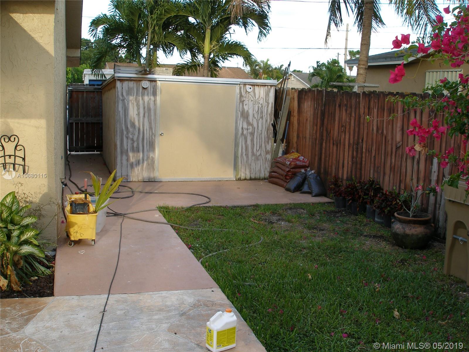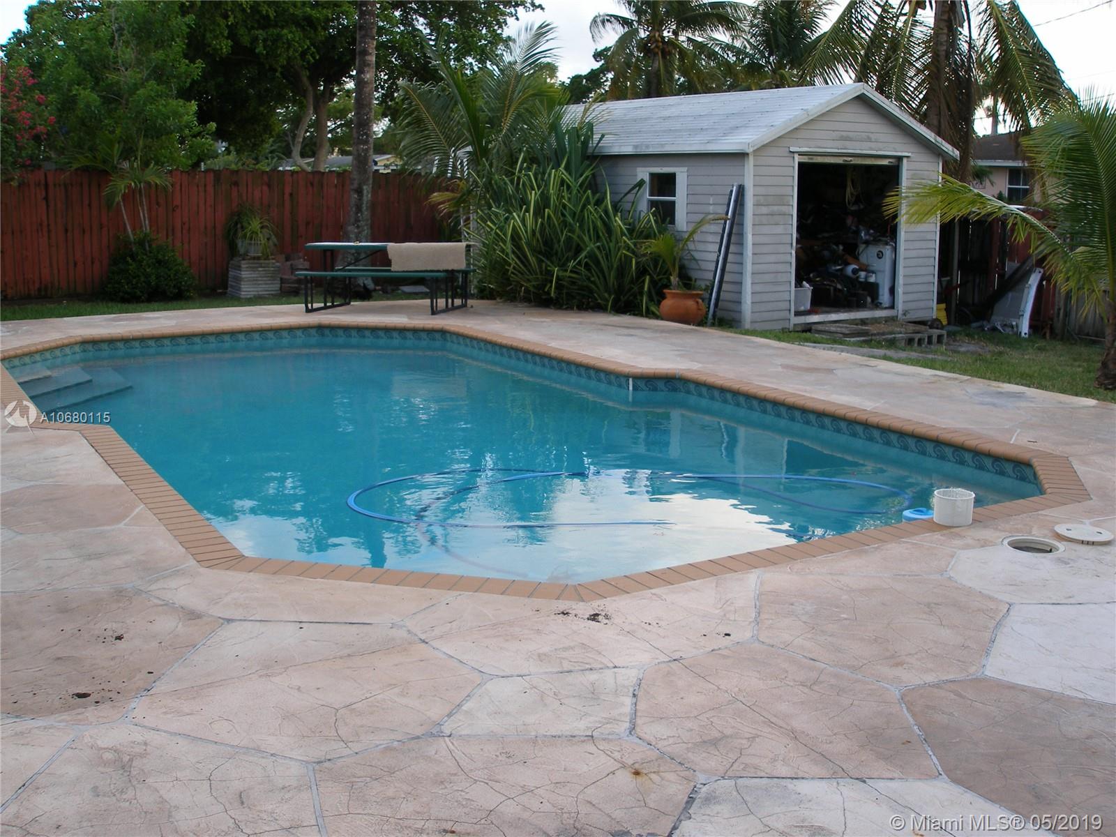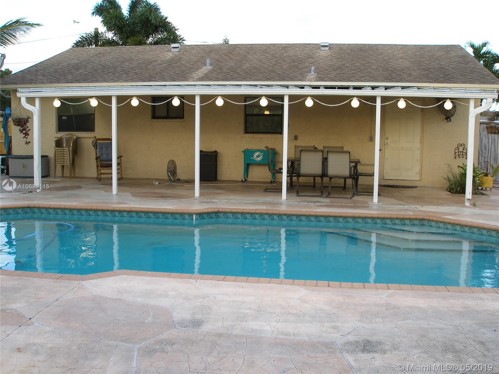 Pride of ownership. Very well maintained 3 bedrooms, 2 bath home. Featuring a large pool with an automatic pool cleaner, 2 very nice storage sheds for extra storage, beautifully updated kitchen with stainless steel appliances, wood cabinets, pantry with soft close pull-outs and microwave convection oven. Wood blinds throughout, tile in main living area, master bedroom has new carpet and 2nd & 3rd bedrooms have new wood laminate floors. Master Bath has new pedestal sink & second bathroom has new vanity w/granite counter top. The backyard is an oasis with covered patio and completely fenced in backyard. Double-wide driveway, nice landscaping, 3-ton A/C and newer roof. Dade County approved Hurricane shutters. Nova university is within a 5 min. drive from property. Move in ready today!