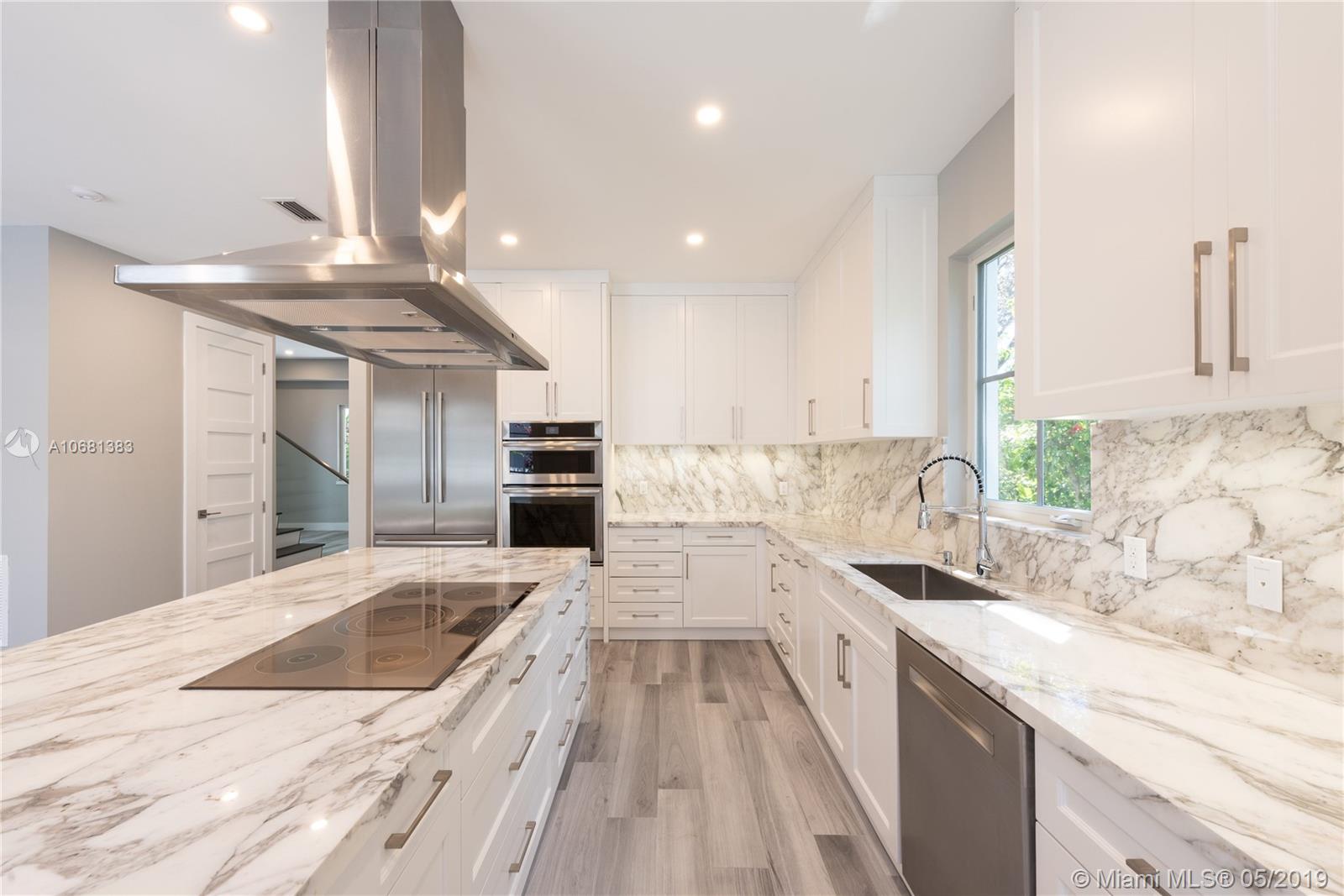 Beautiful new construction home on a corner lot nestled on a picturesque and quiet tree-lined street in Coral Gables. Home features spacious four bedrooms/three full baths, one bedroom and bath downstairs, three bedroom/two baths up. Second-floor laundry suite. Sustainable porcelain wood tile throughout. Stunning state of the art marble and stainless-steel kitchen that opens to a big dining room and family room space bound to be the center of living. Outdoor patio entertainment on both back and side of the home. Large detached garage. Impact windows and doors and plenty of storage within the house as well. Square footage as per the builder.