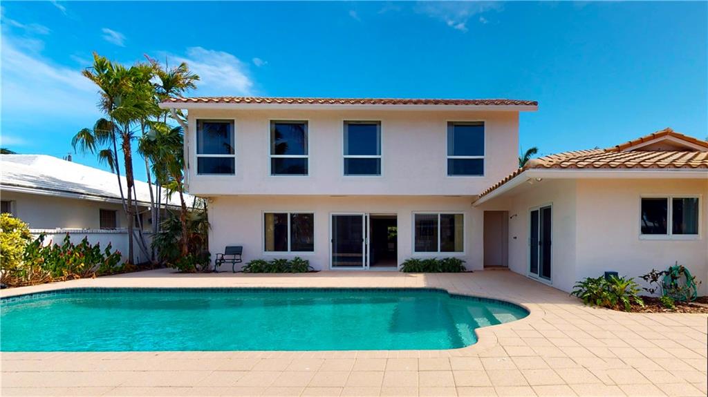 EXQUISITE 5 BEDROOM, 4 BATH WATERFRONT RESIDENCE PERFECT FOR A LARGE FAMILY, 3 HOMES FROM THE POINT. UPGRADES INCLUDE PORCELAIN FLOORING, UPDATED KITCHEN WITH STAINLESS STEEL APPLIANCES AND GRANITE COUNTER TOPS, UPDATED BATHS, IMPACT GLASS, NEW ELECTRIC AND CENTRAL VACUUM. UNIQUE FEATURES OF THIS HOME INCLUDE UPSTAIRS LOFT WITH TONGUE AND GROOVE CEILING AND ITS OWN PRIVATE BEDROOM AND BATH, SPACIOUS LAUNDRY ROOM, FIRST FLOOR MASTER SUITE WITH PRIVATE PATIO AND WALK IN CLOSETS, LARGE 2 CAR GARAGE AND CIRCULAR DRIVEWAY. 80 FEET OF WATERFRONT WITH A GORGEOUS SWIMMING POOL COMPLETE THIS STUNNING FAMILY RESIDENCE IN CORAL RIDGE COUNTRY CLUB. CLOSE TO FINE DINING AND SHOPS IN BEAUTIFUL FORT LAUDERDALE. DINING ROOM CHANDELIER DOES NOT CONVEY. SELLERS ARE WILLING TO MOVE OUT ON SHORT NOTICE.