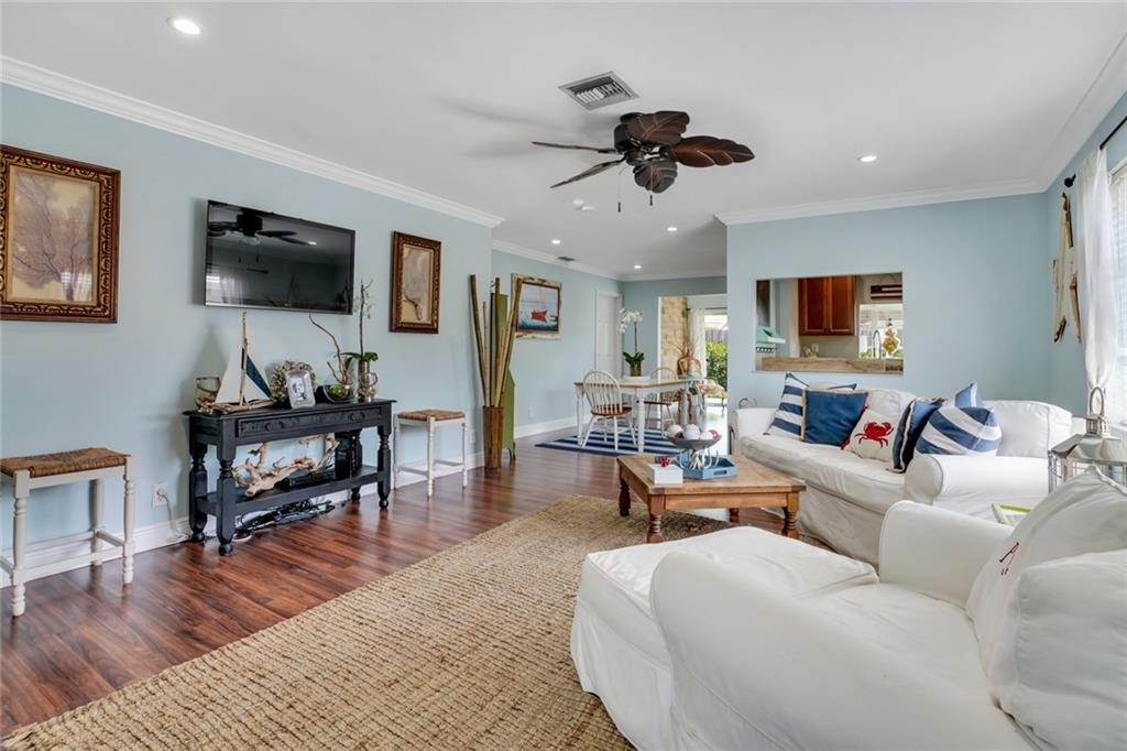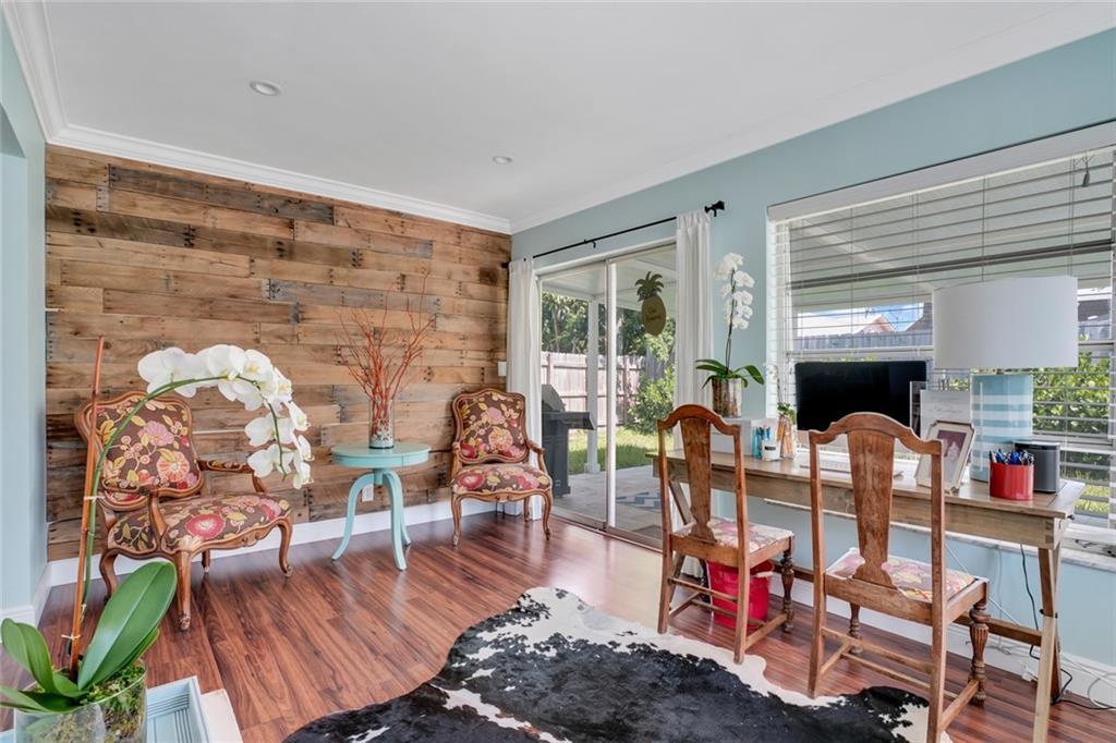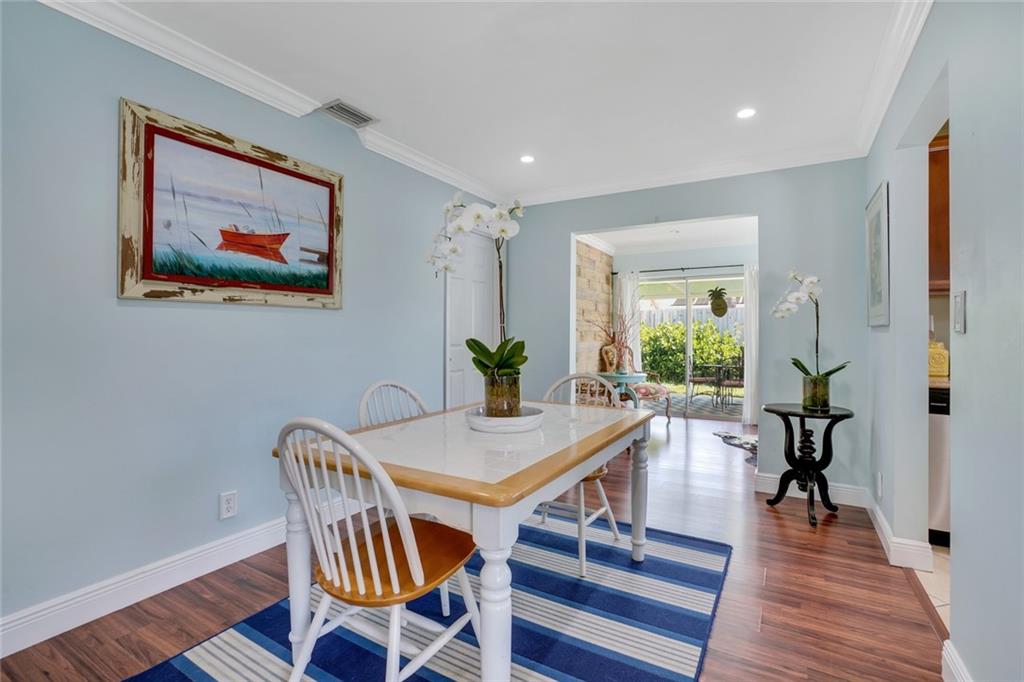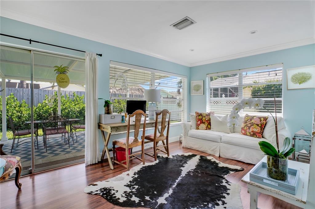 The cutest 2/2 home east of I-95 that is close to the beach, shopping, dining and entertainment! From the moment you enter, you are welcomed by tons of natural light and easy comfortable living. Open family/dining space leads you to a sunny Florida room featuring a shiplap accent wall and overlooks the patio and backyard. Master bedroom has an amazing walk in closet, and both bathrooms have been tastefully updated. Coat closet by the front door has been converted to the most clever use of space for a printer and work space! Kitchen has stainless steel appliances, A/C 2018, hot water heater 2012 and updated electrical panel, one car garage. A must see adorable space that you will definitely want to call home!