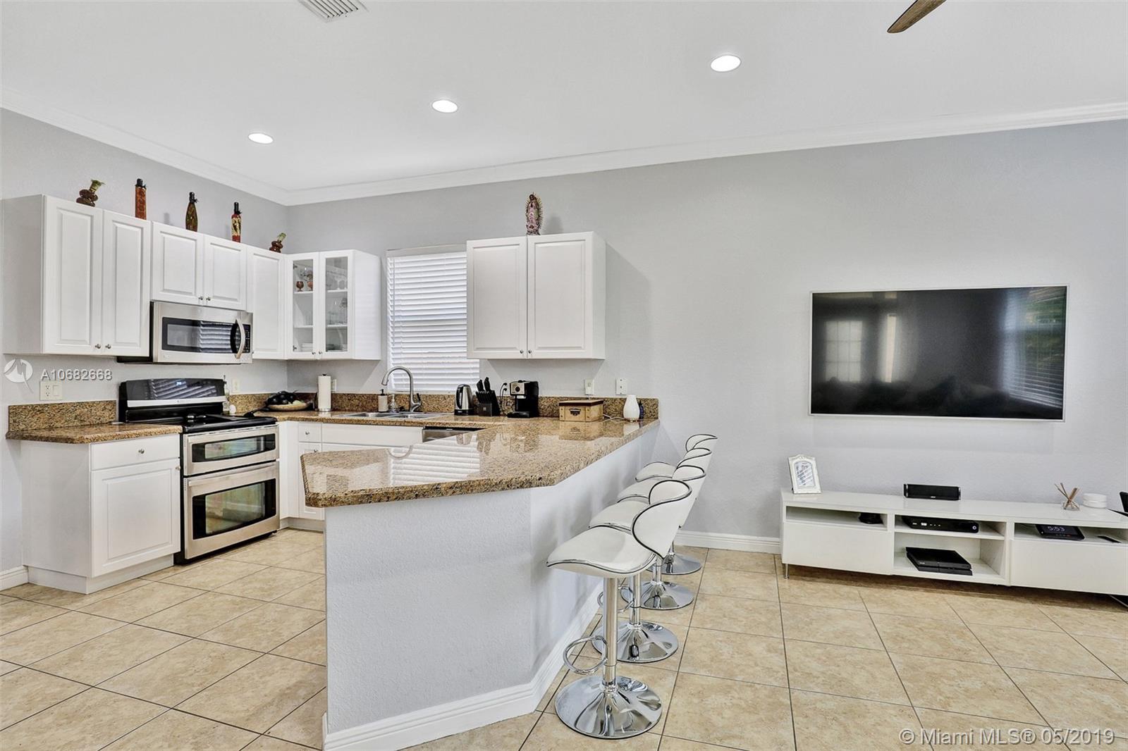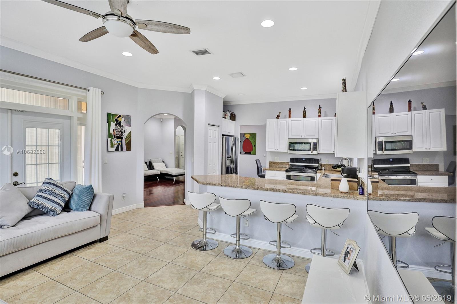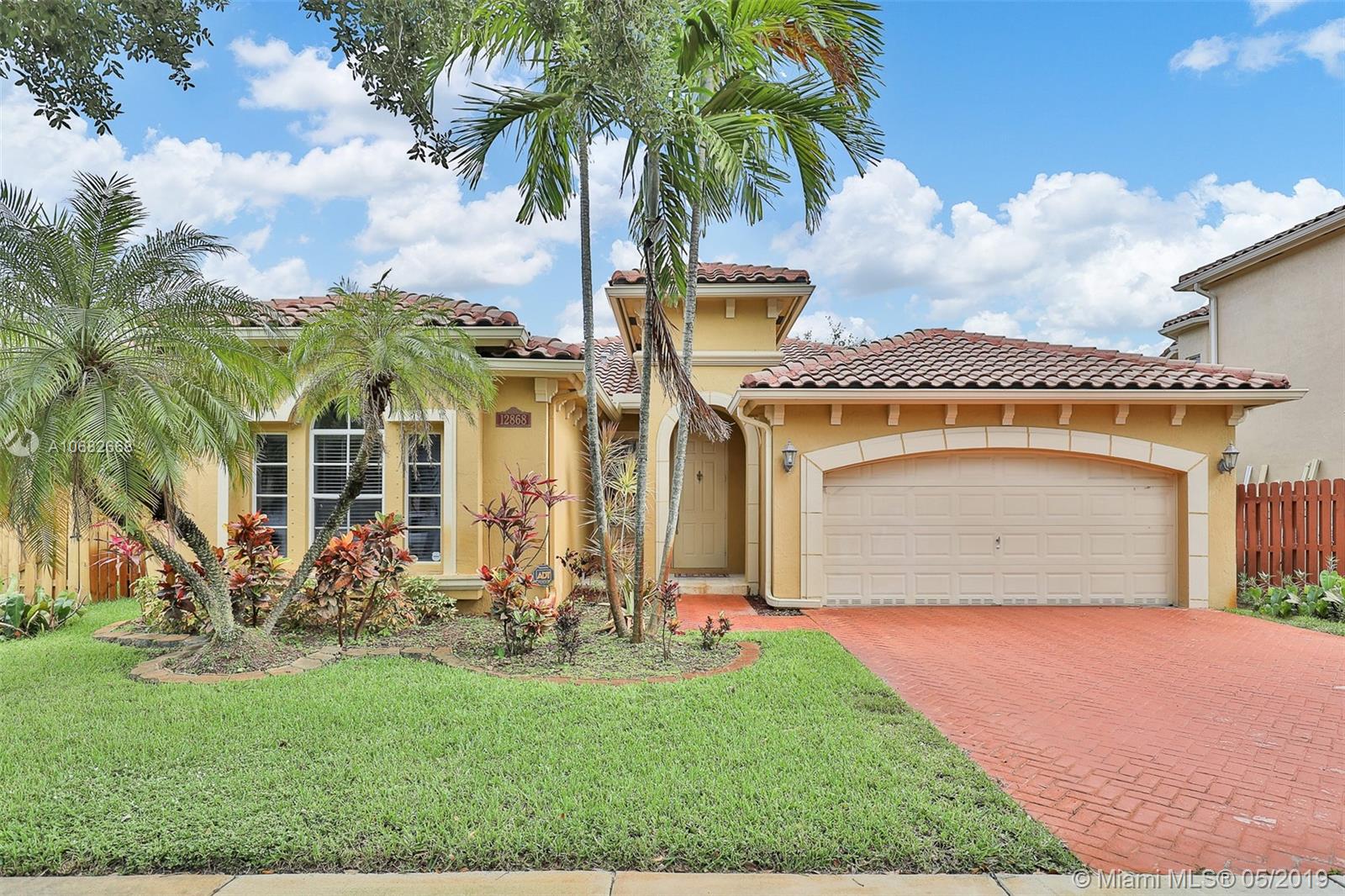 Shows like new! Beautiful one story home with 2 car garage spaces. Freshly painted, updated bathrooms with shower frameless glass doors and new wall tile. Updated kitchen with granite countertops, stainless steel applicances. Live in the most sought after gated community of Bellagio at Vizcaya with resort-style amenities in clubhouse and nearby highly rated Somerset Academy Elementary School. Very easy to show!